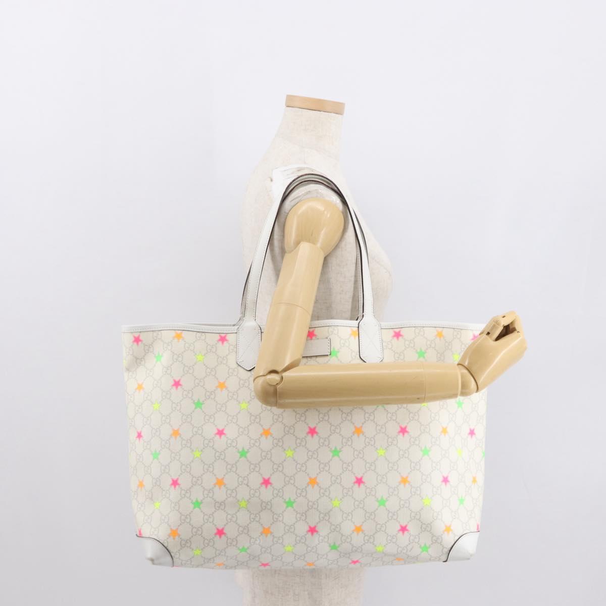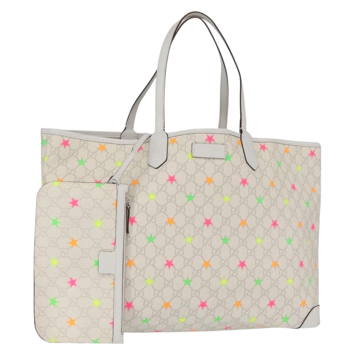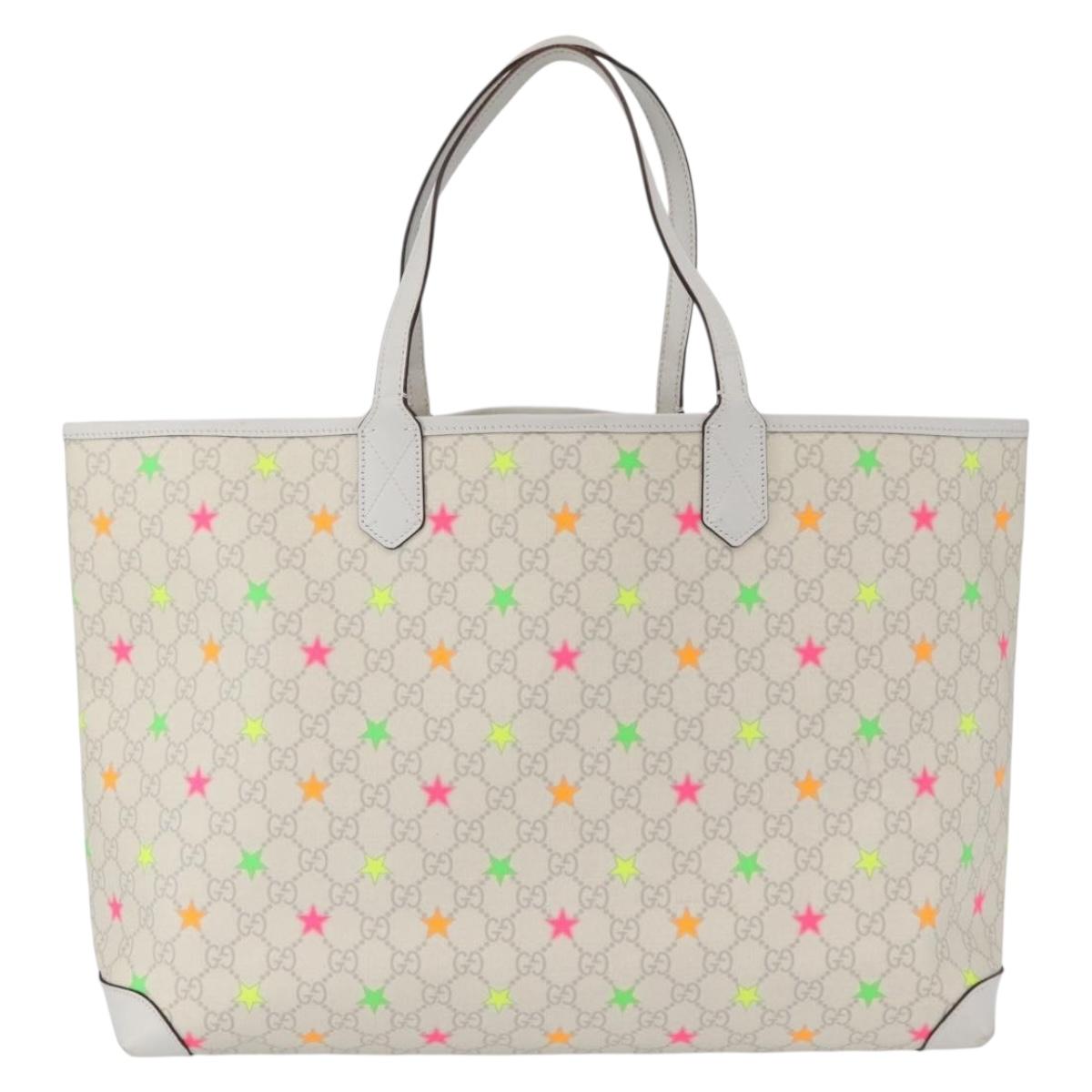 GUCCI GG Supreme Star Tote Bag PVC White 309497 Auth am10476