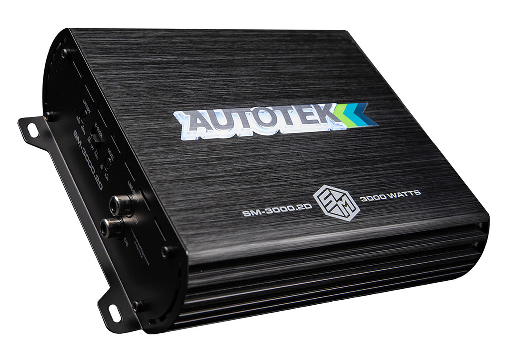 Autotek SM-3000.2D STREET MACHINE amplifier series with QTD Technology delivers 3000 watts to speakers and features built-in electronic crossovers.