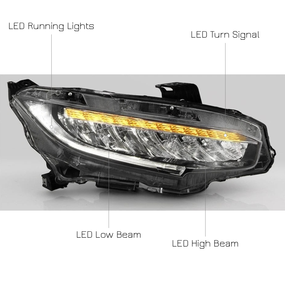 | Fitment | Compatible with 2016-2021 Honda Civic *Fit models with factory full LED headlights only **Do not fit models with factory halogen headlights |