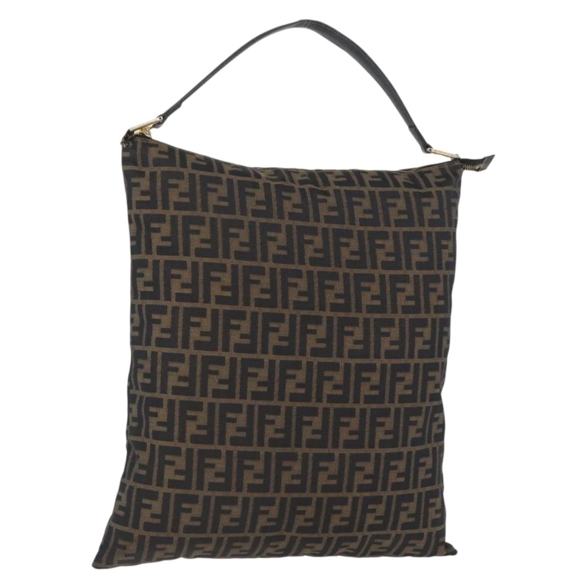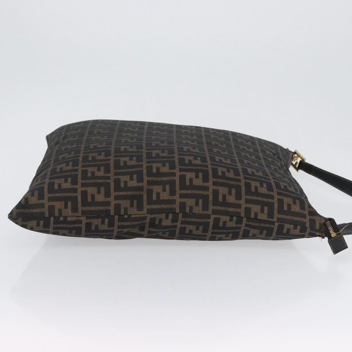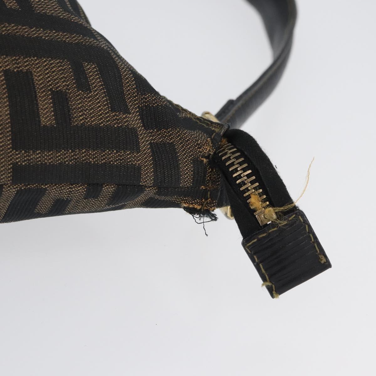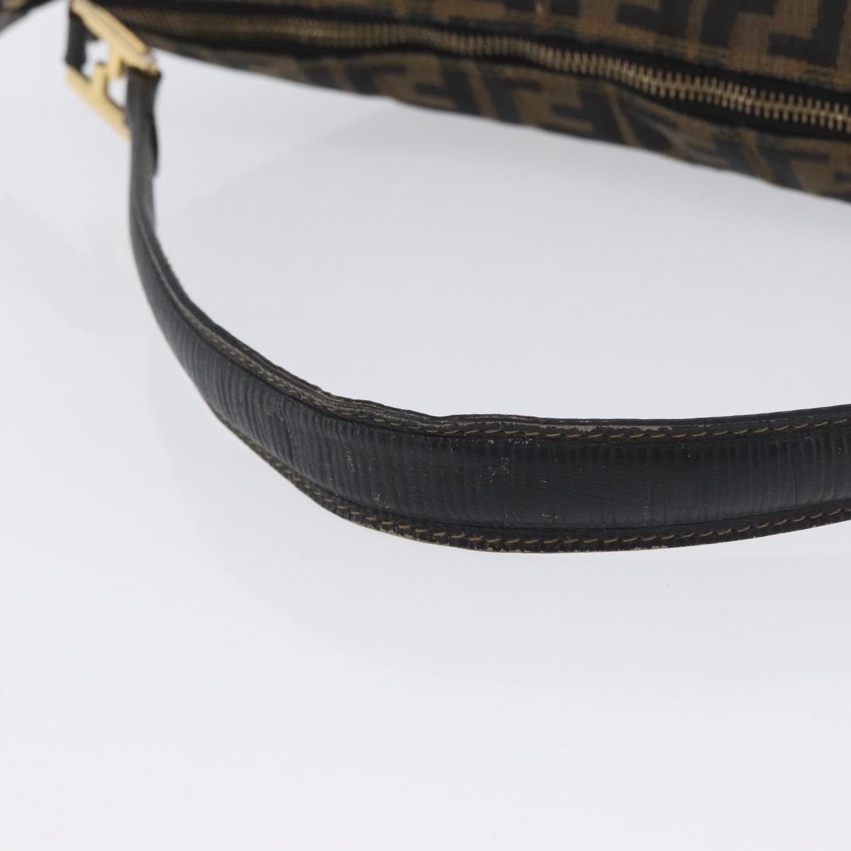 FENDI Zucca Canvas Shoulder Bag Black Brown Auth 169579