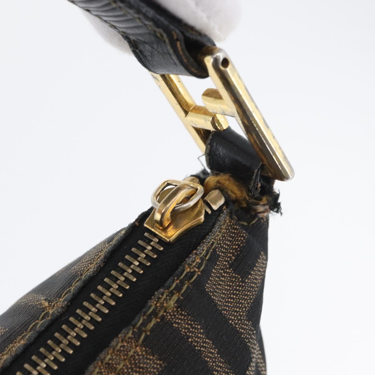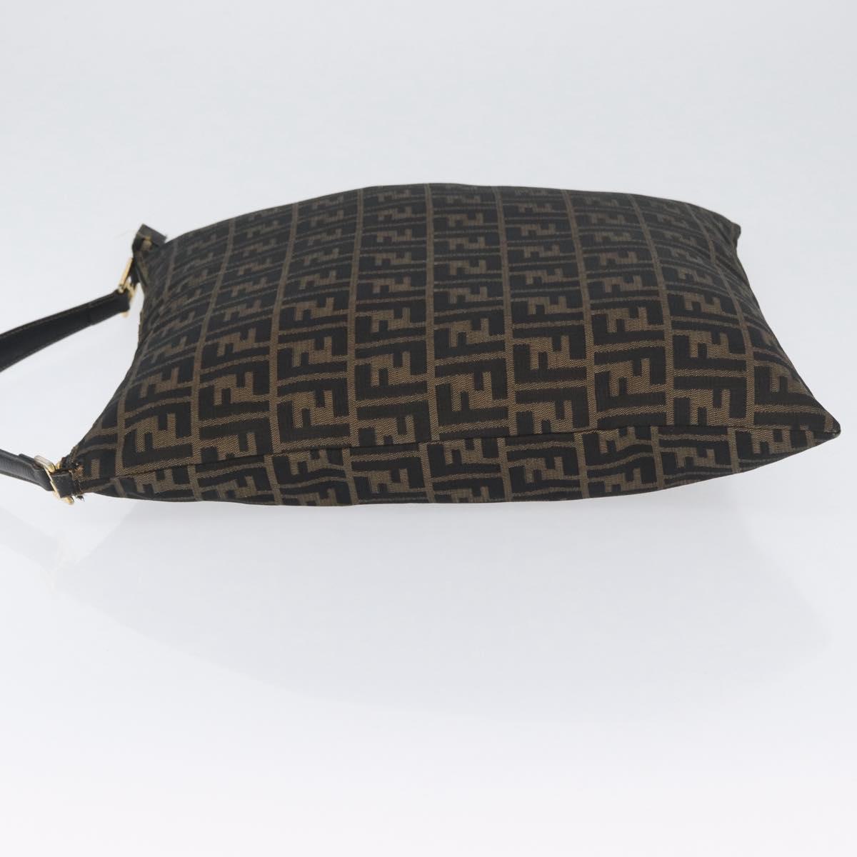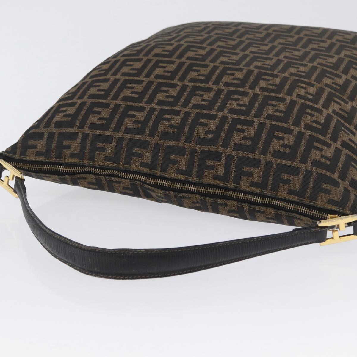 FENDI Zucca Canvas Shoulder Bag Black Brown Auth 169579