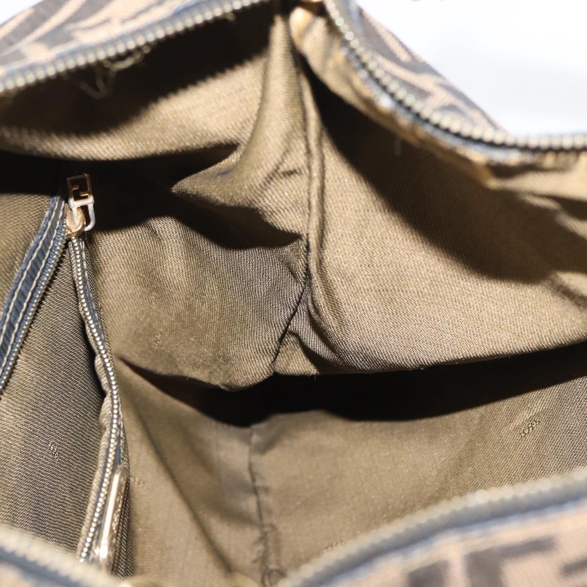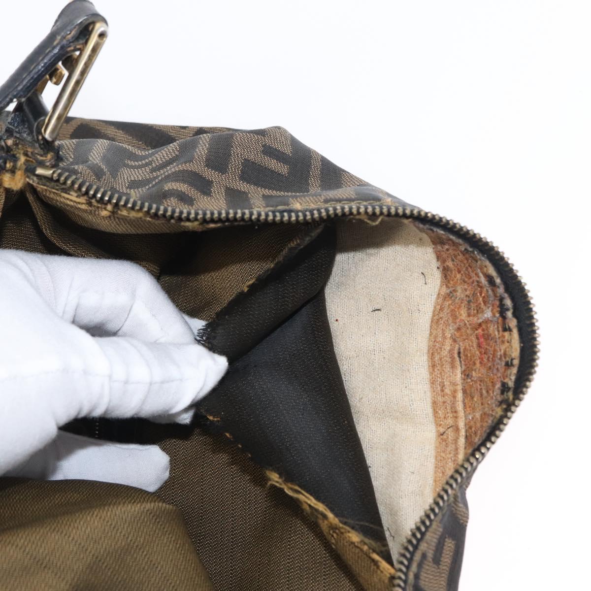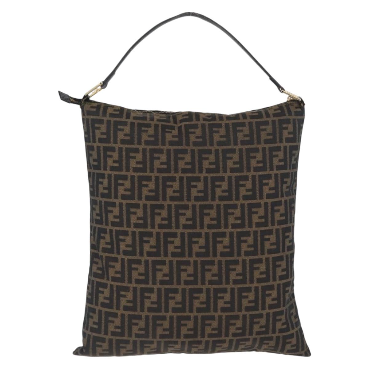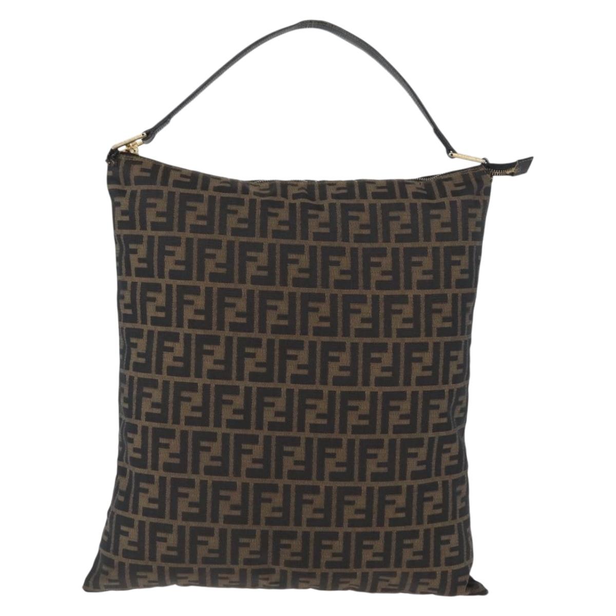 FENDI Zucca Canvas Shoulder Bag Black Brown Auth 169579