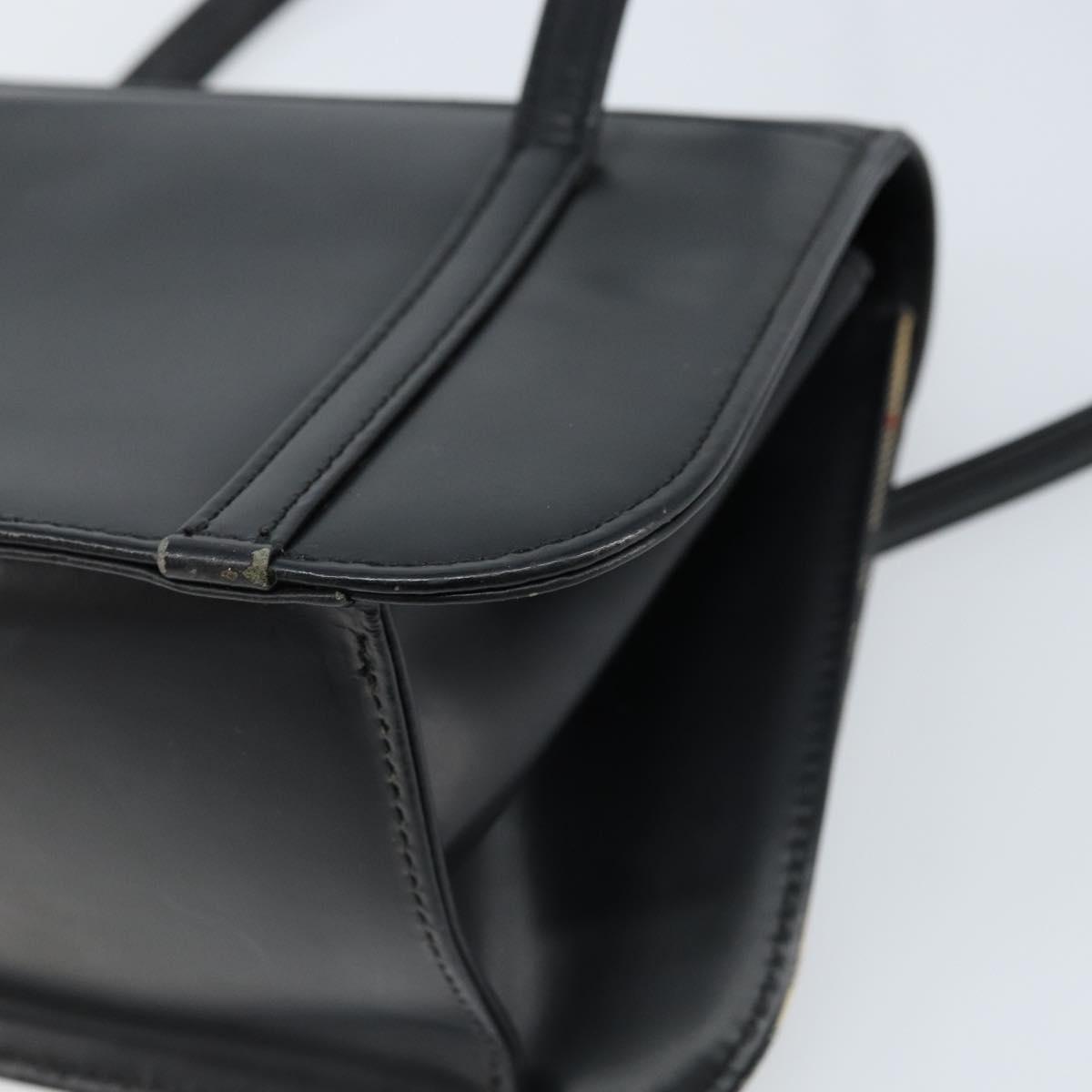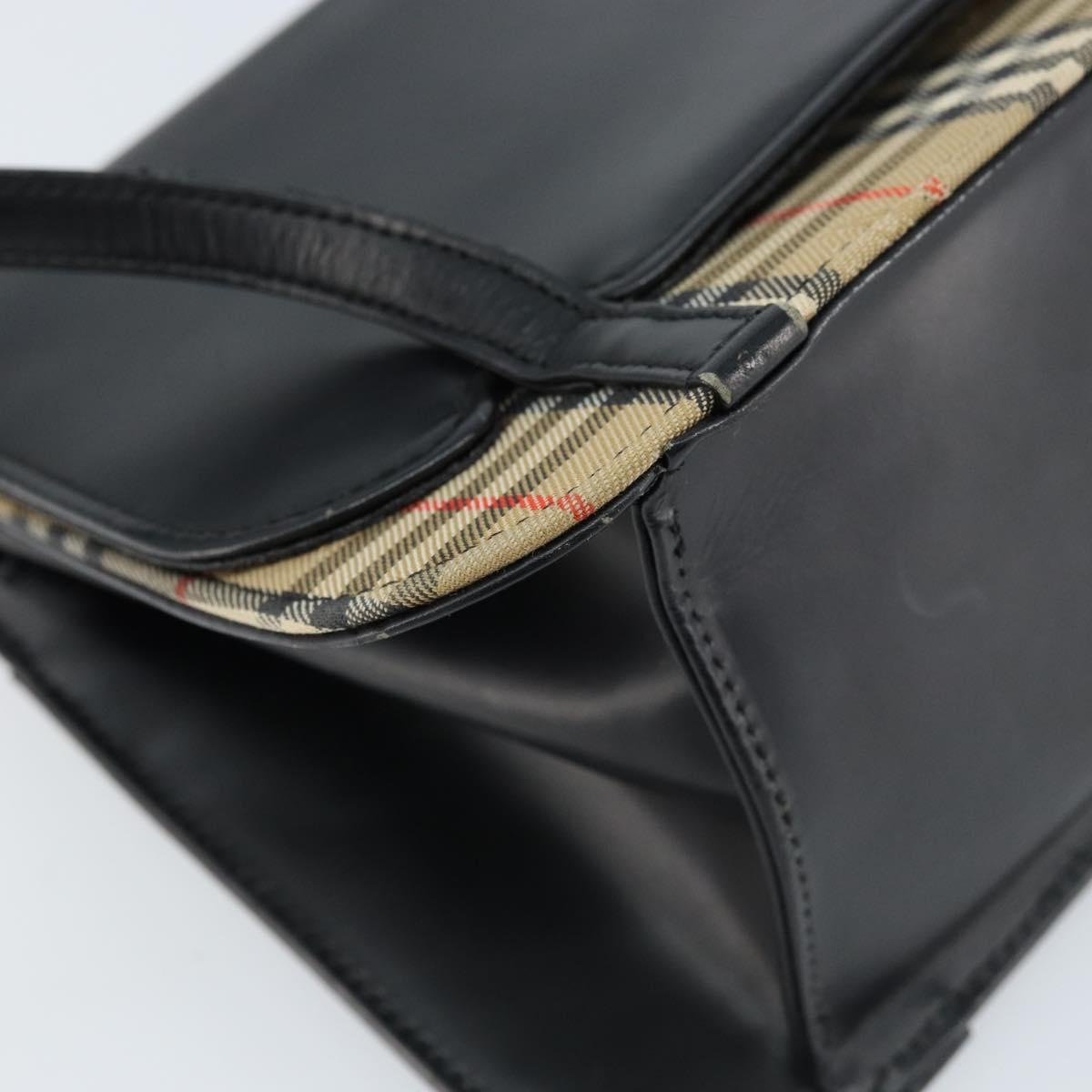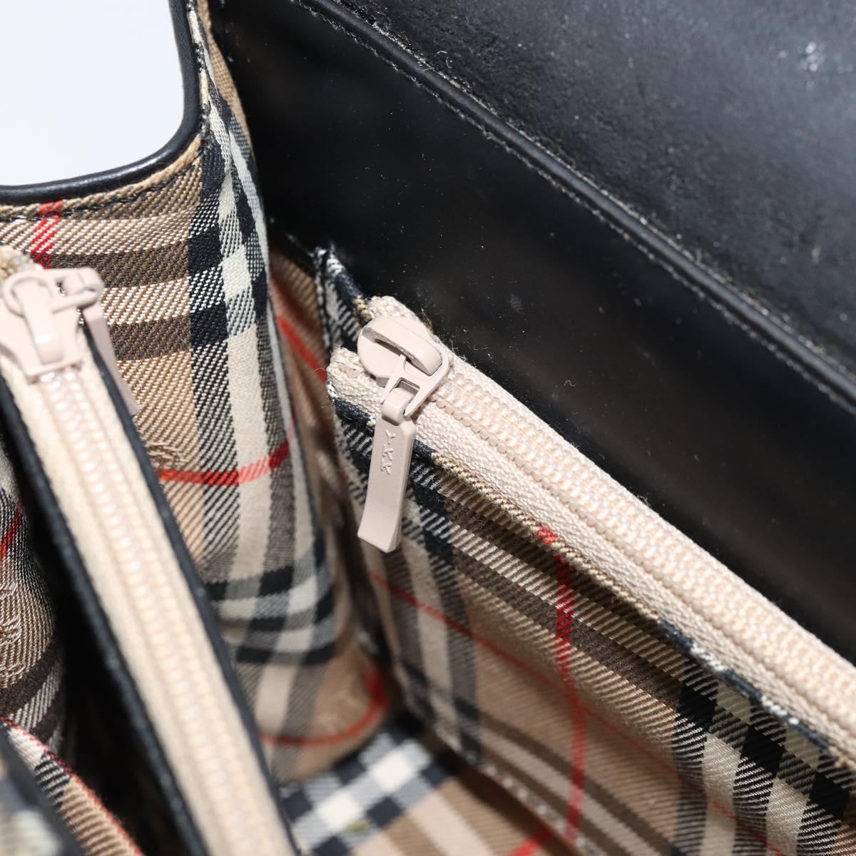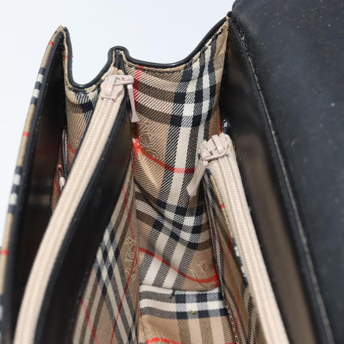 Burberrys Nova Check Hand Bag Leather Black Silver Auth ep13393