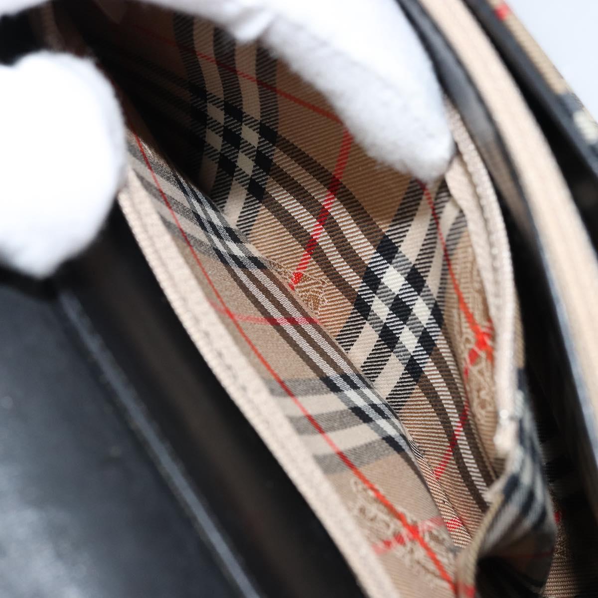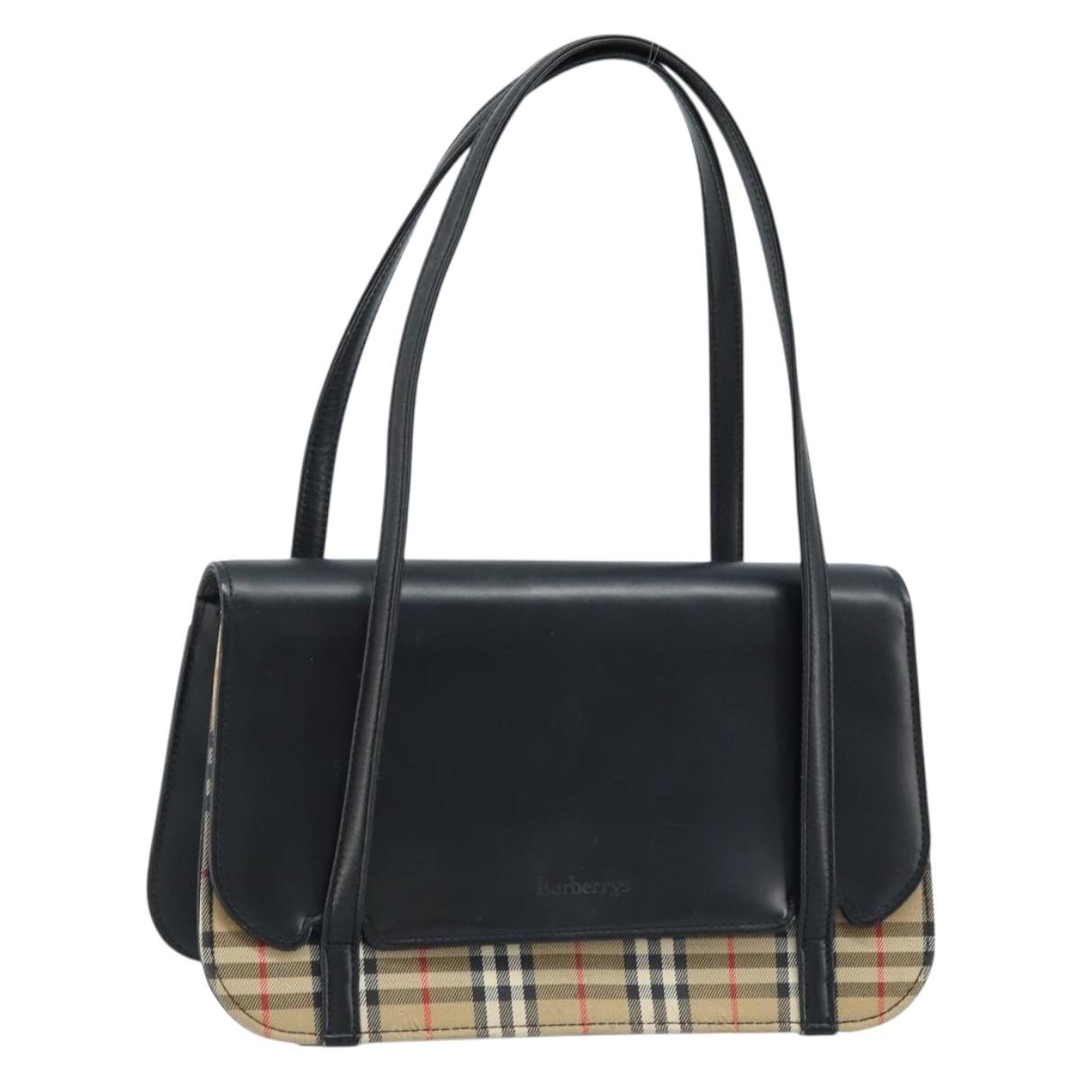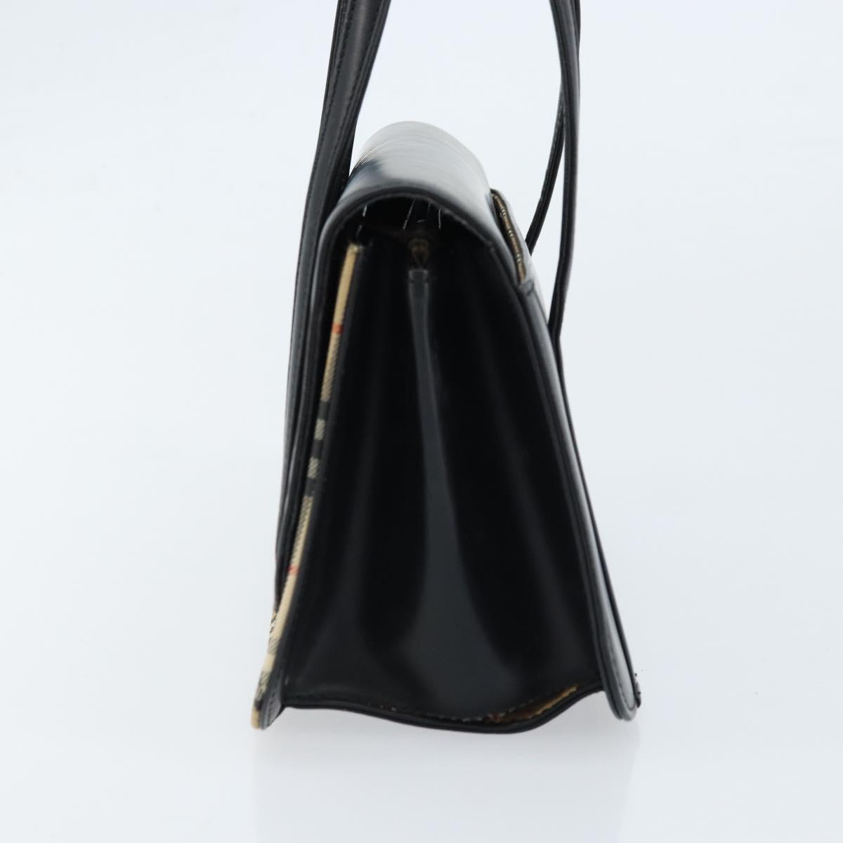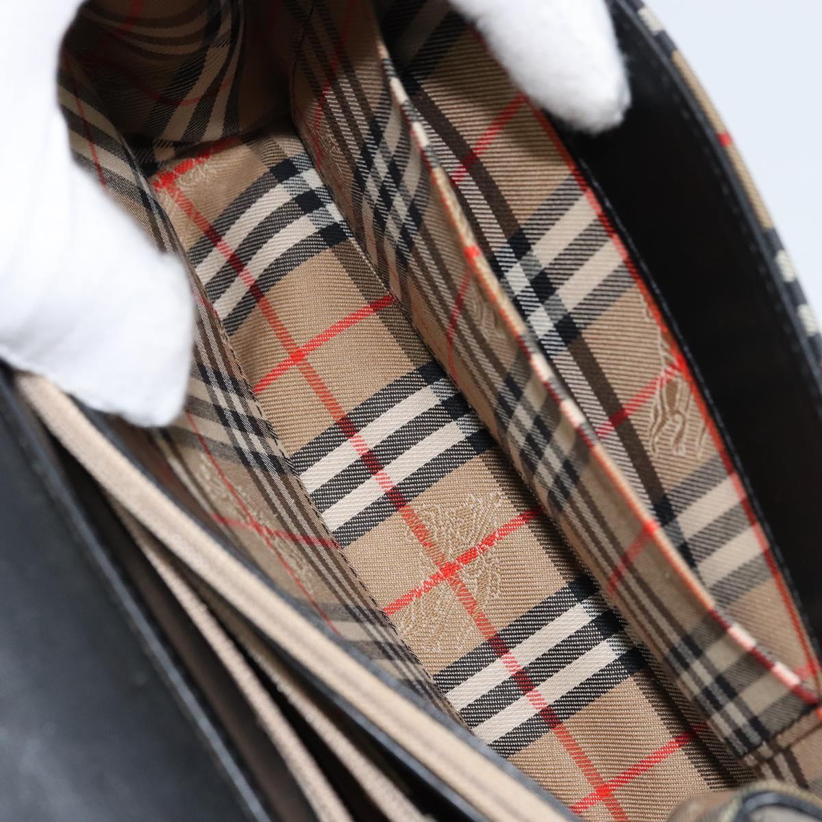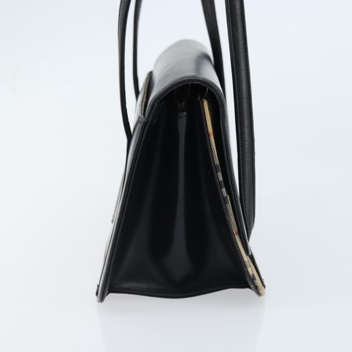 Burberrys Nova Check Hand Bag Leather Black Silver Auth ep13393