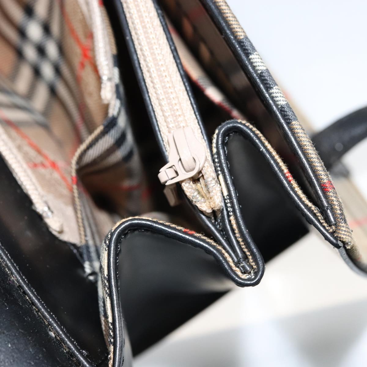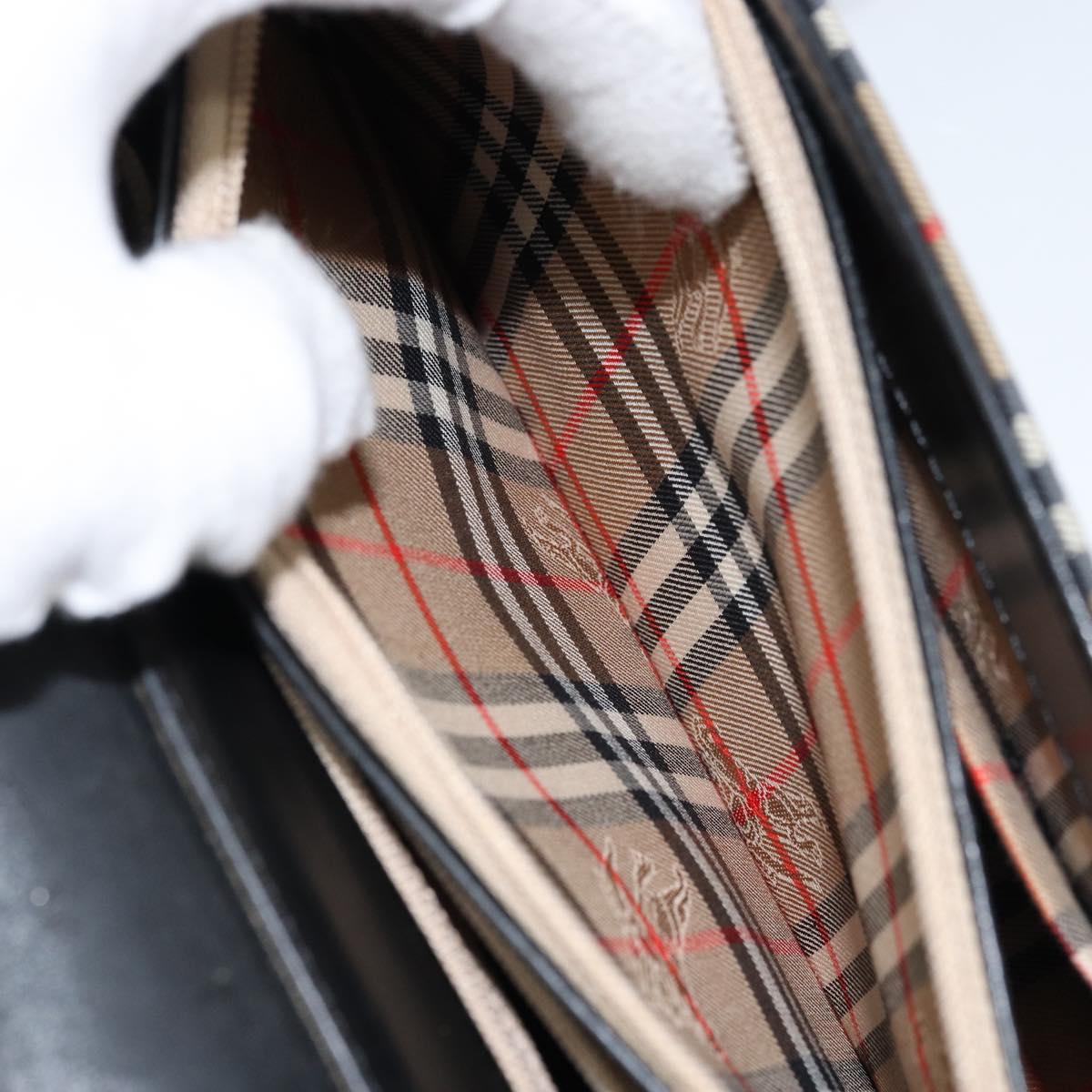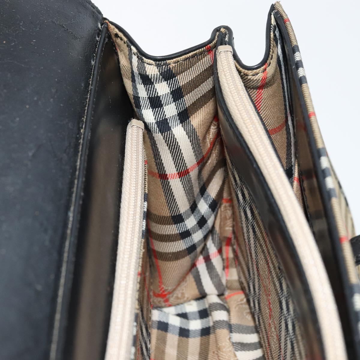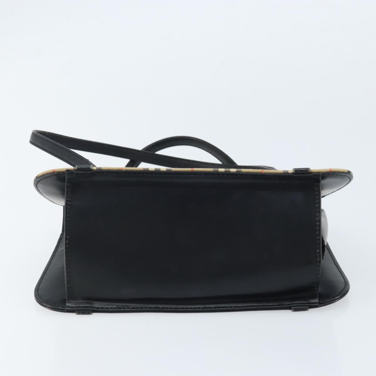 Burberrys Nova Check Hand Bag Leather Black Silver Auth ep13393