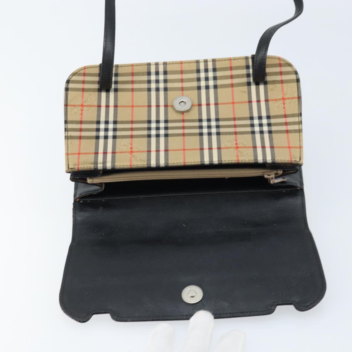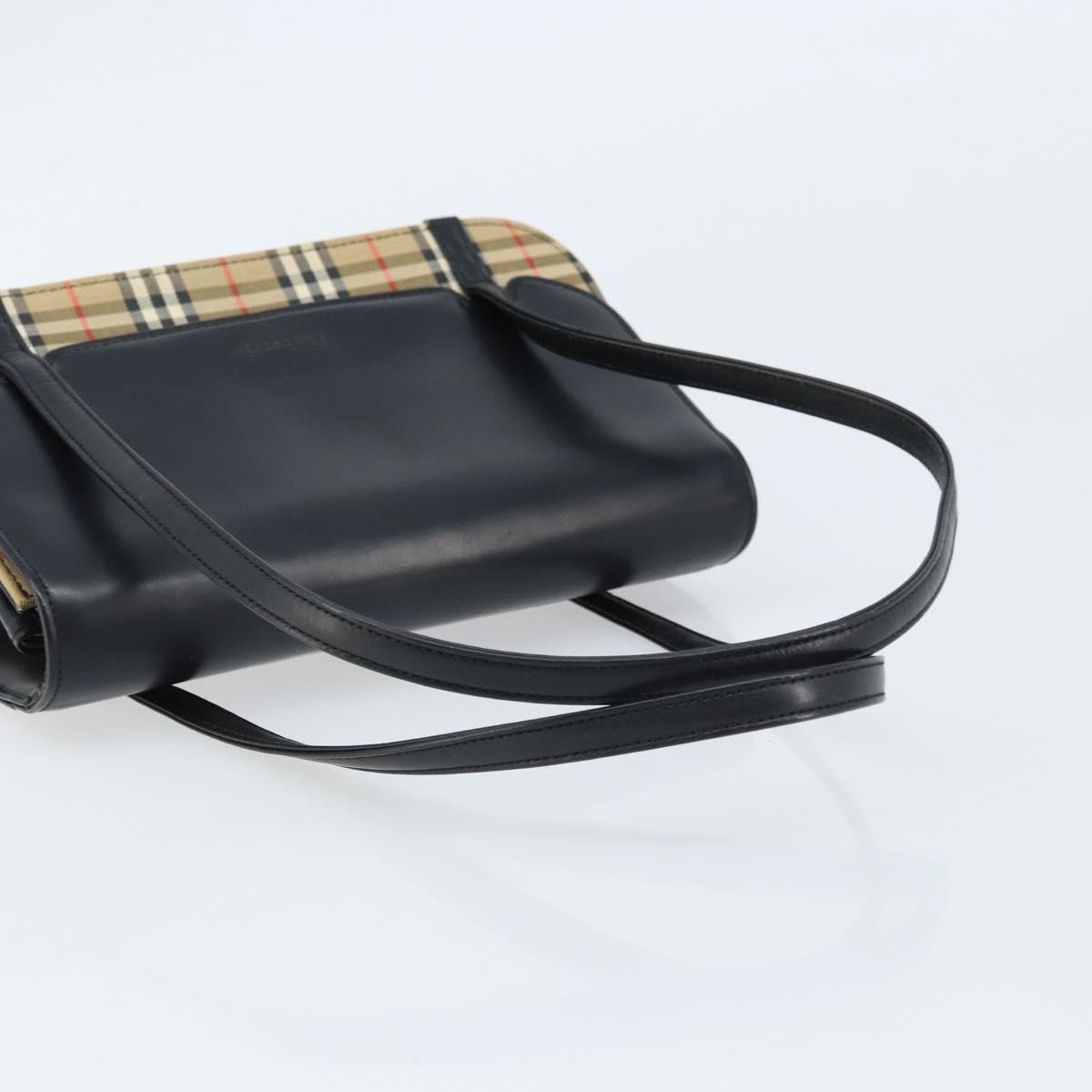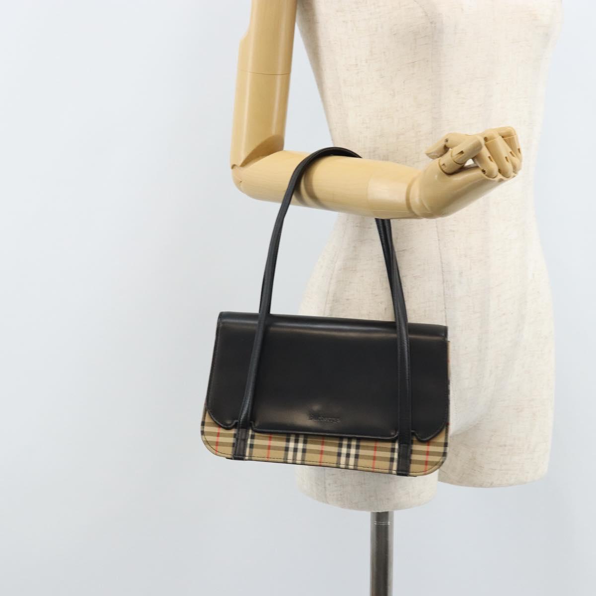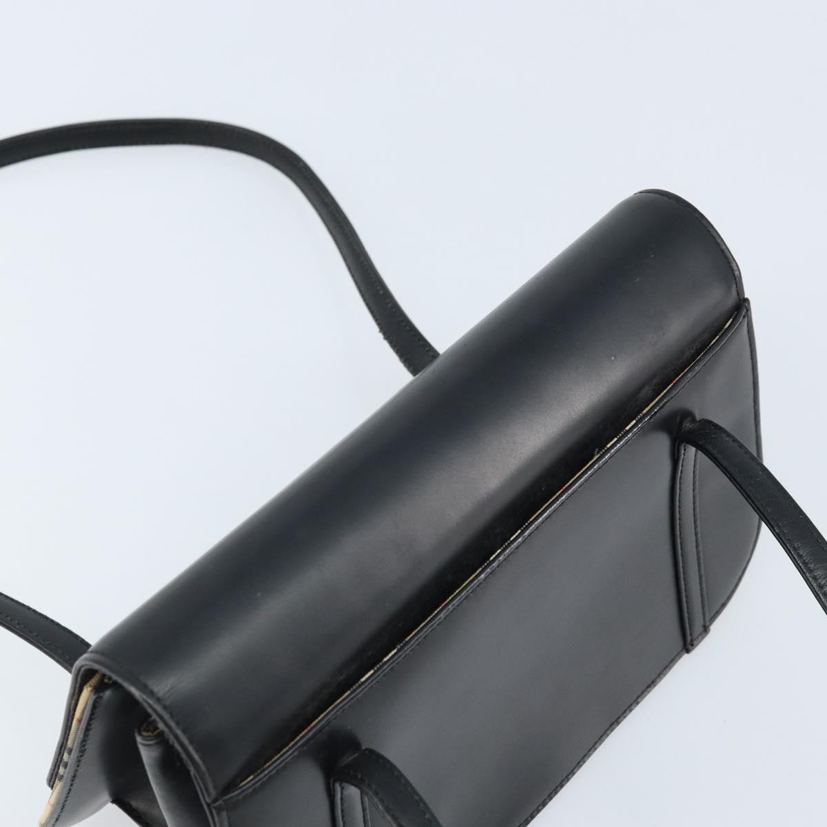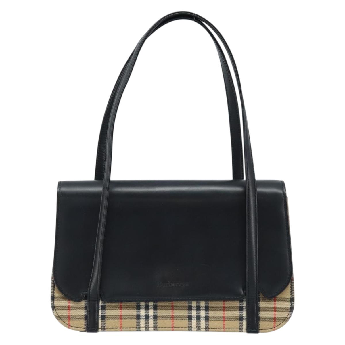 Burberrys Nova Check Hand Bag Leather Black Silver Auth ep13393