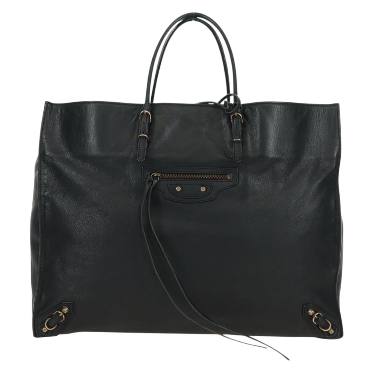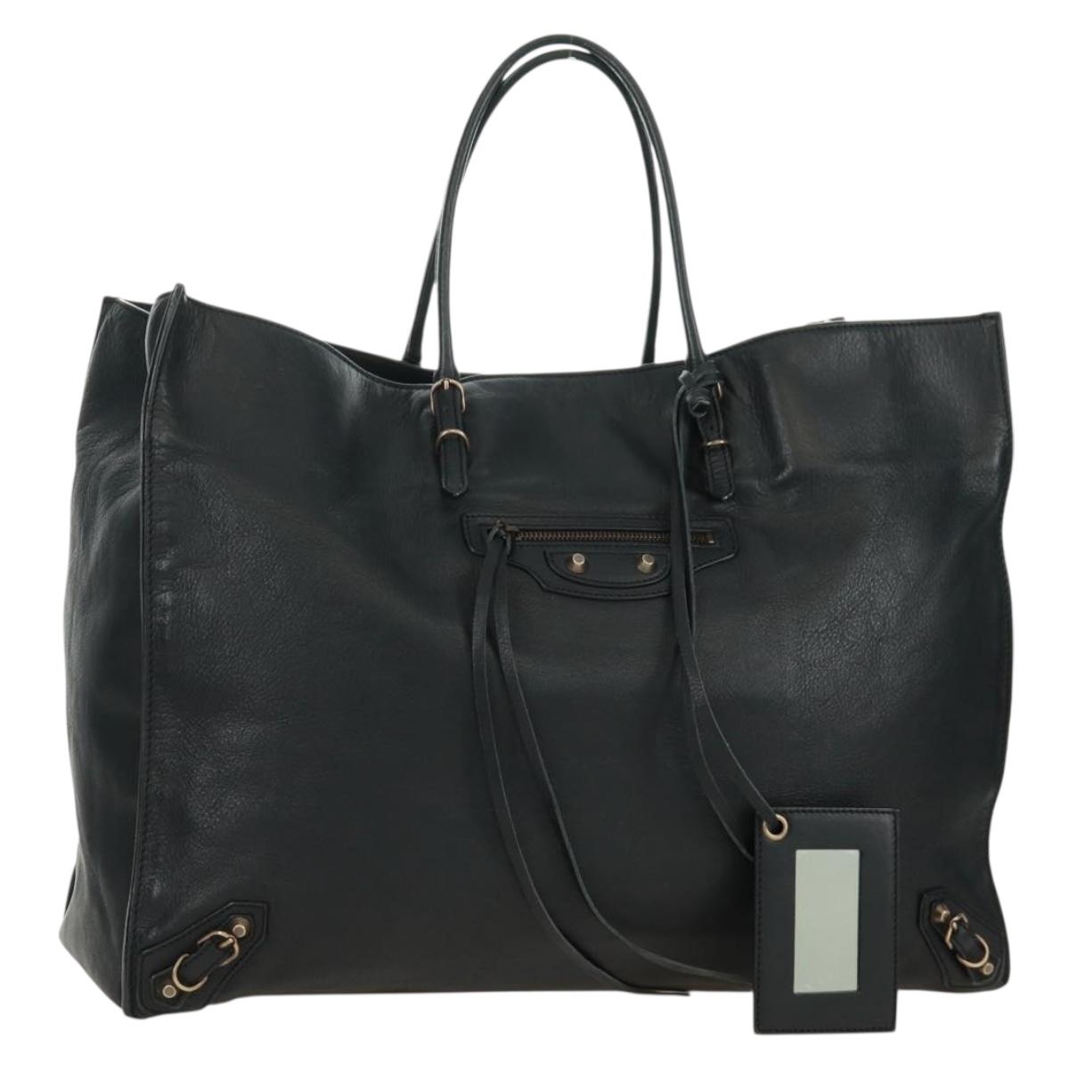 BALENCIAGA Paper A4 Tote Bag Leather Black 236701 Auth 158583M