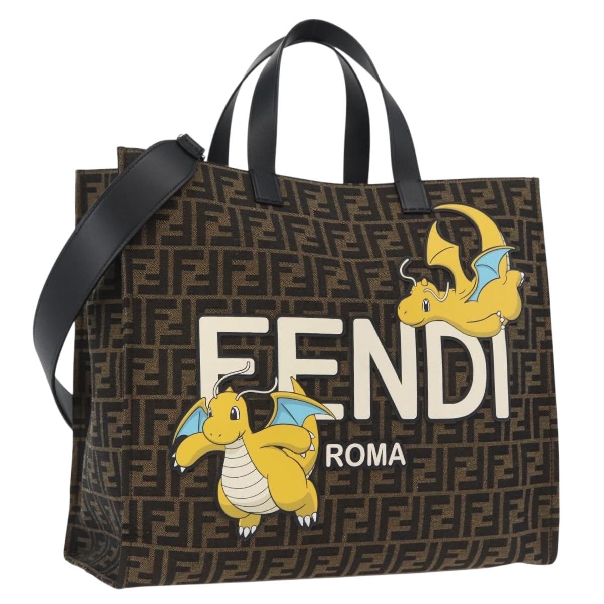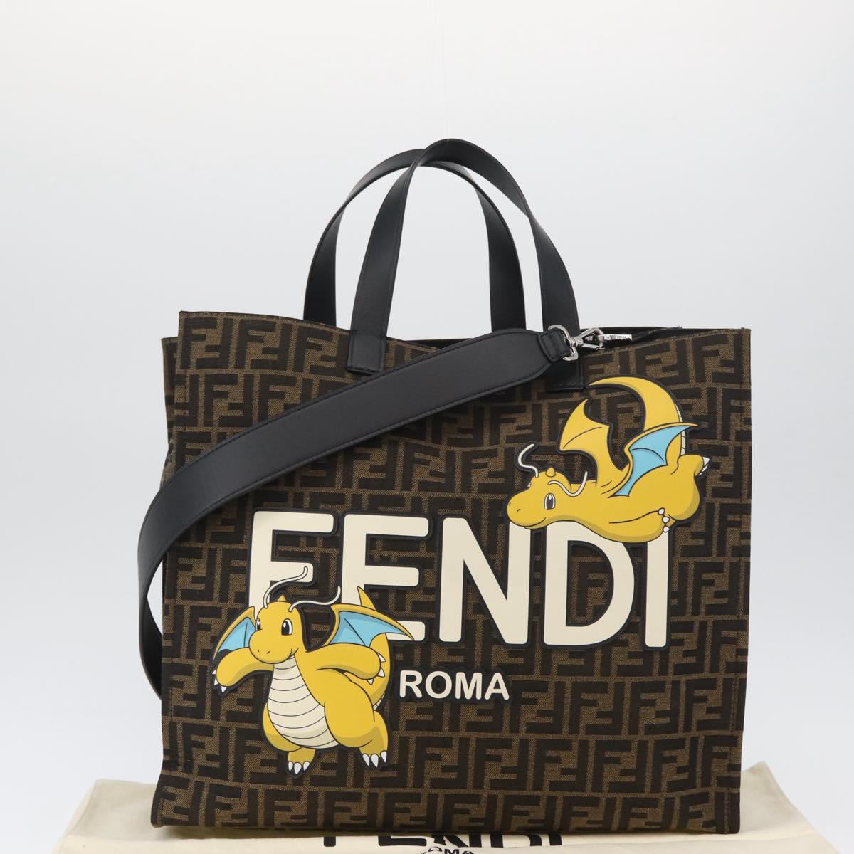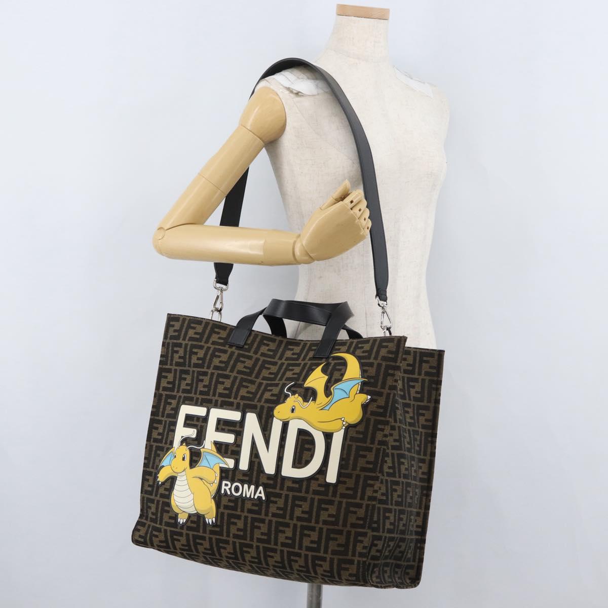 FENDI Zucca Canvas Fragment x Pokemon Hand Bag 2way Brown Black Auth 165378SM
