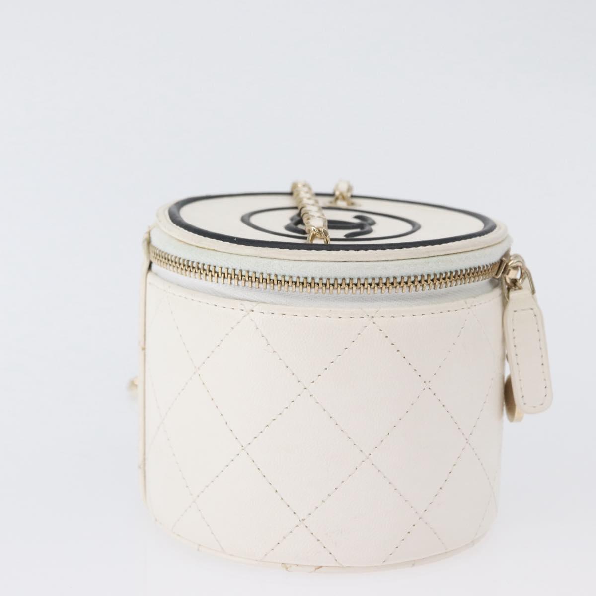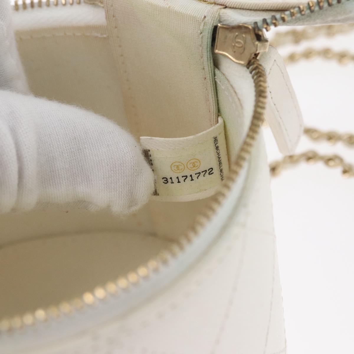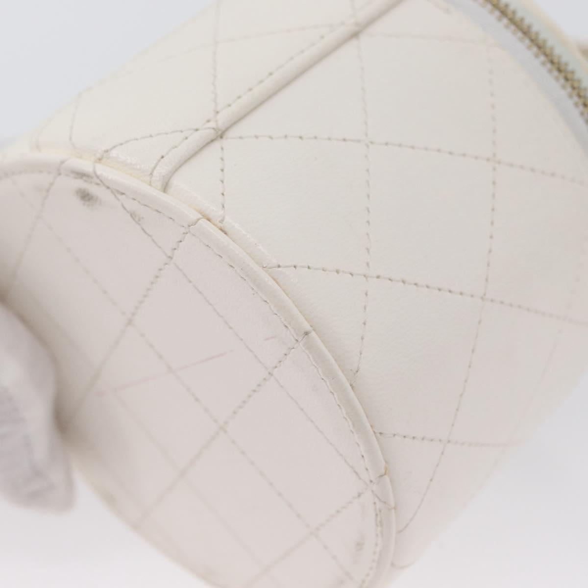 CHANEL Matelasse Chain Shoulder Bag Lamb Skin White Gold CC Auth 170857M