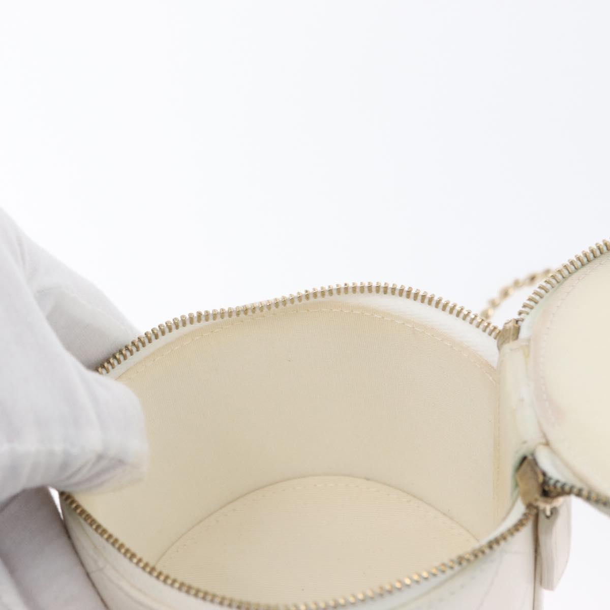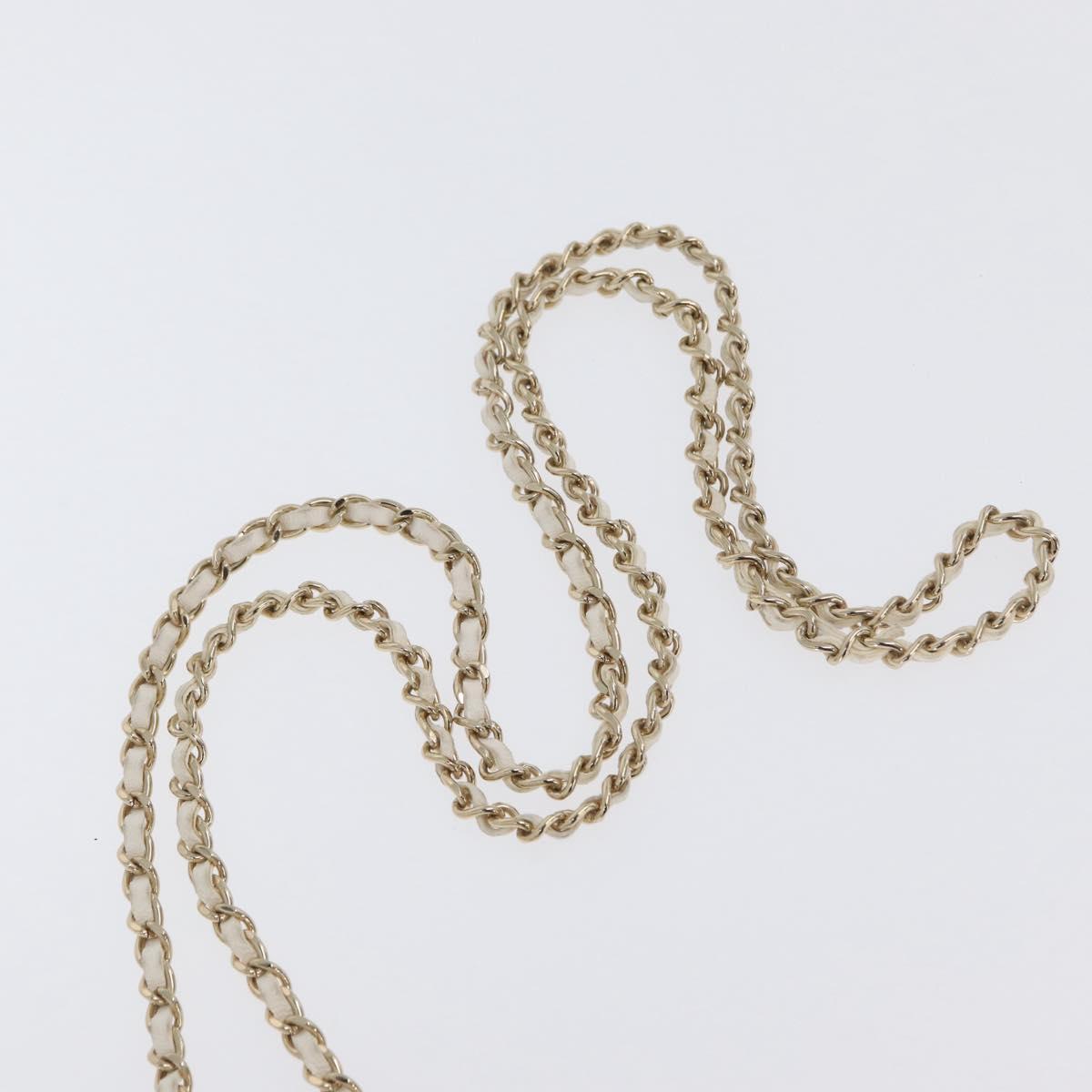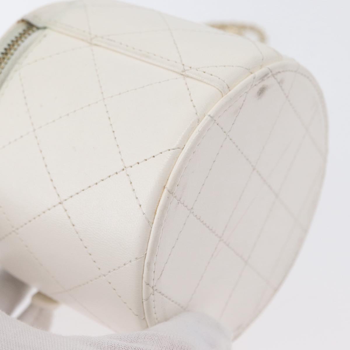 CHANEL Matelasse Chain Shoulder Bag Lamb Skin White Gold CC Auth 170857M