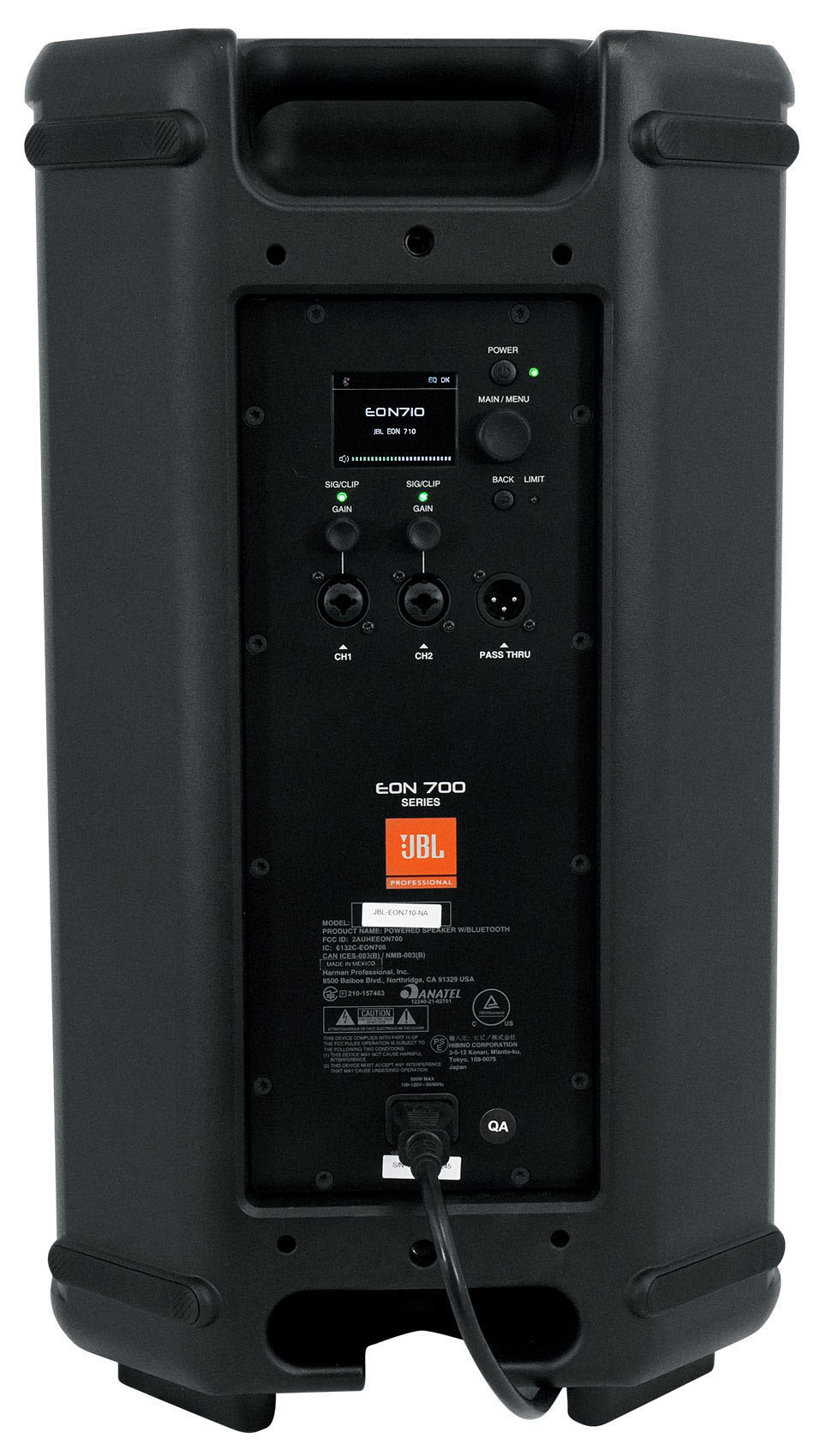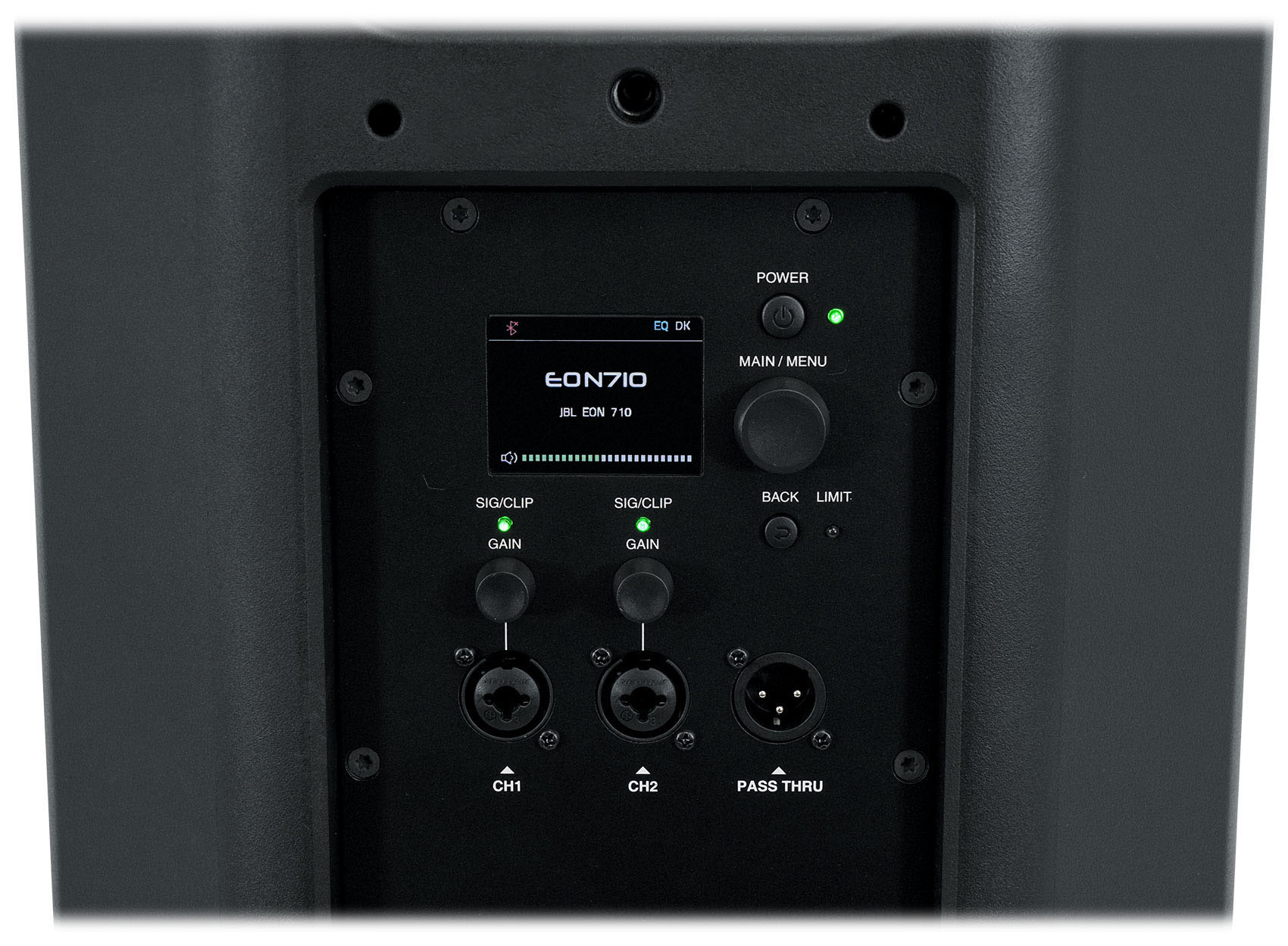The EON710's advanced DSP package provides comprehensive control over EQ, limiters, delay, dbx Automatic Feedback Suppression, ducking and other functions. Access settings on-speaker using an integrated backlit LCD screen, or from anywhere in the venue using the JBL Pro Connect App. Built-in Bluetooth 5.0 audio streaming and control take advantage of the newest protocol's security features, low latency, broad range and improved audio fidelity.