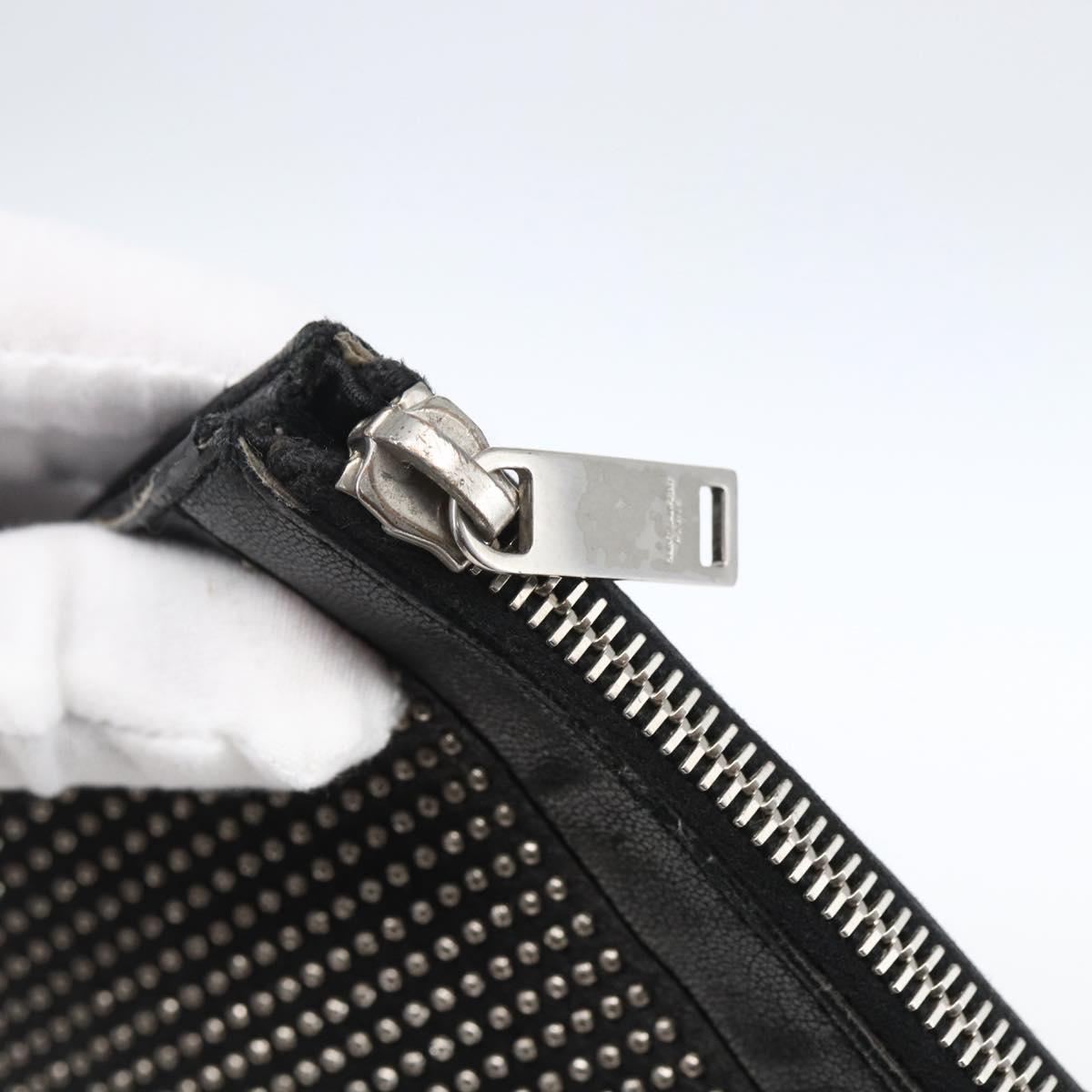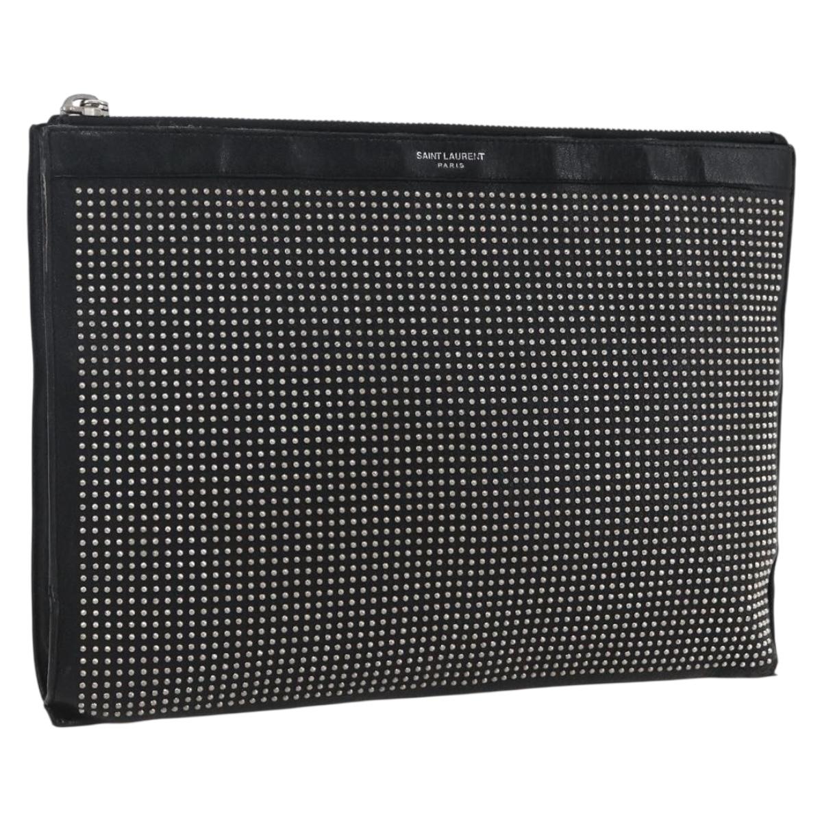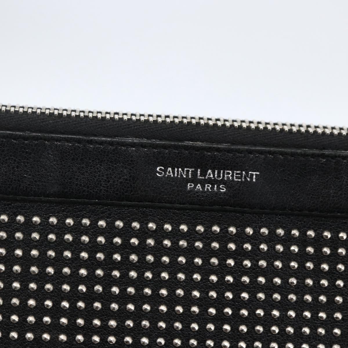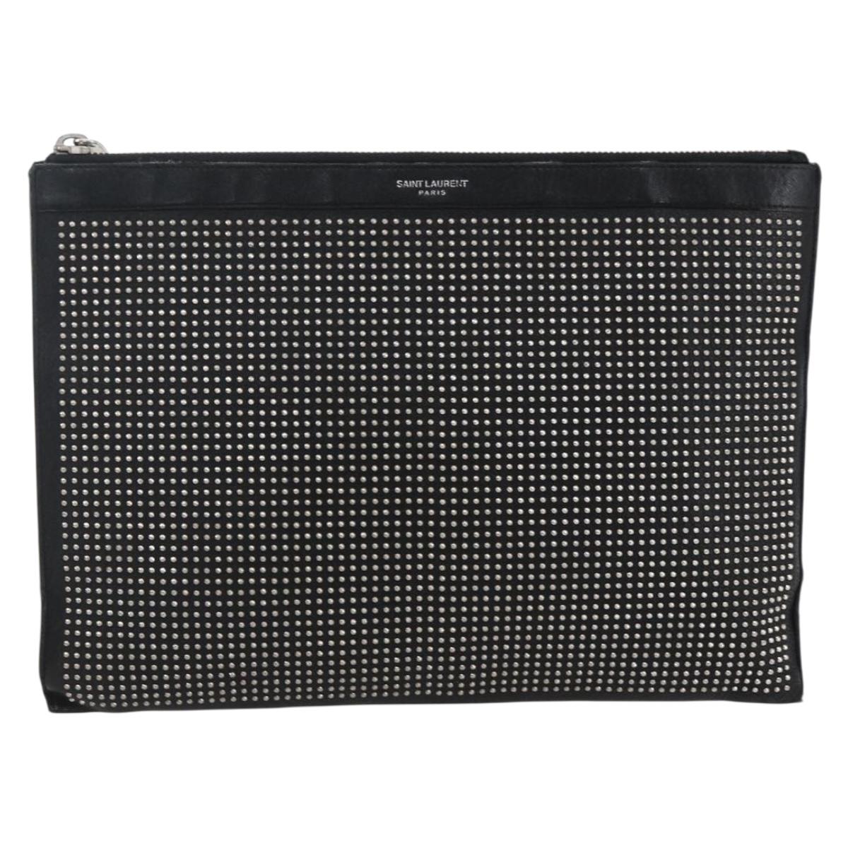 SAINT LAURENT Studs Clutch Bag Leather Black Silver Auth am10722