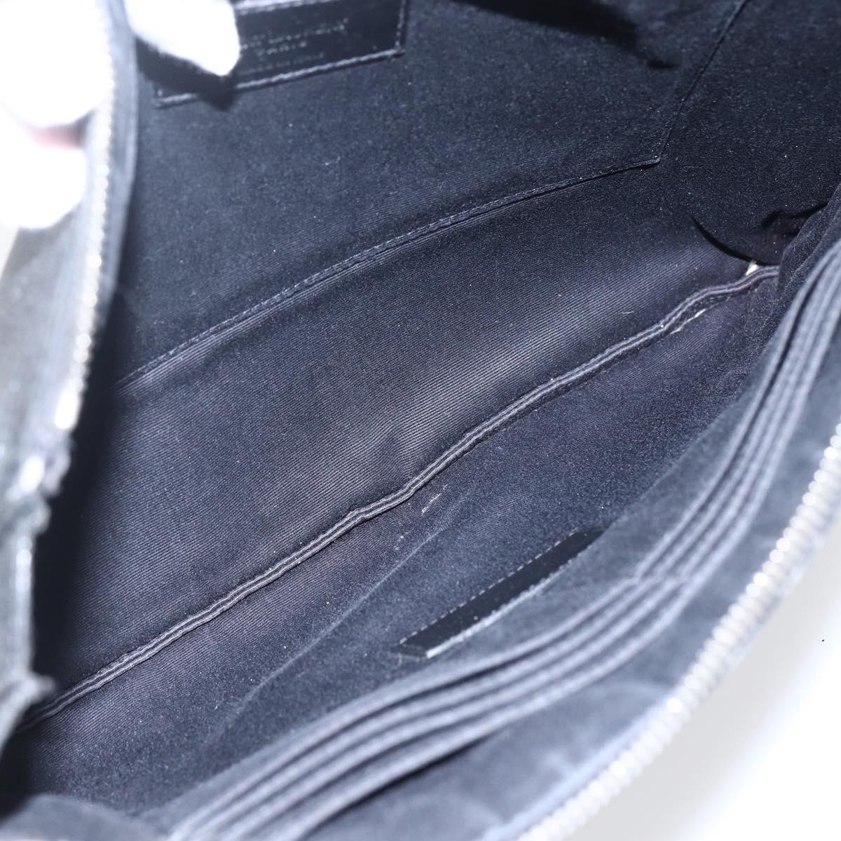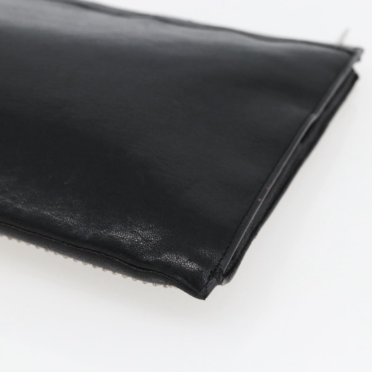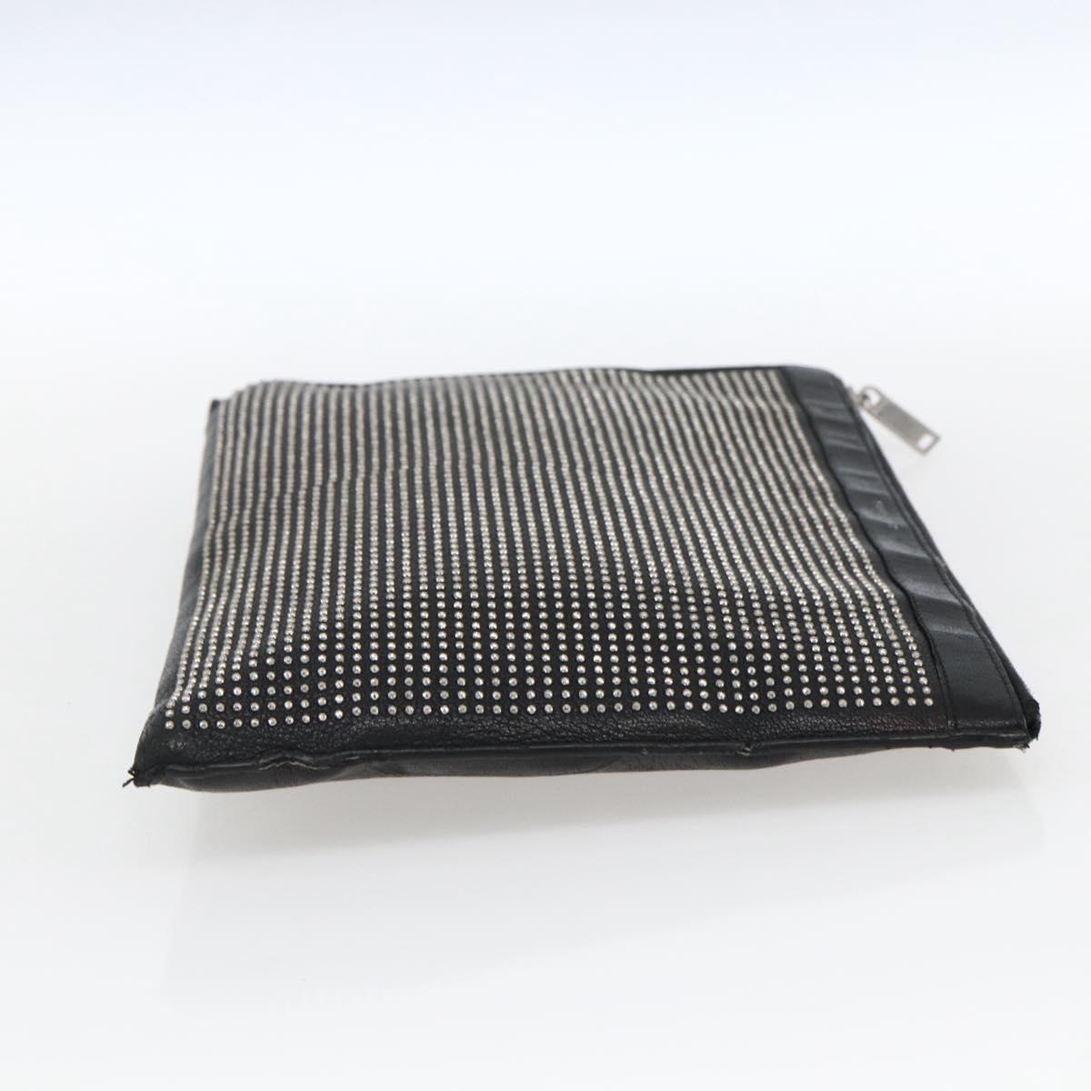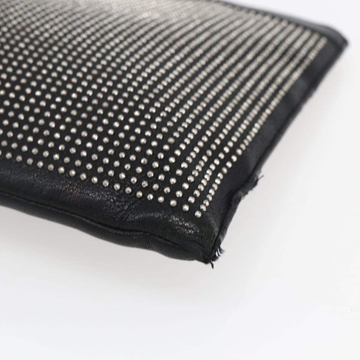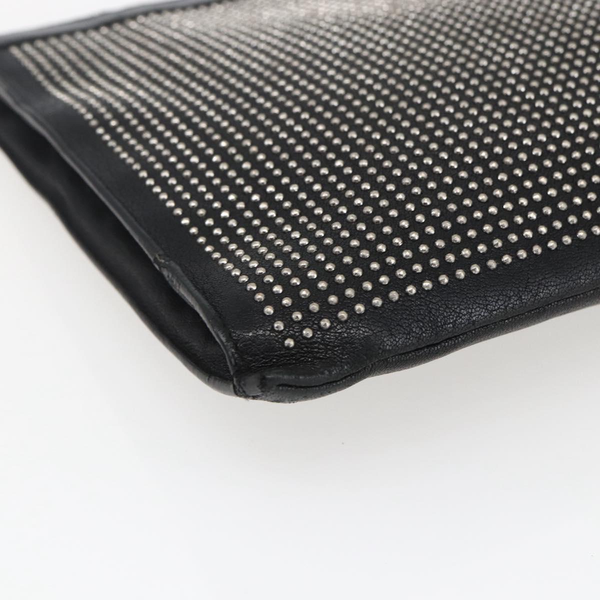 SAINT LAURENT Studs Clutch Bag Leather Black Silver Auth am10722