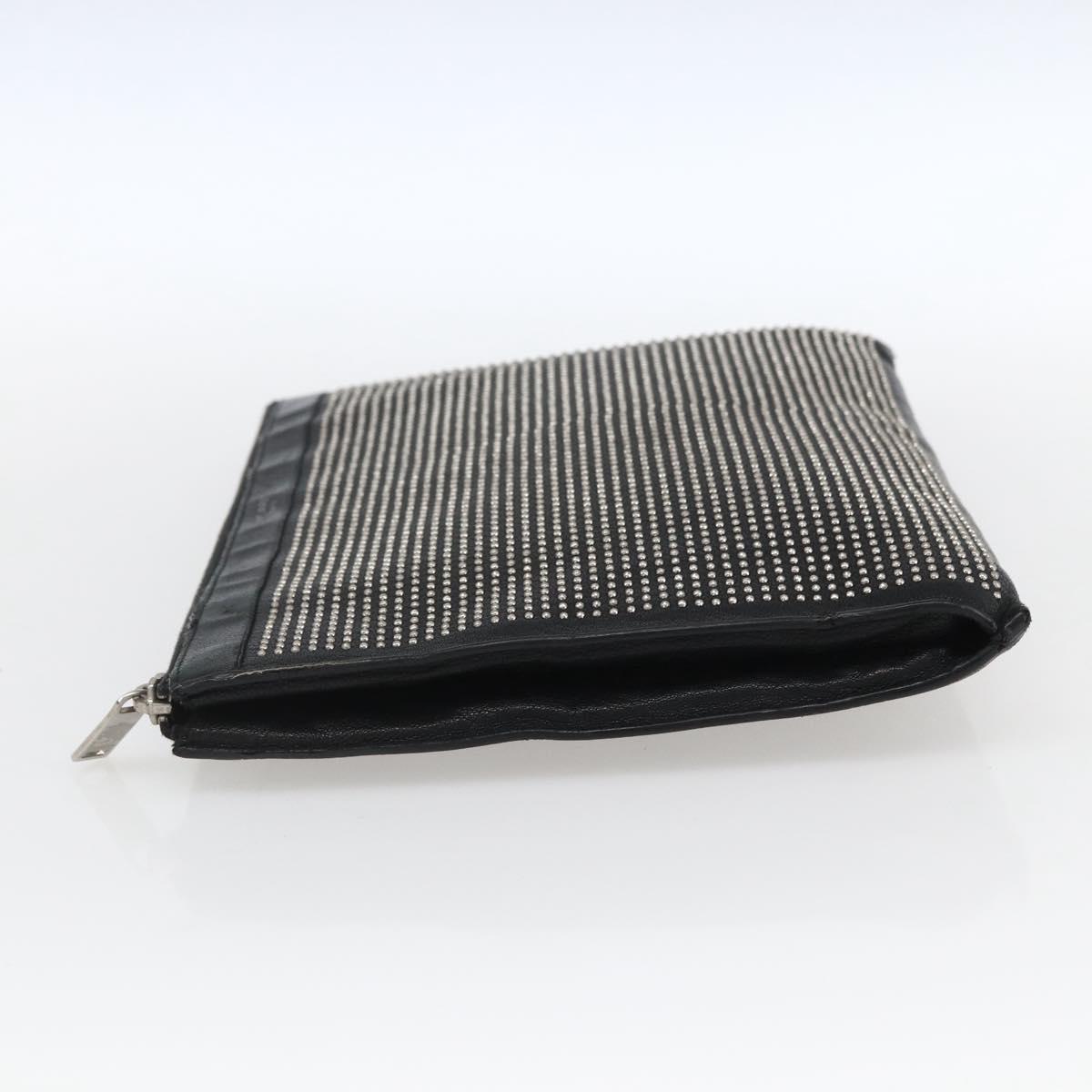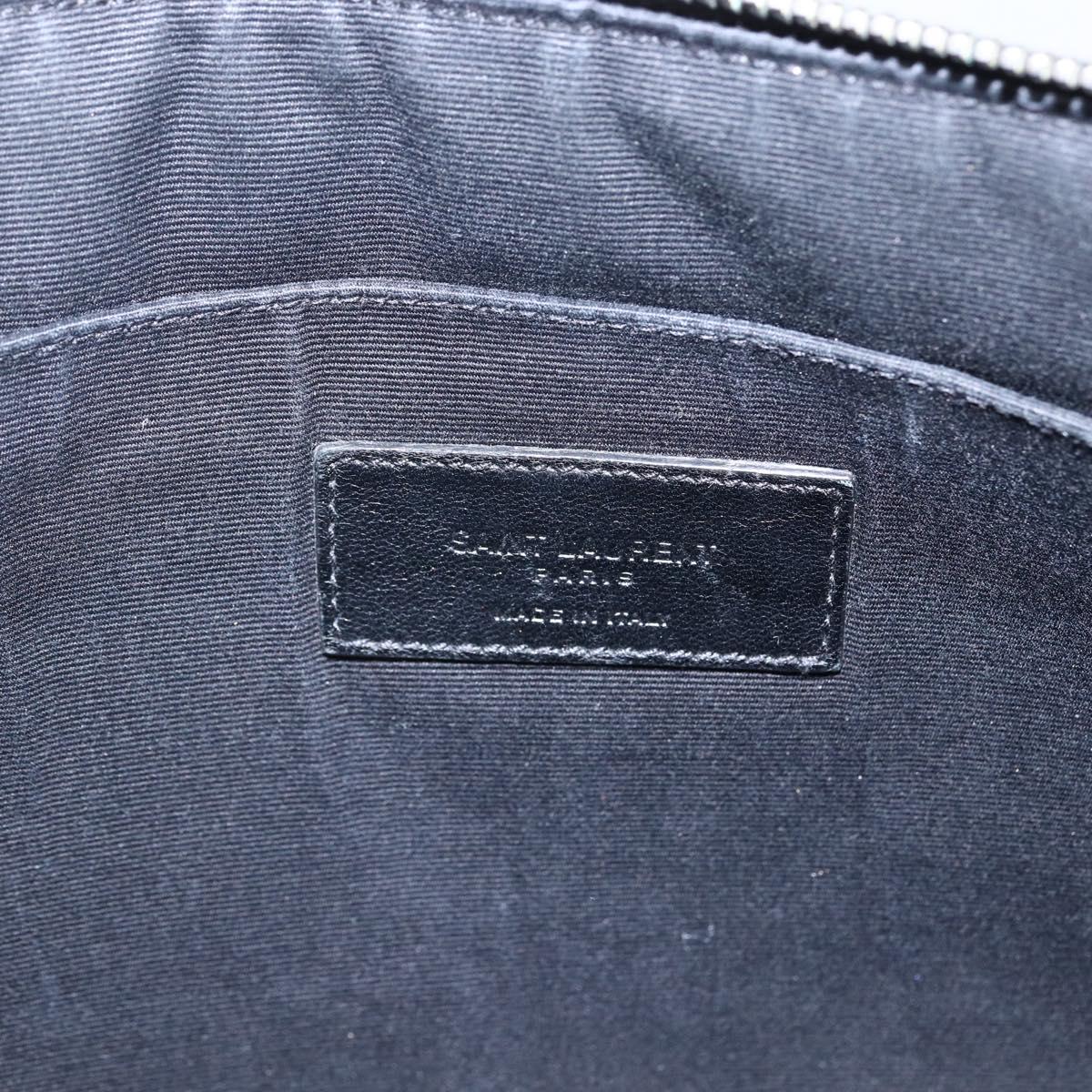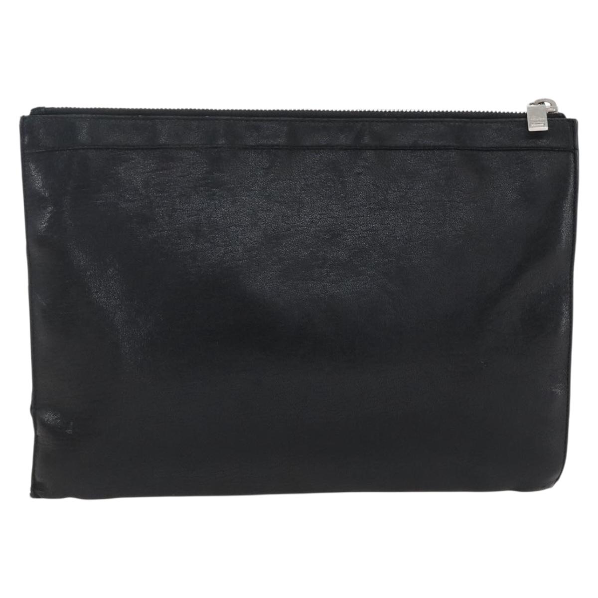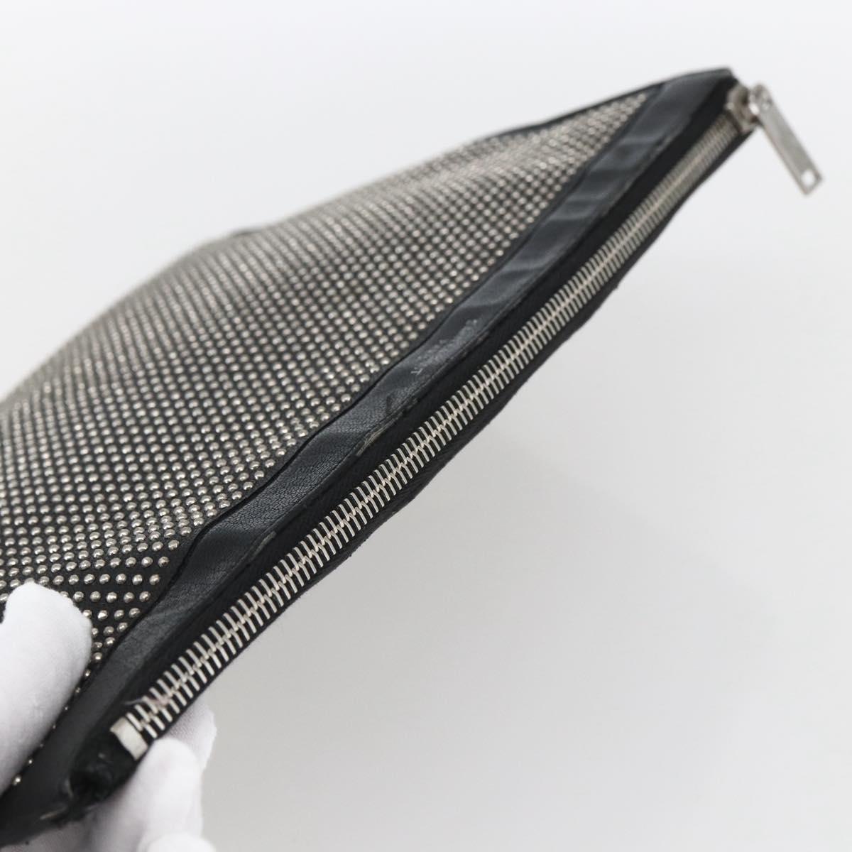 SAINT LAURENT Studs Clutch Bag Leather Black Silver Auth am10722