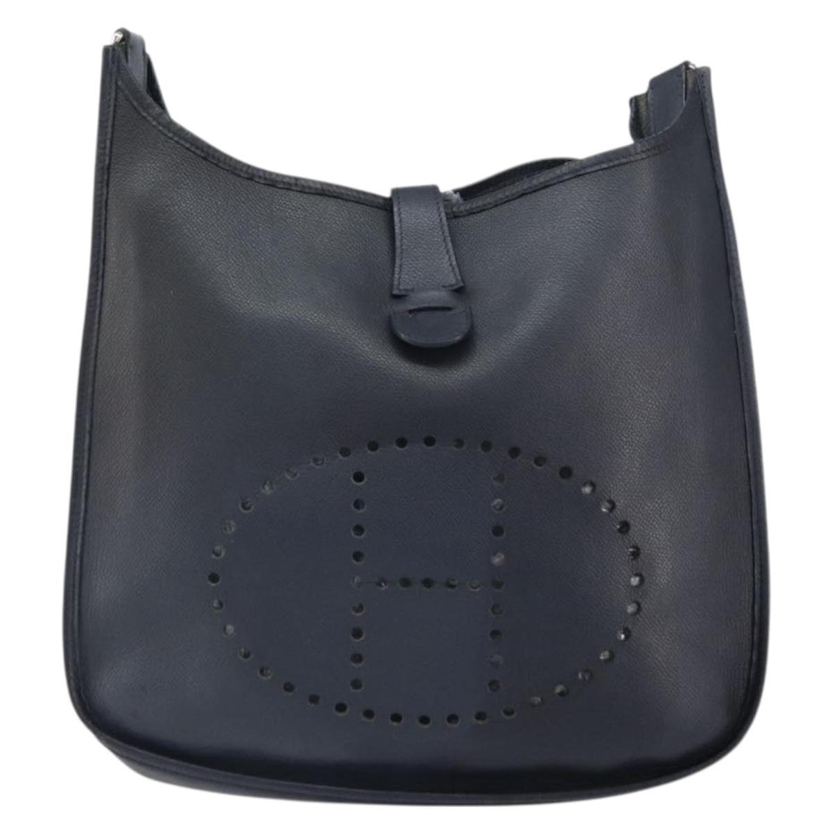 HERMES Taurillon Clemence Evelyn GM Shoulder Bag Leather Navy Auth bs32125