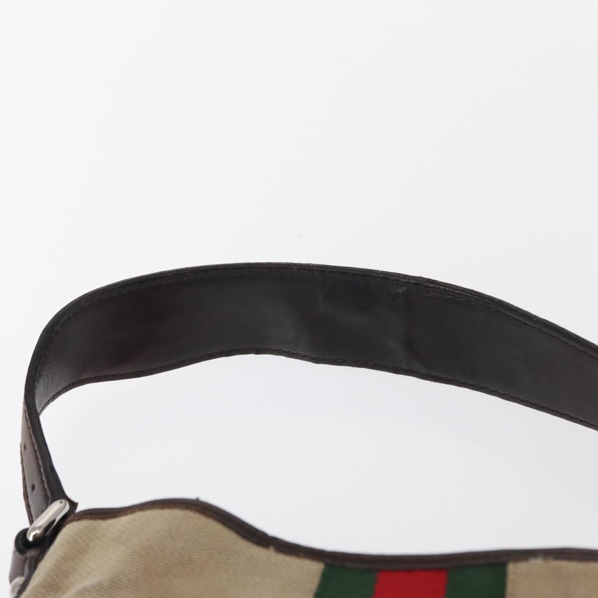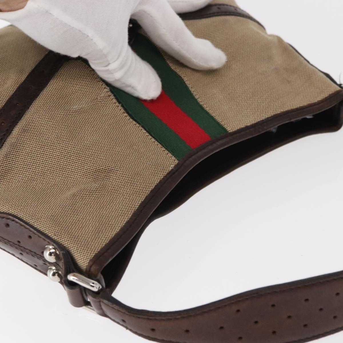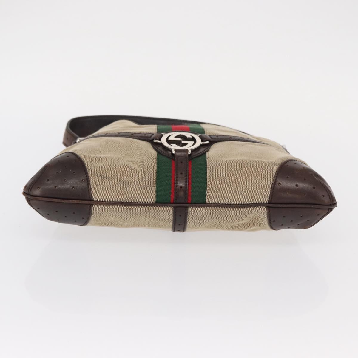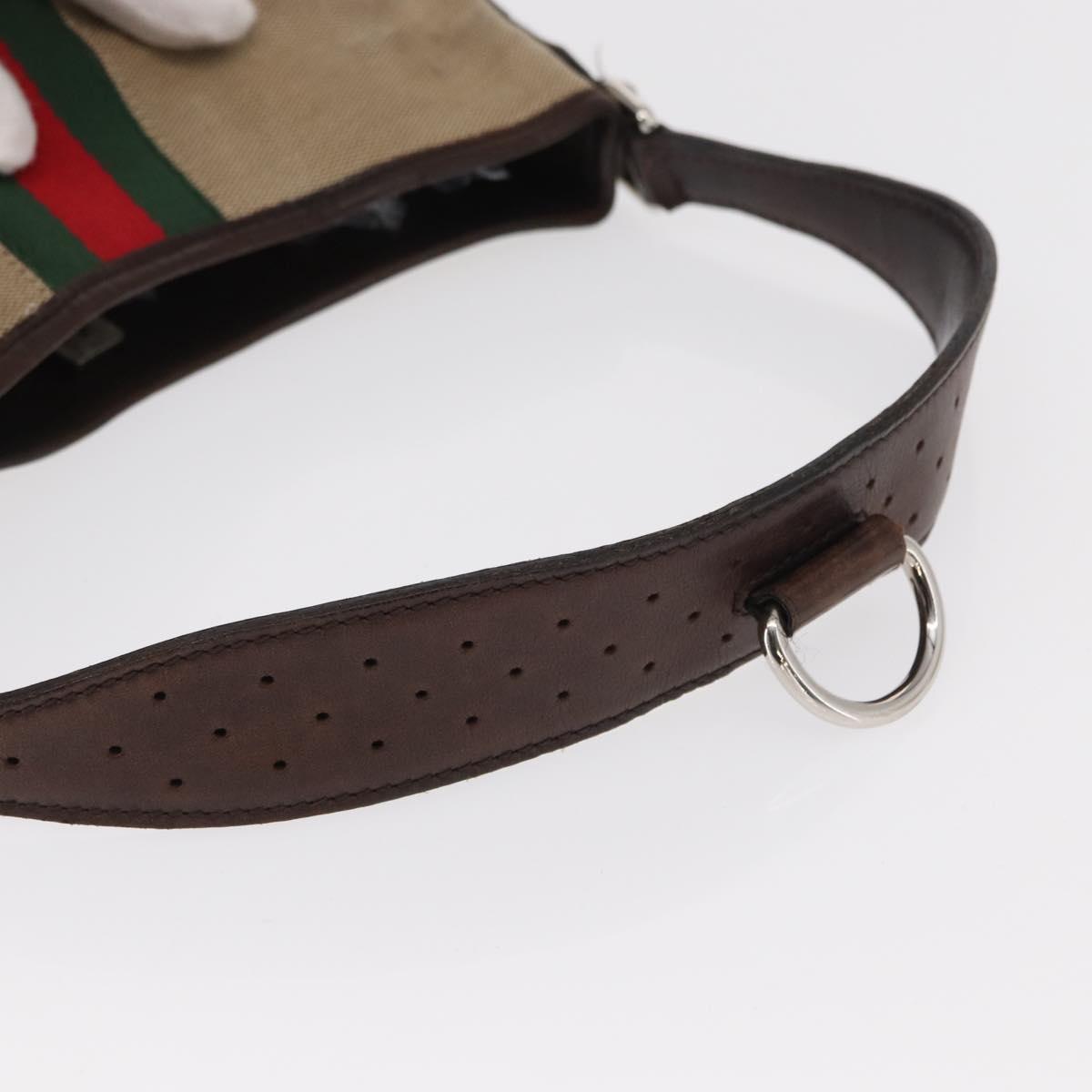 GUCCI Web Sherry Line Shoulder Bag Beige Silver Red 114877 Auth yk19547