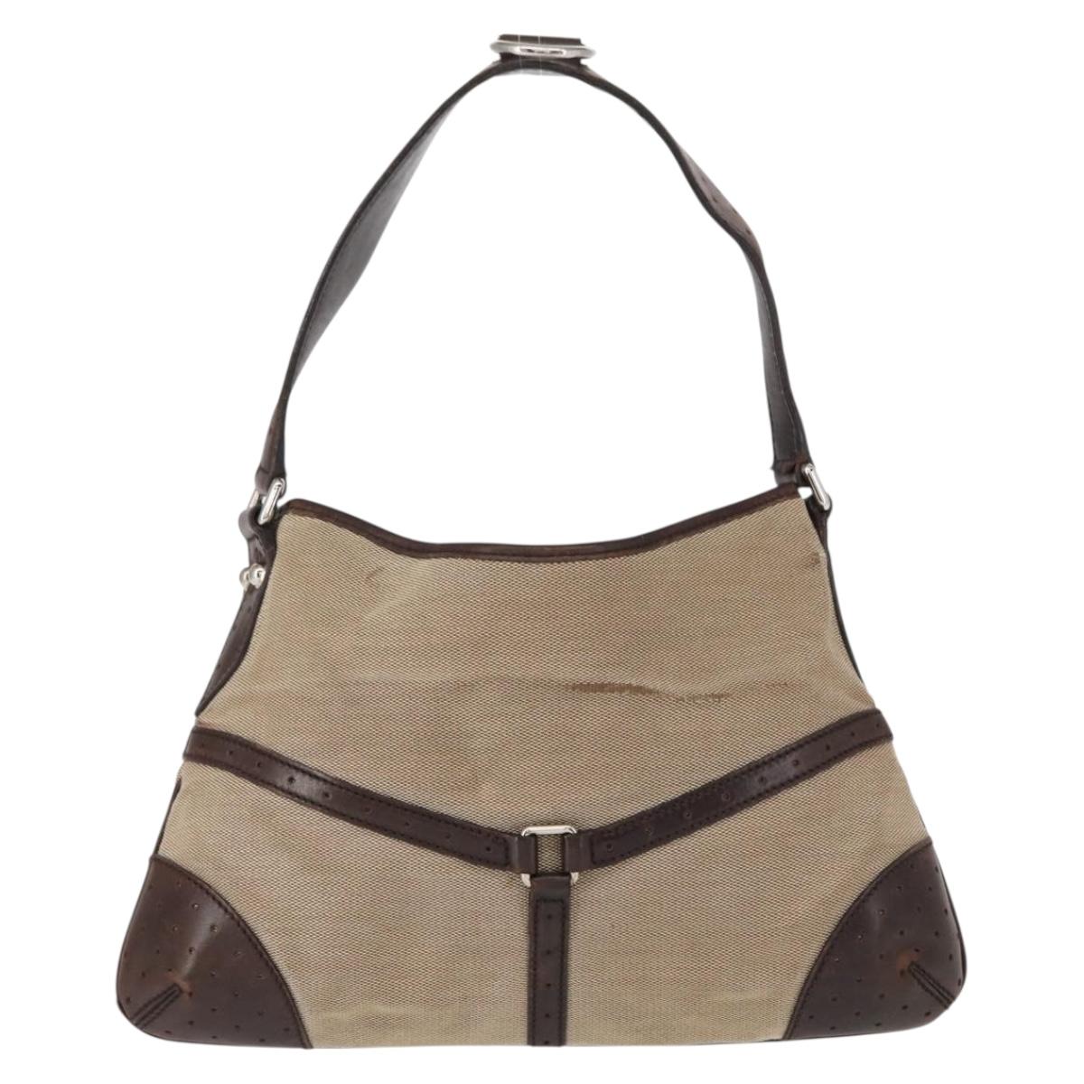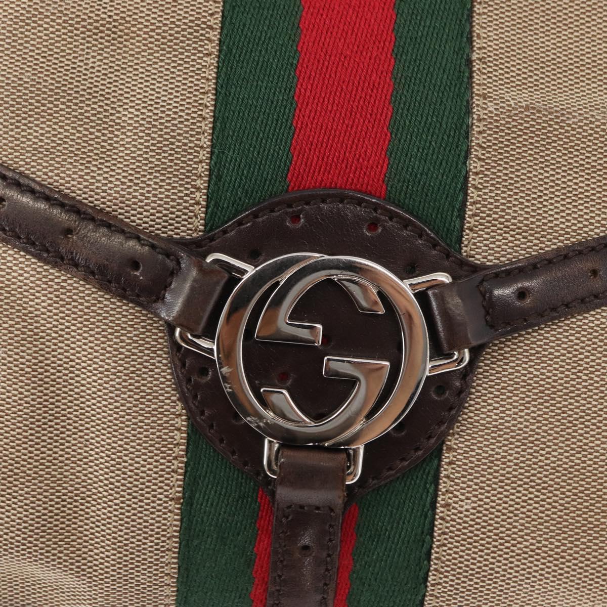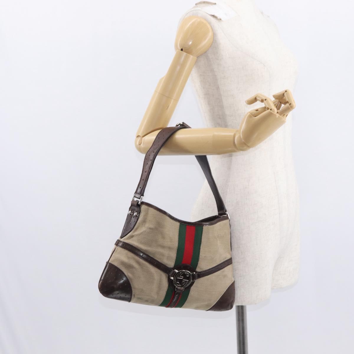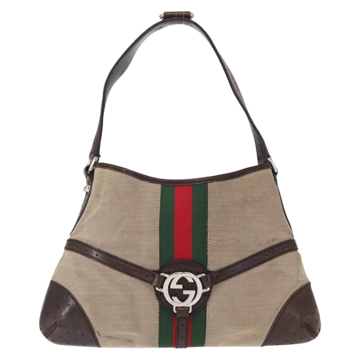 GUCCI Web Sherry Line Shoulder Bag Beige Silver Red 114877 Auth yk19547