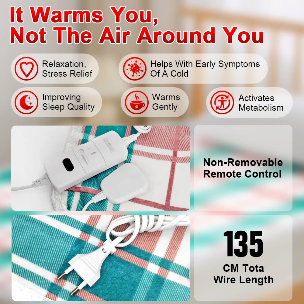 • EU/US Plug: The electric blanket comes with a EU/US plug, making it suitable for use in different countries.