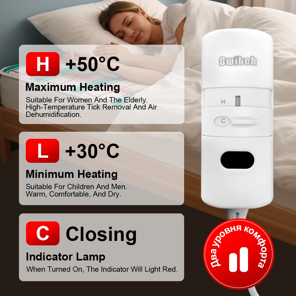 • Thicker Heater: The electric blanket has a thicker heater that provides warmth and comfort to your body.