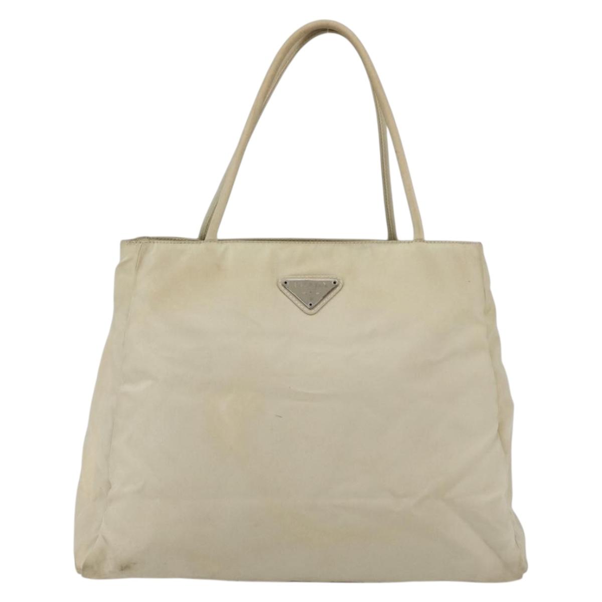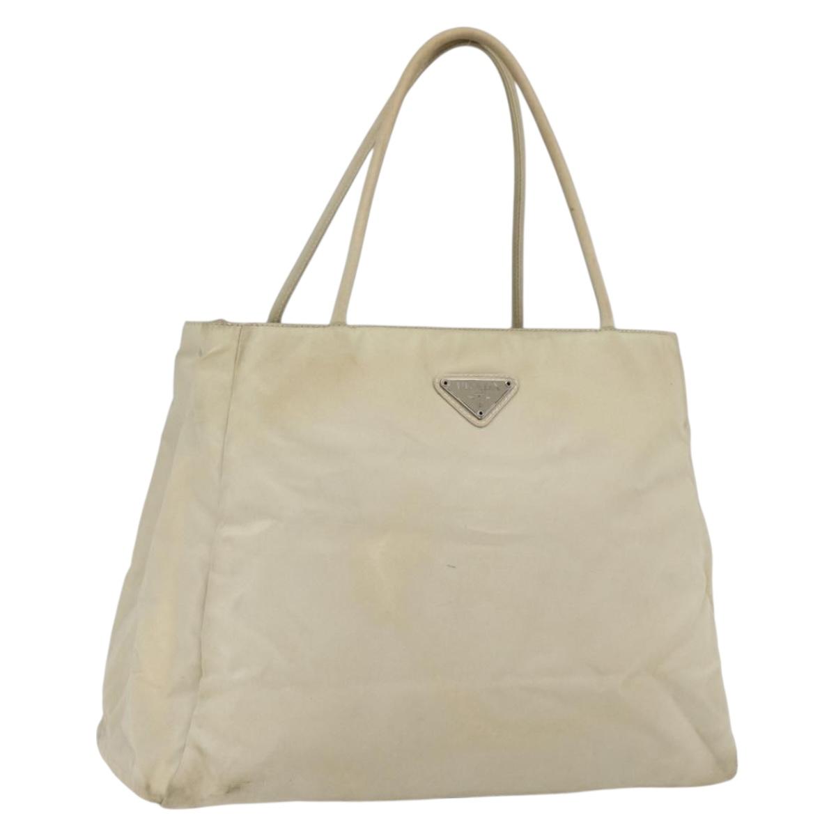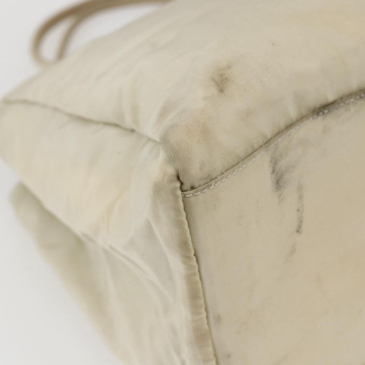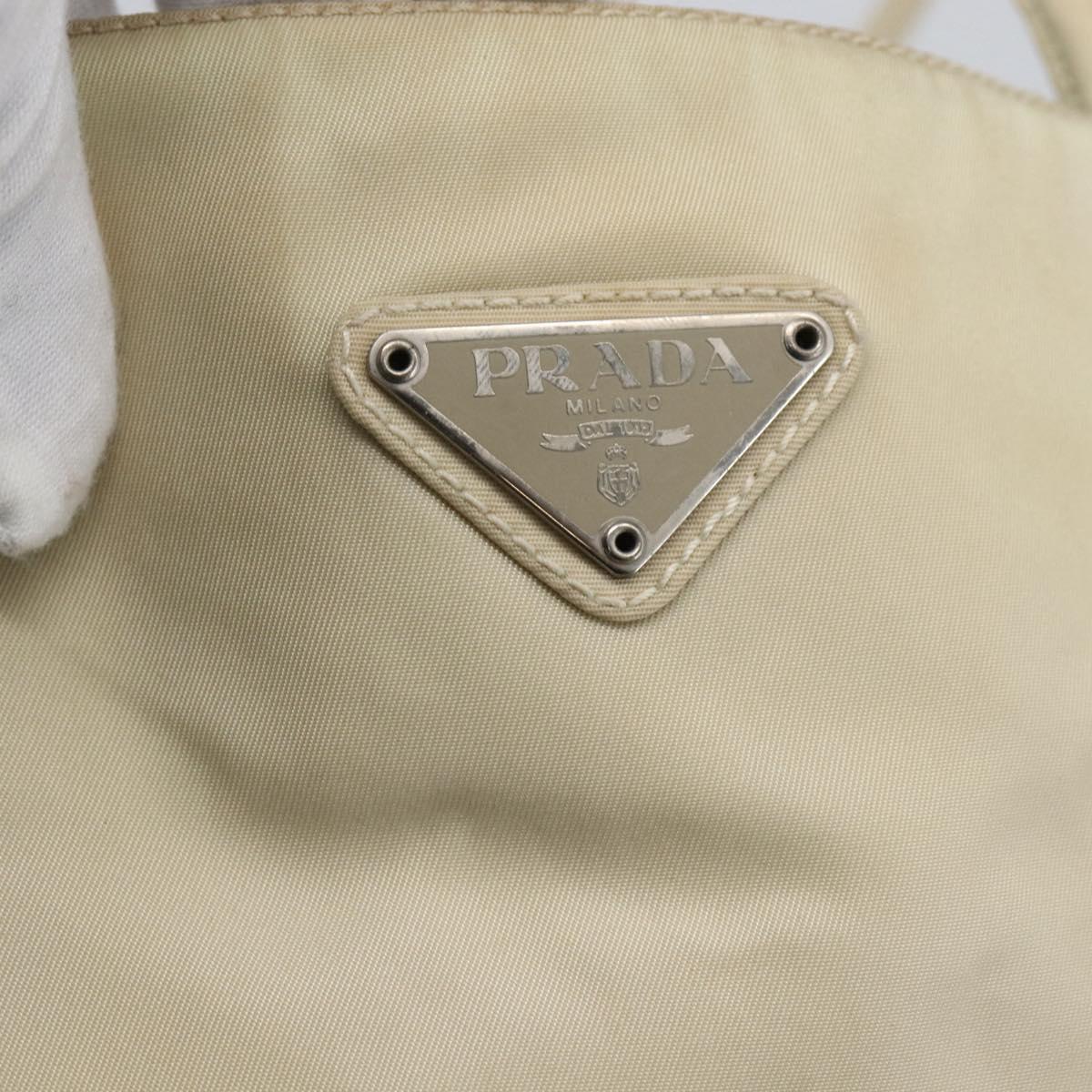 PRADA Hand Bag Nylon Ivory Silver Auth LNZ228