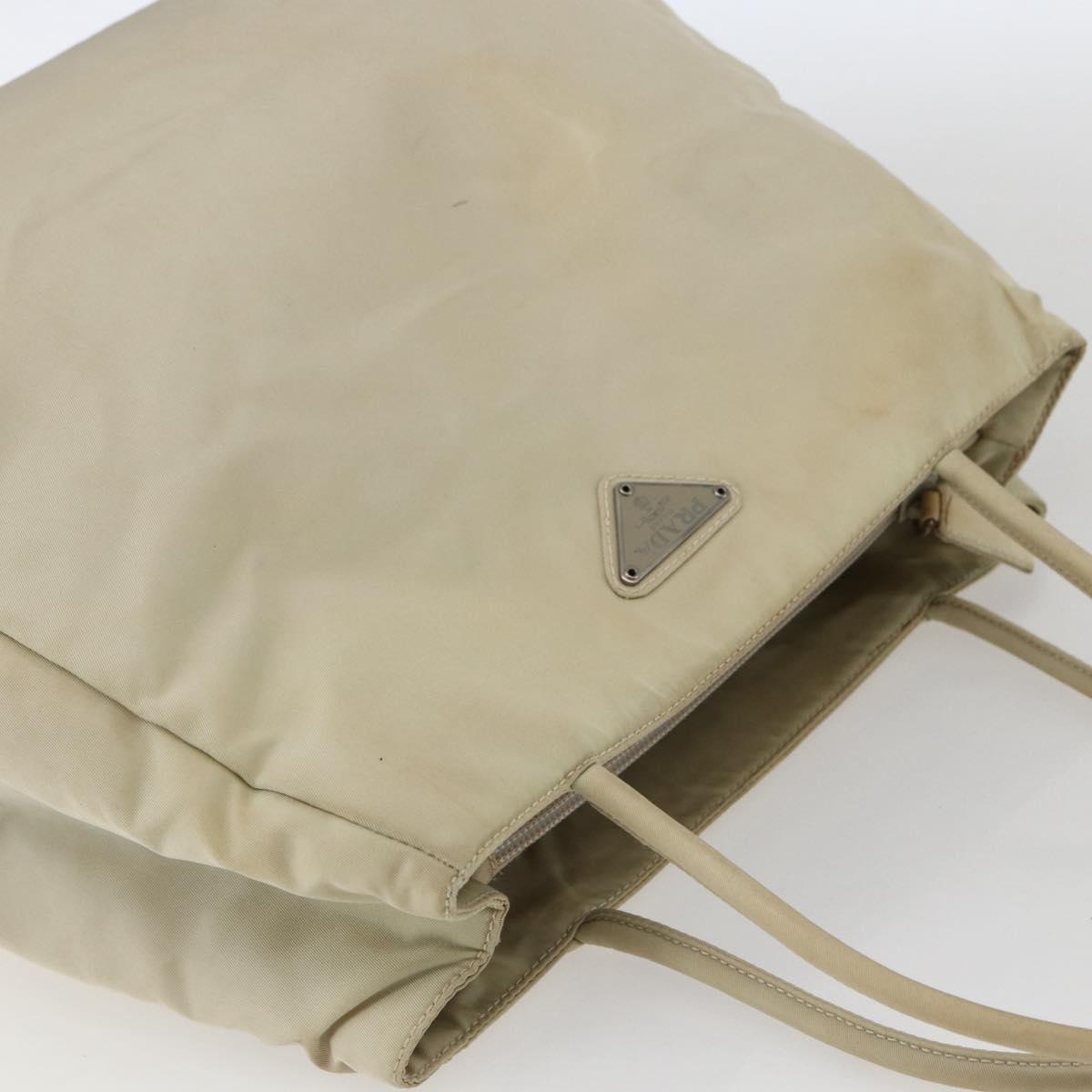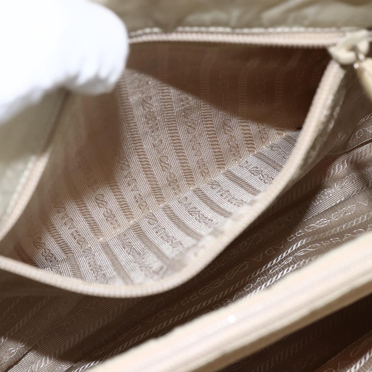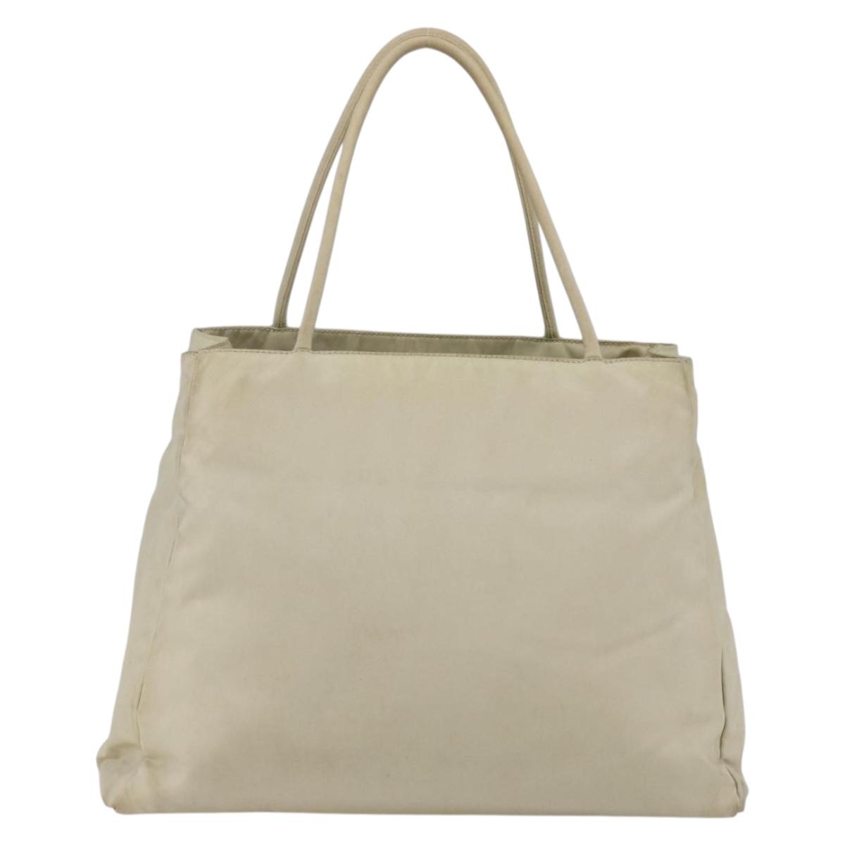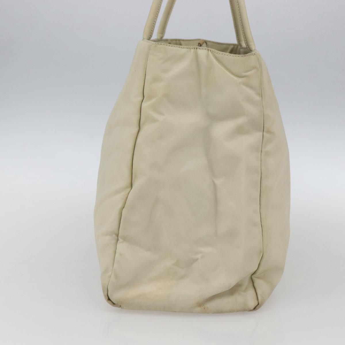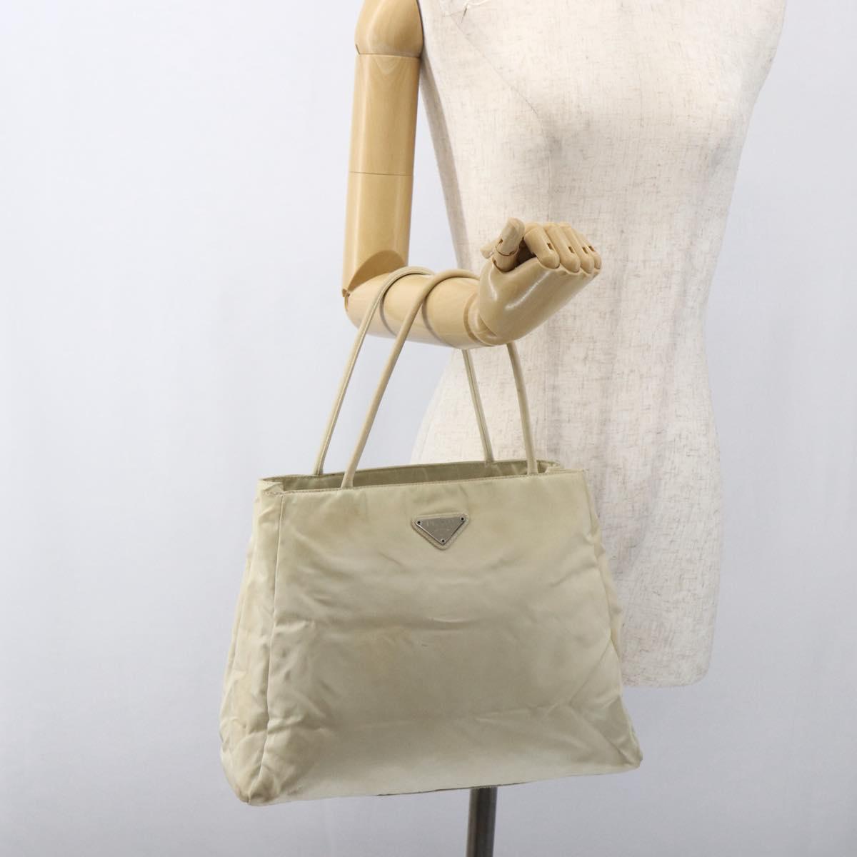 PRADA Hand Bag Nylon Ivory Silver Auth LNZ228