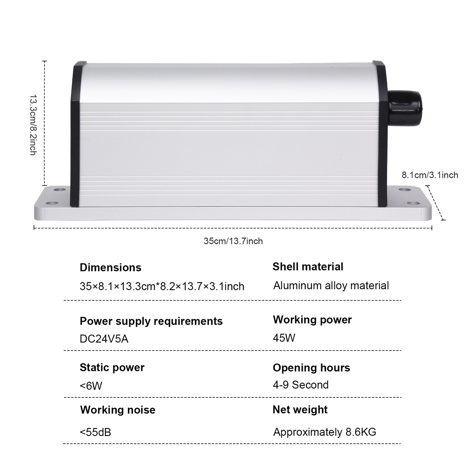 Efficient Operating: The intelligent reverse protection feature of this automatic door opener ensures safety, while its small size and strong power contribute to efficient operating. With a dustproof and waterproof design, it's ideal for side-mounted doors up to 12 feet high and 551 pounds