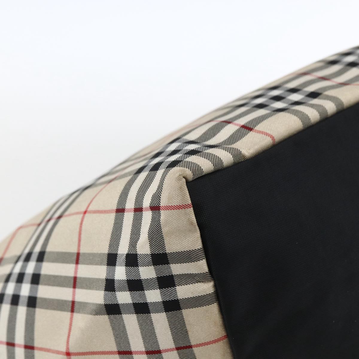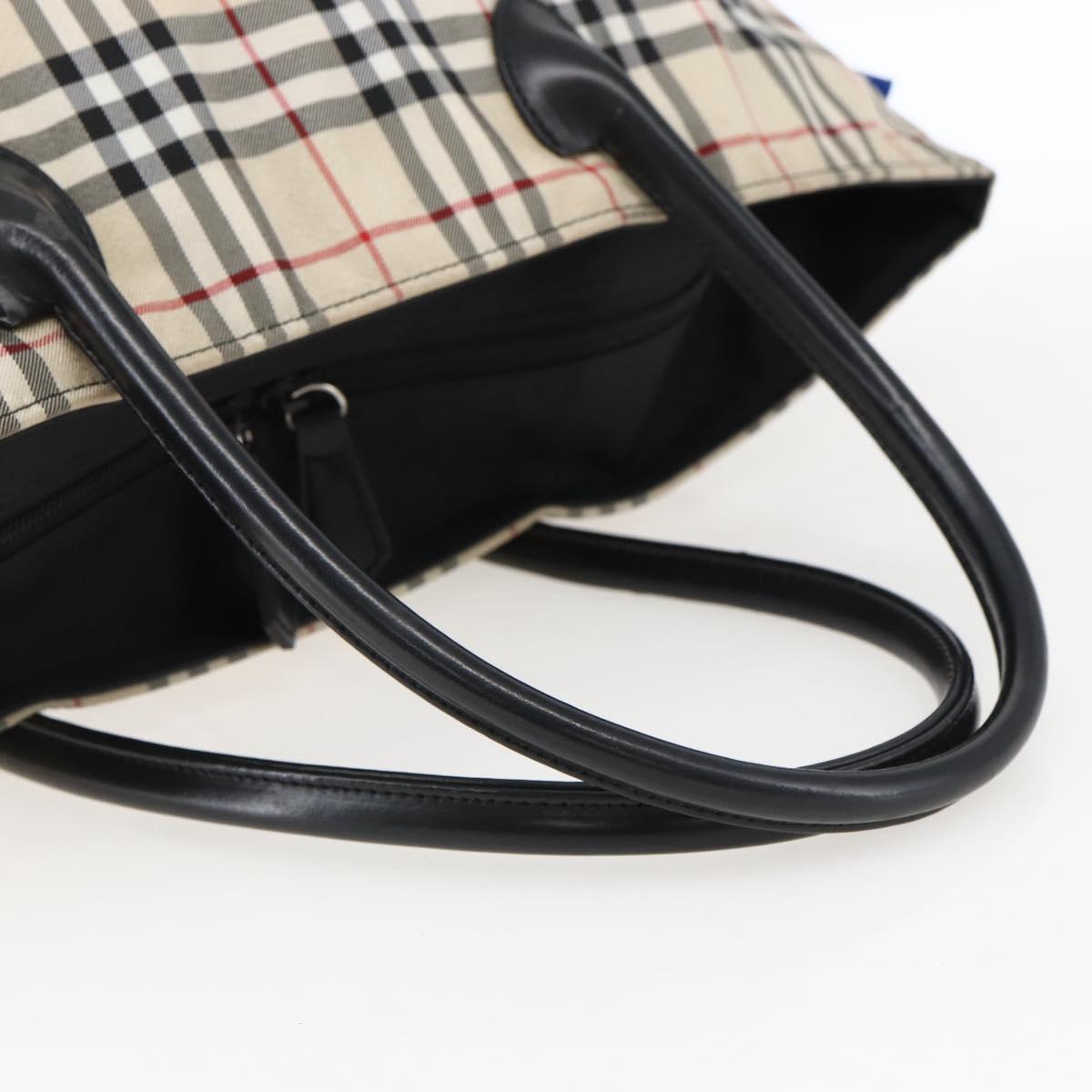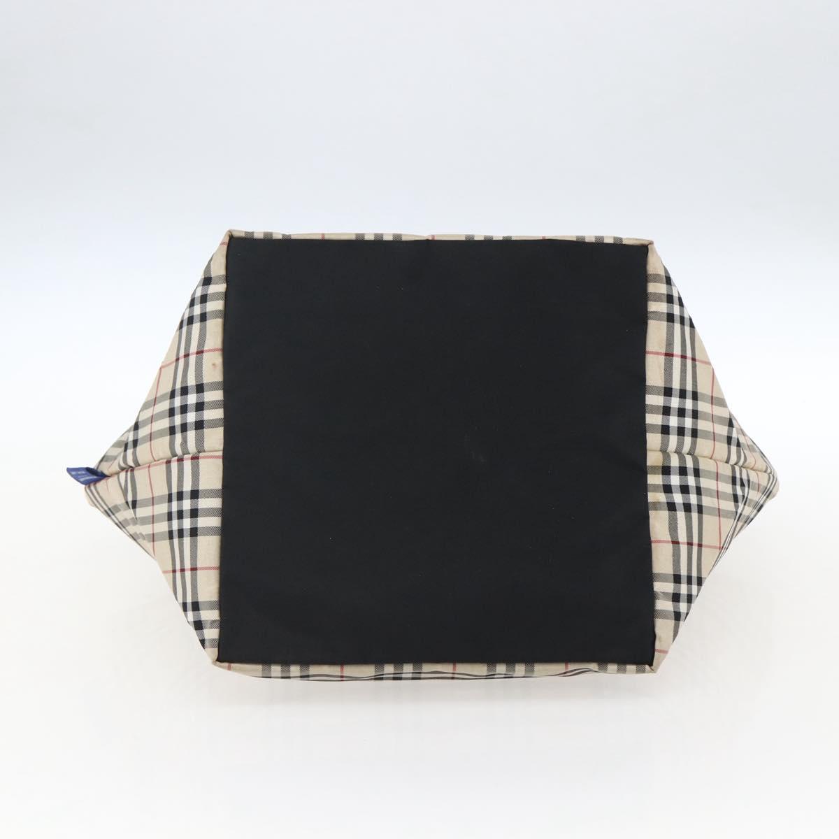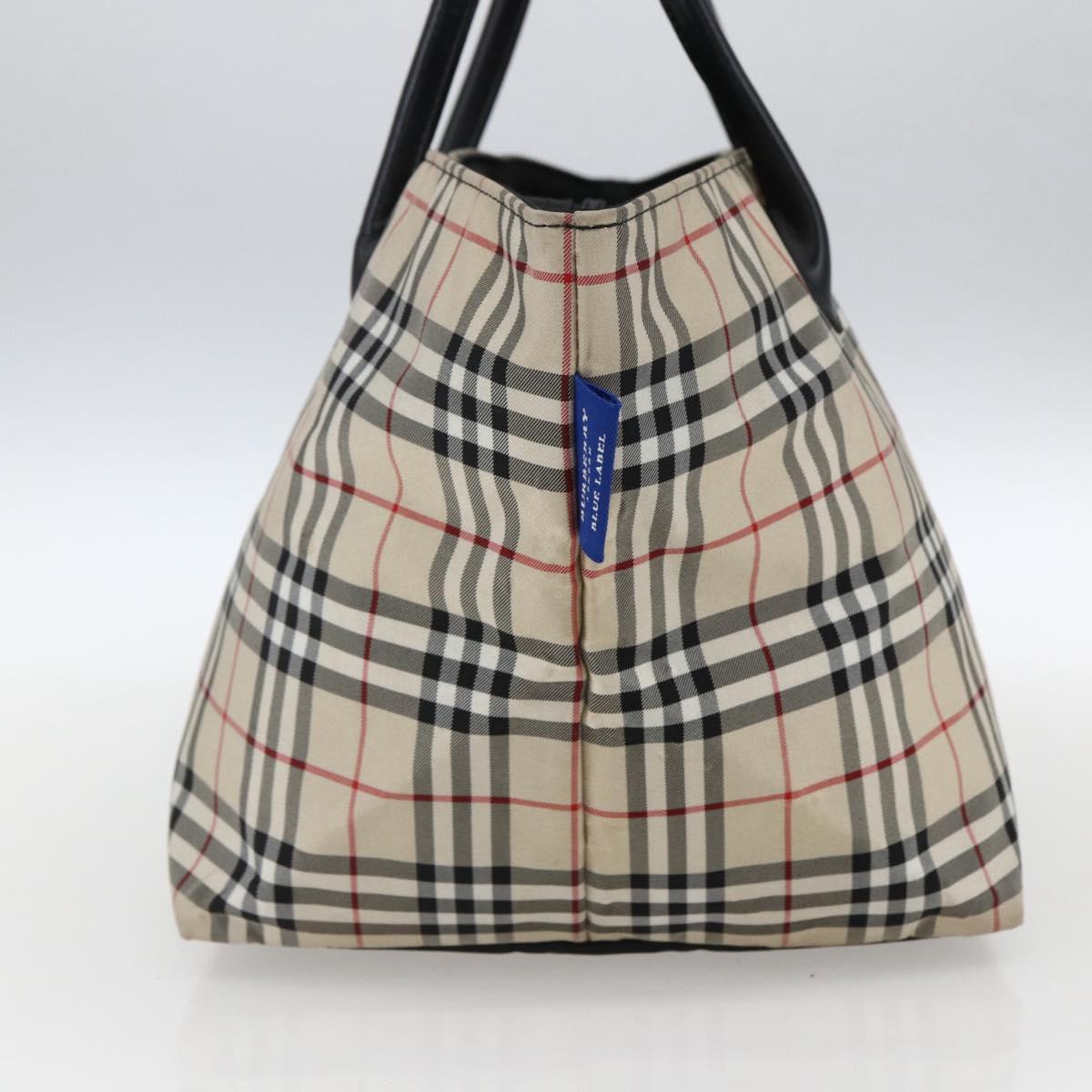 BURBERRY Nova Check Blue Label Hand Bag Nylon Beige Silver Auth fm5216