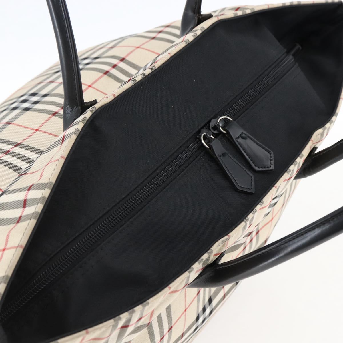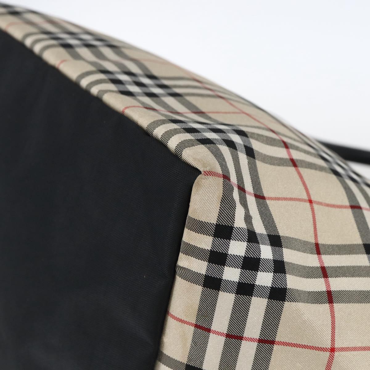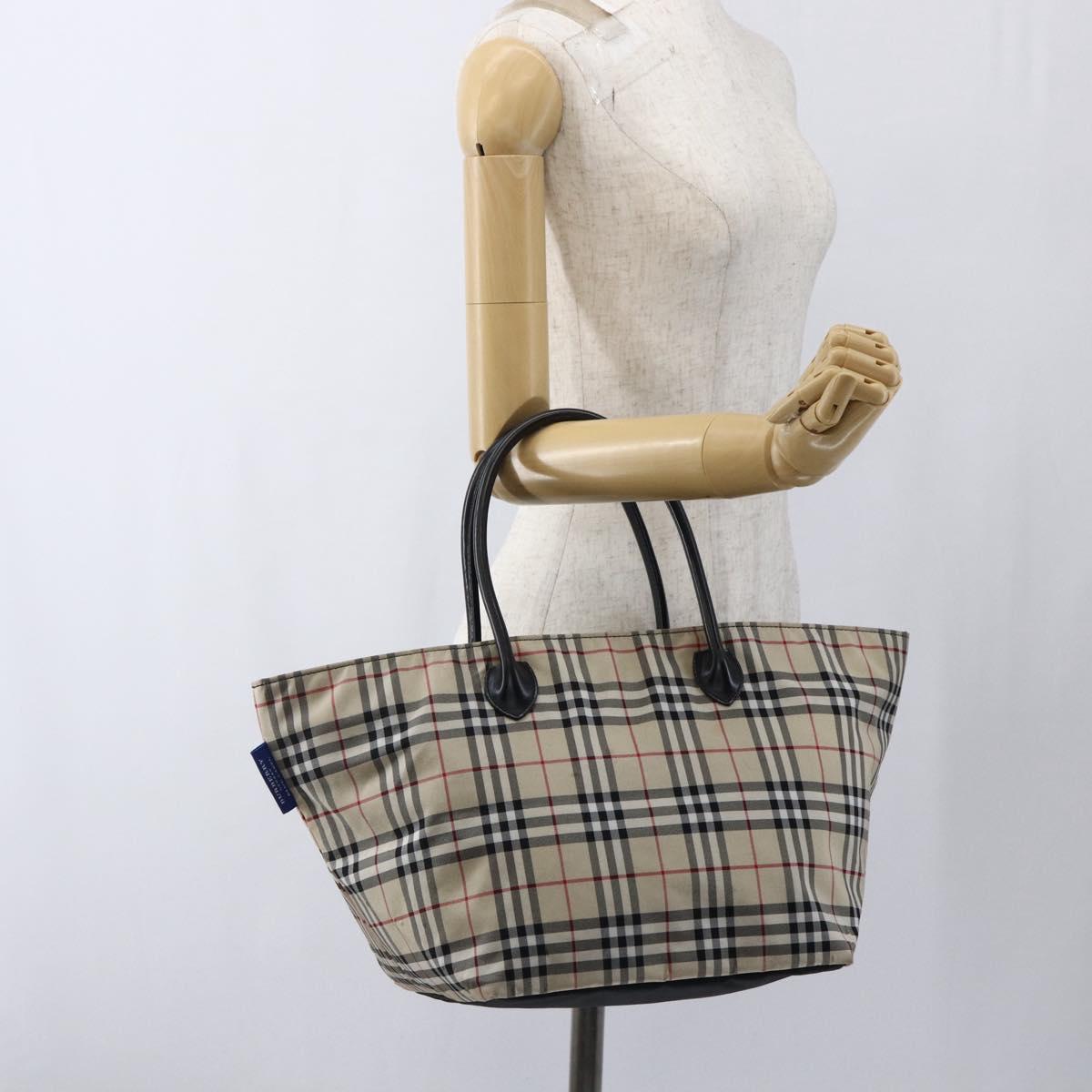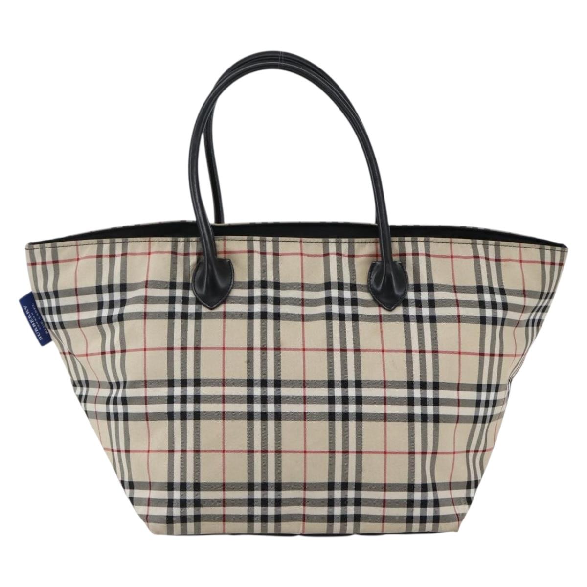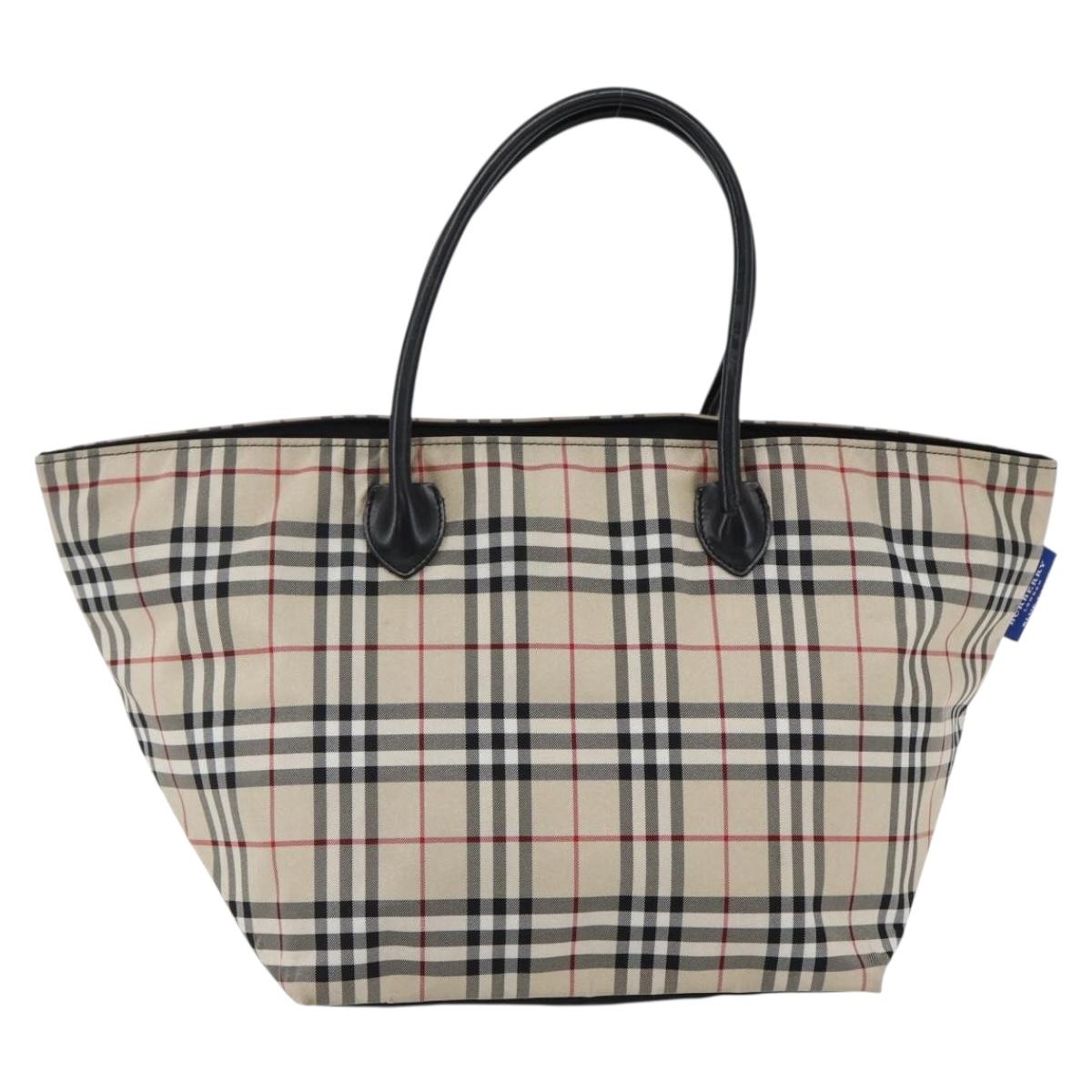 BURBERRY Nova Check Blue Label Hand Bag Nylon Beige Silver Auth fm5216