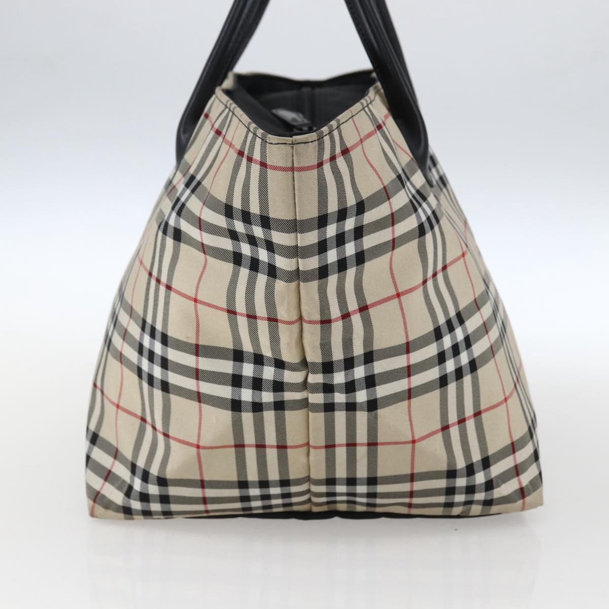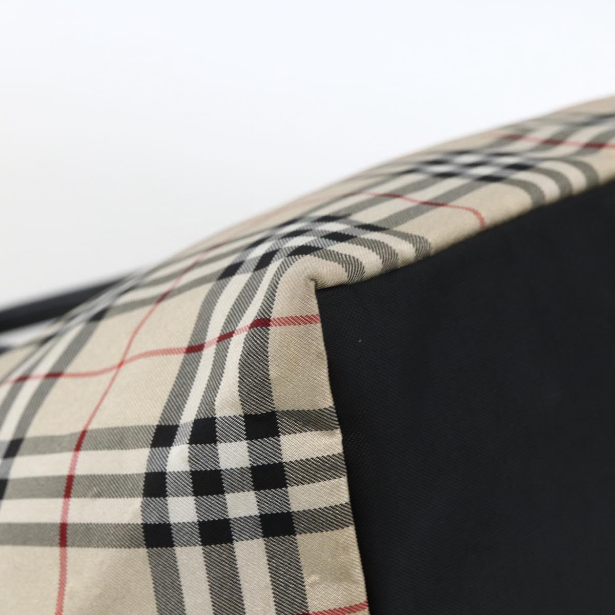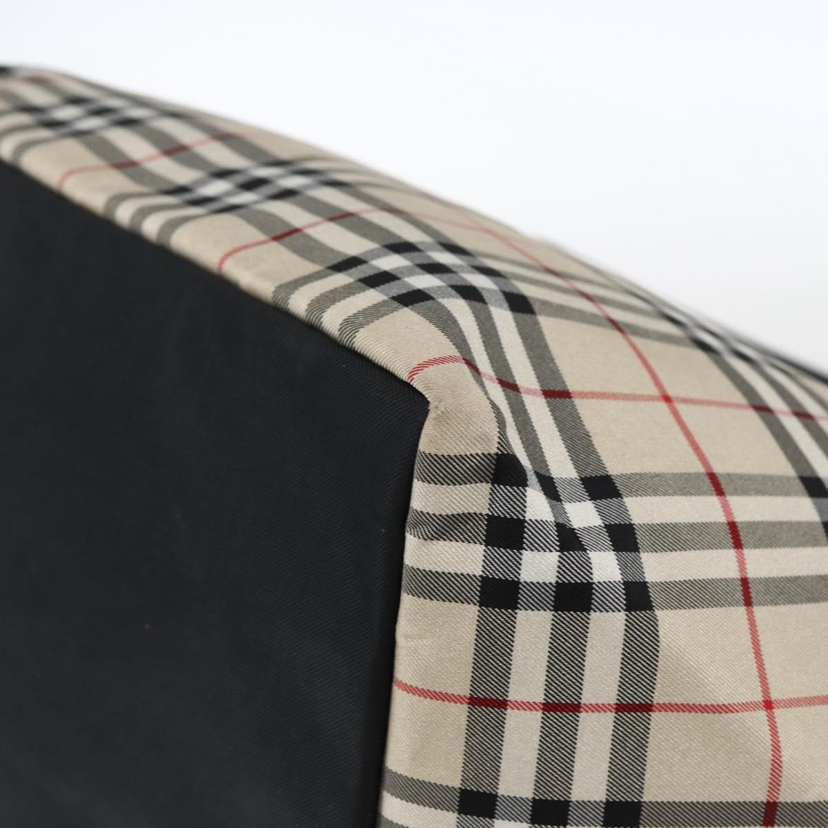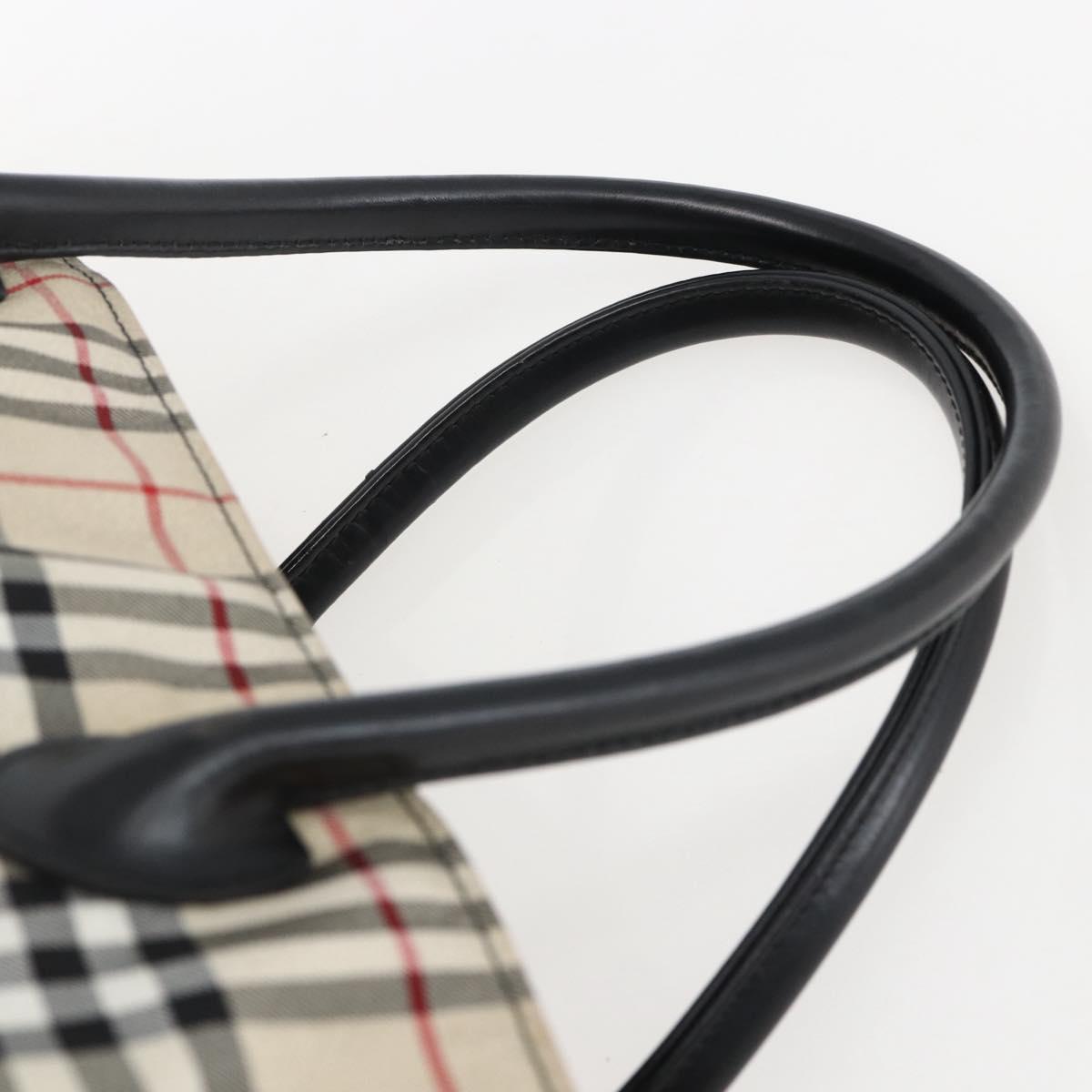 BURBERRY Nova Check Blue Label Hand Bag Nylon Beige Silver Auth fm5216