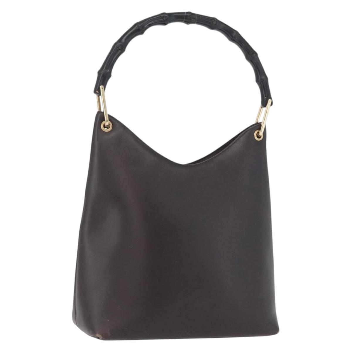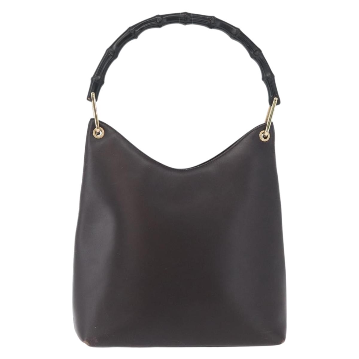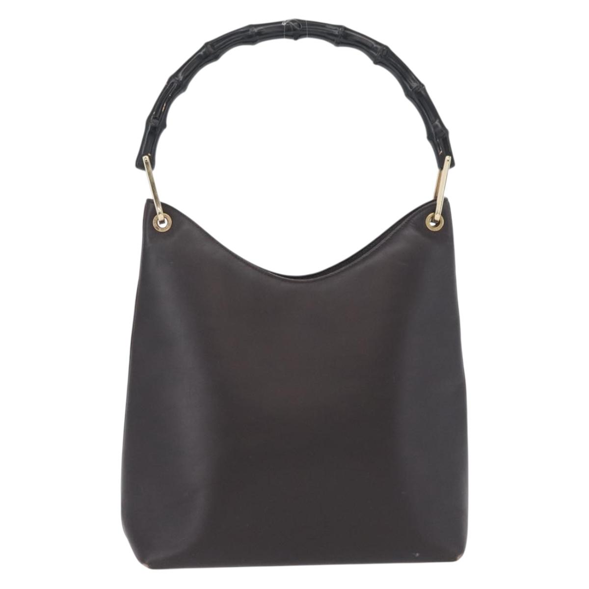 GUCCI GG Canvas Bamboo Shoulder Bag Leather Brown Gold 001 3007 Auth 172905