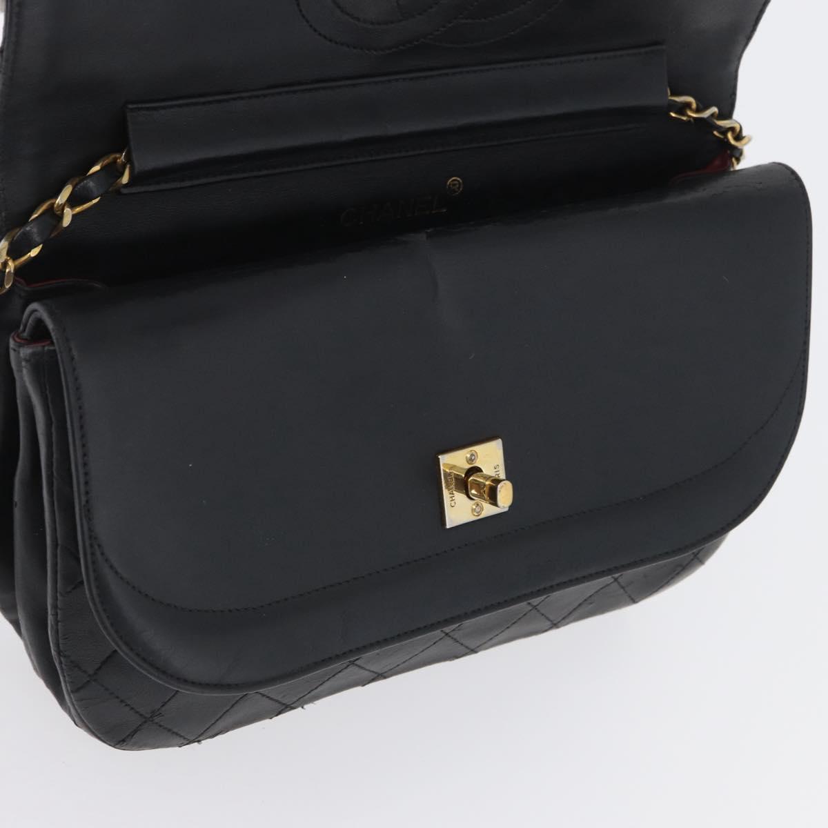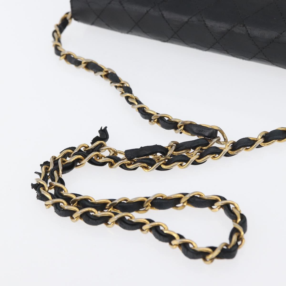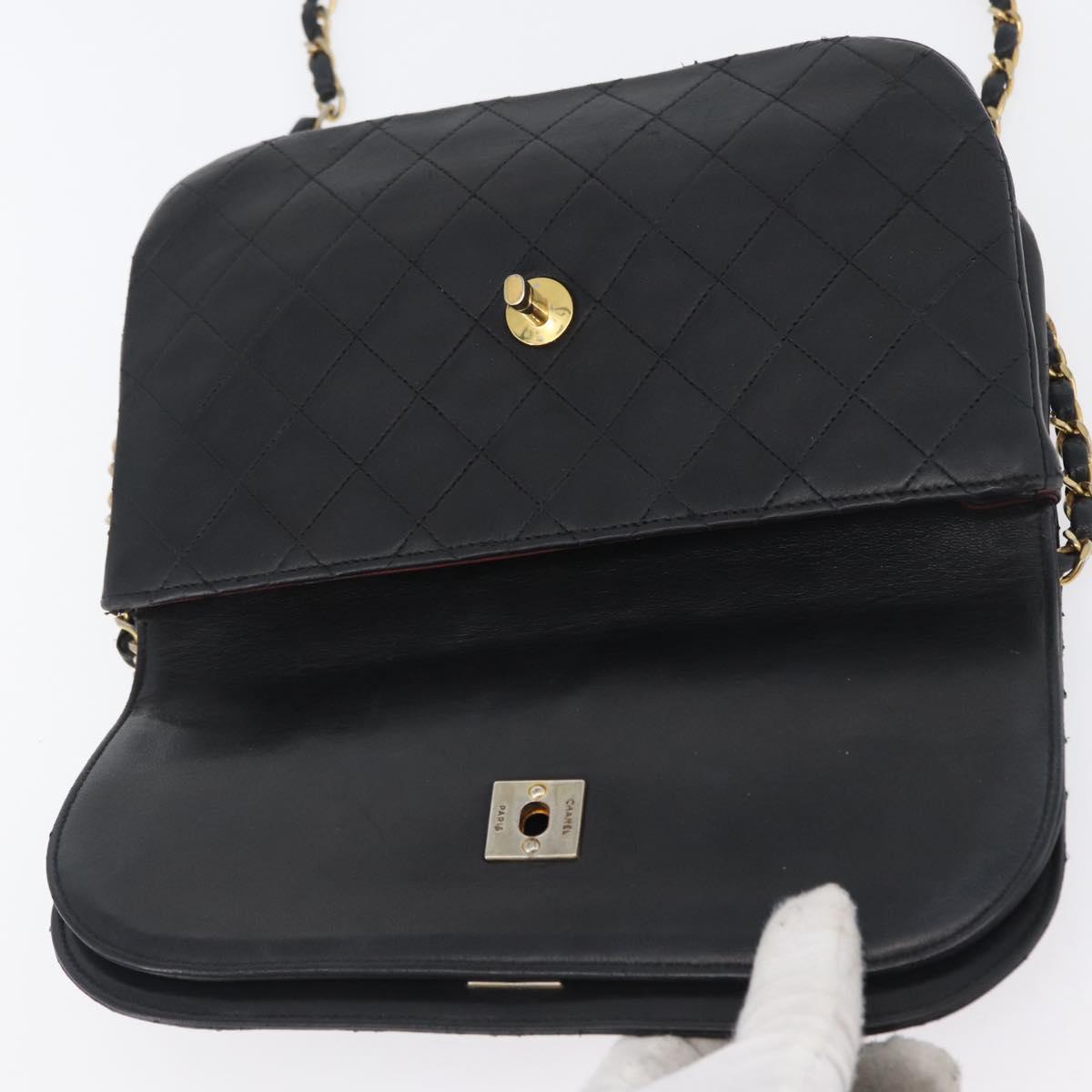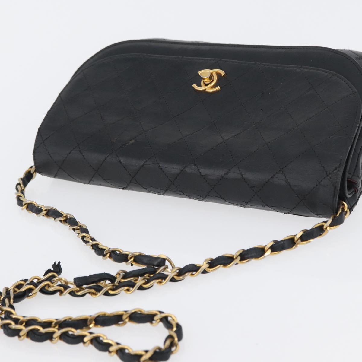 CHANEL Matelasse Chain Shoulder Bag Lamb Skin Black Gold CC Auth bs33642