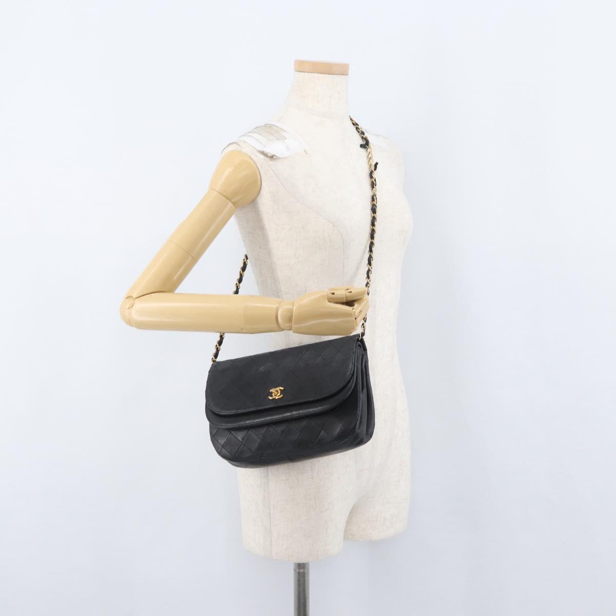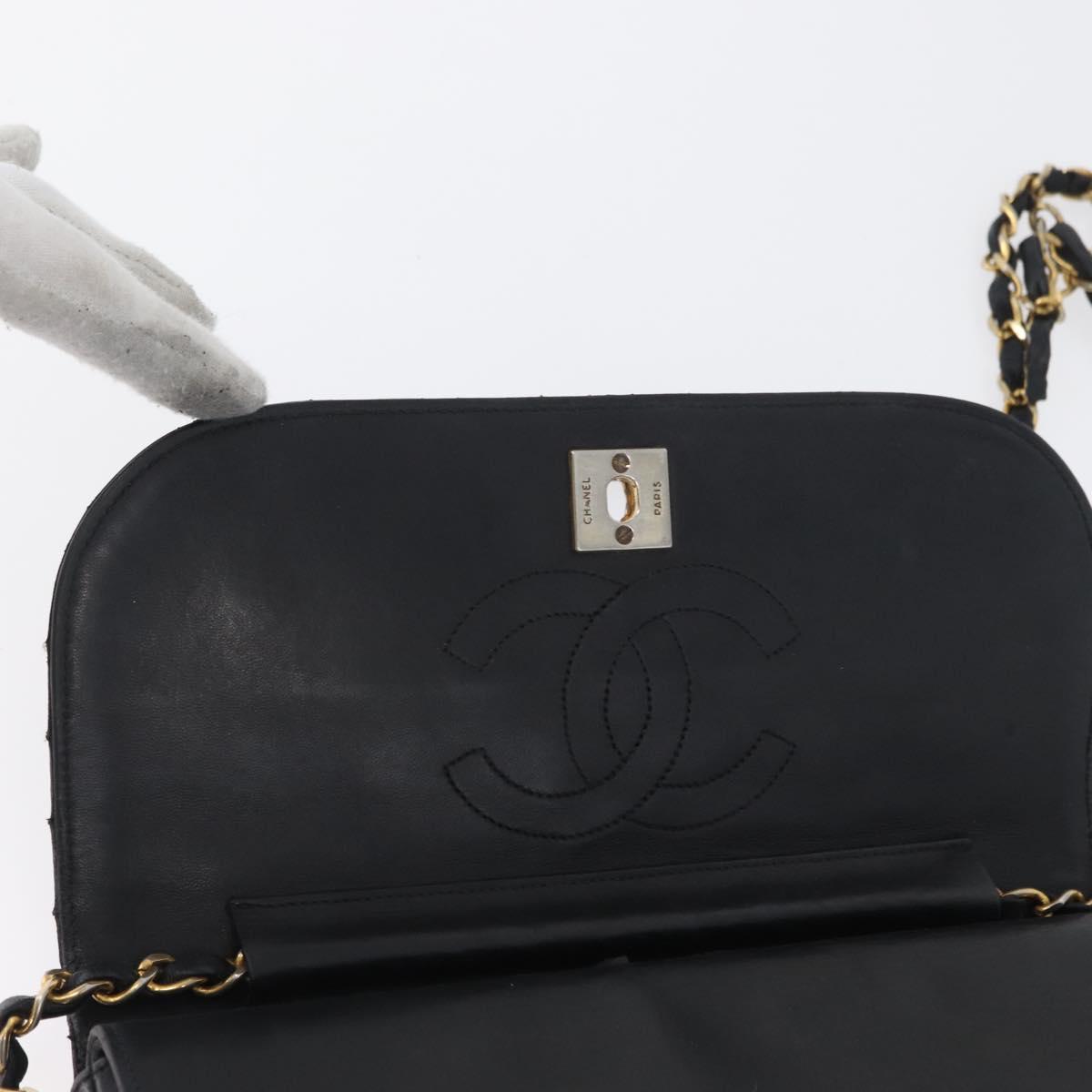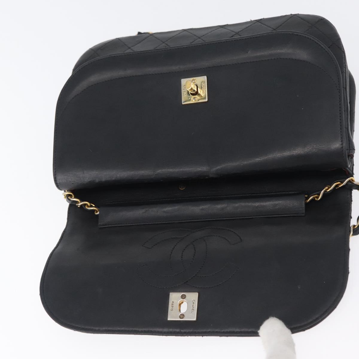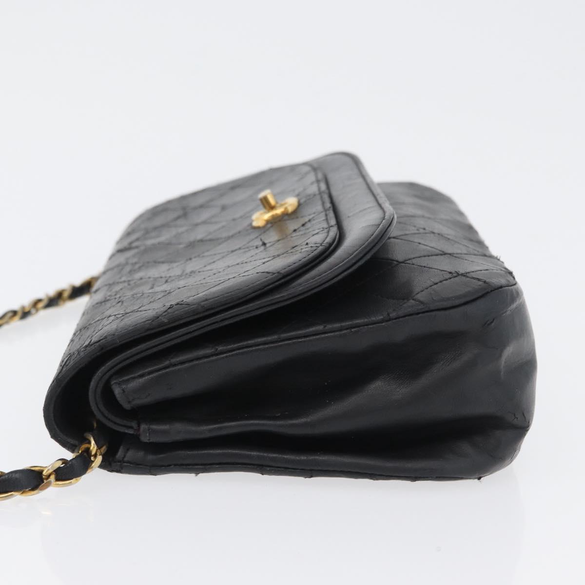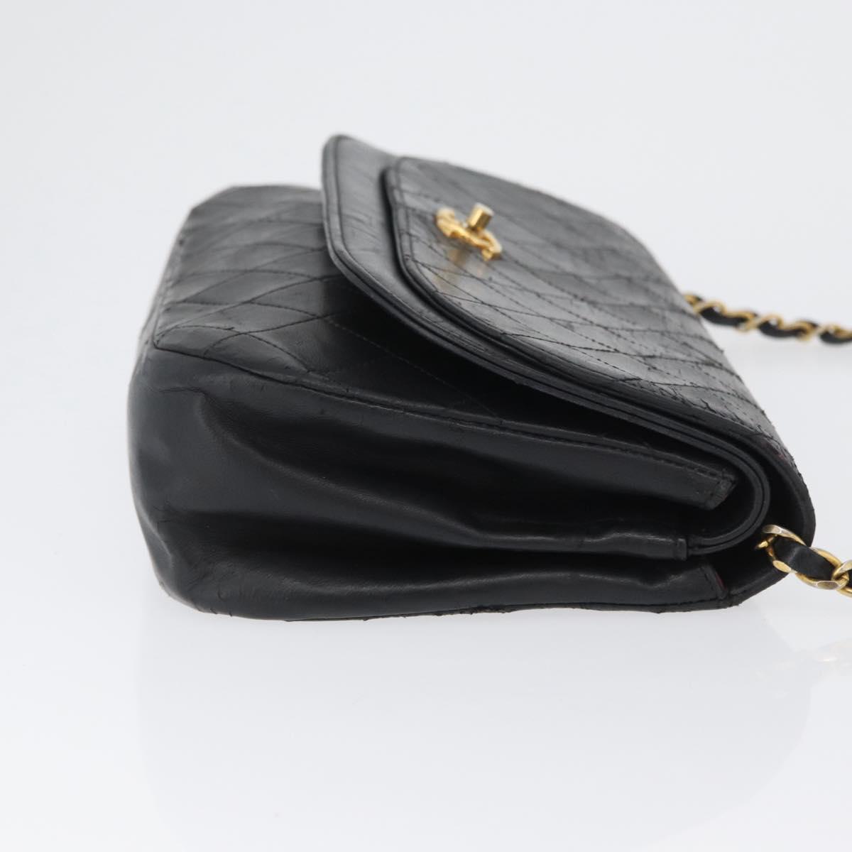 CHANEL Matelasse Chain Shoulder Bag Lamb Skin Black Gold CC Auth bs33642
