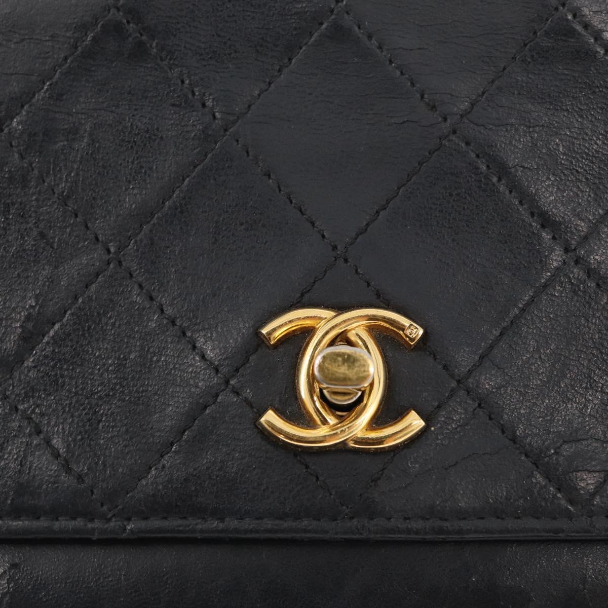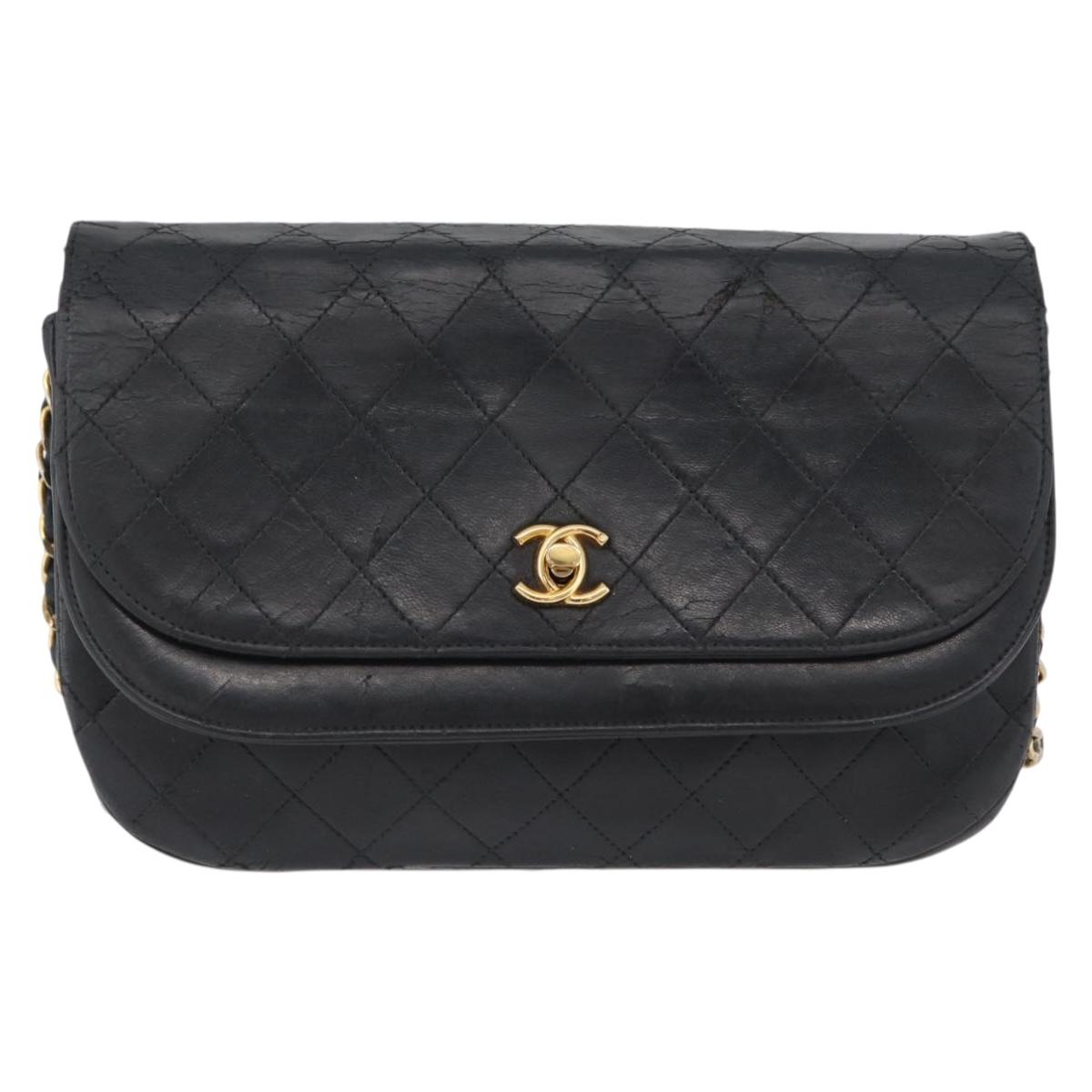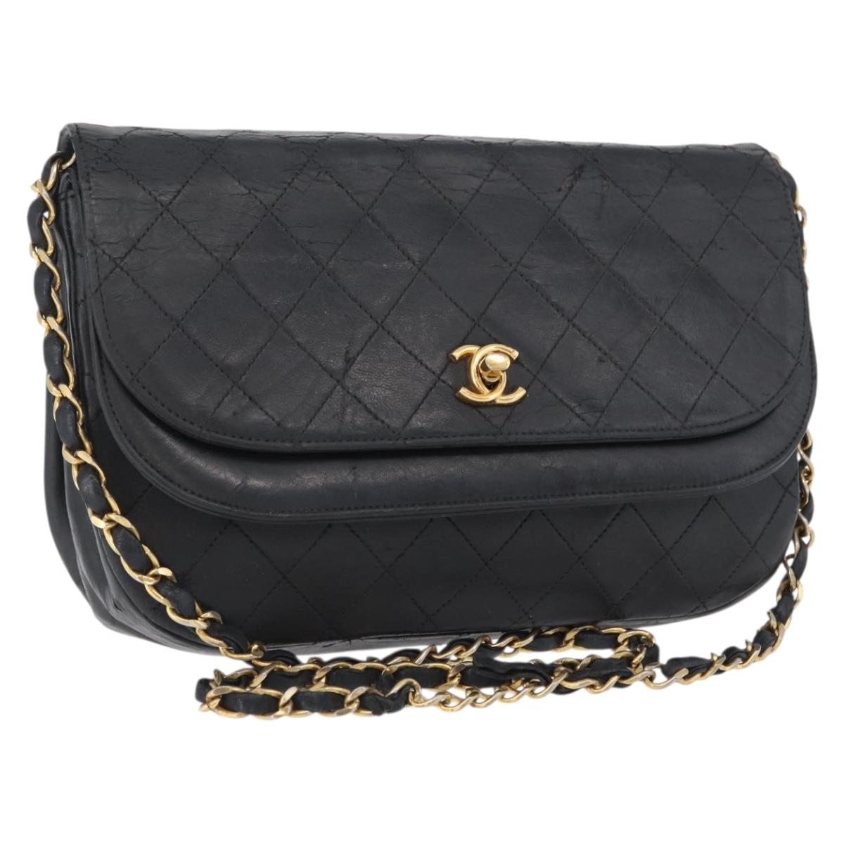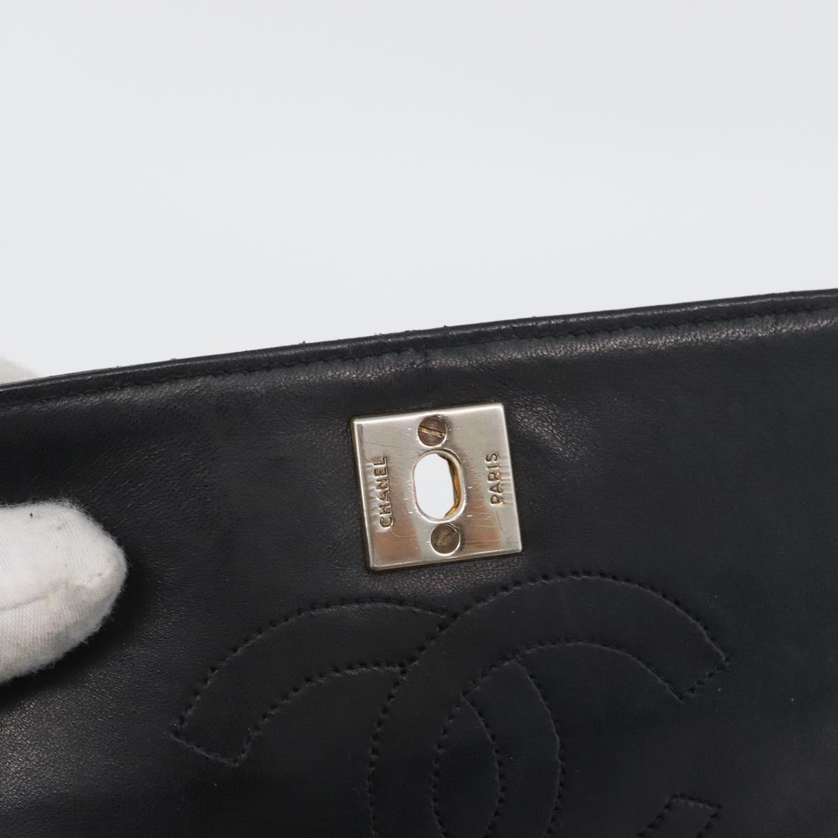 CHANEL Matelasse Chain Shoulder Bag Lamb Skin Black Gold CC Auth bs33642