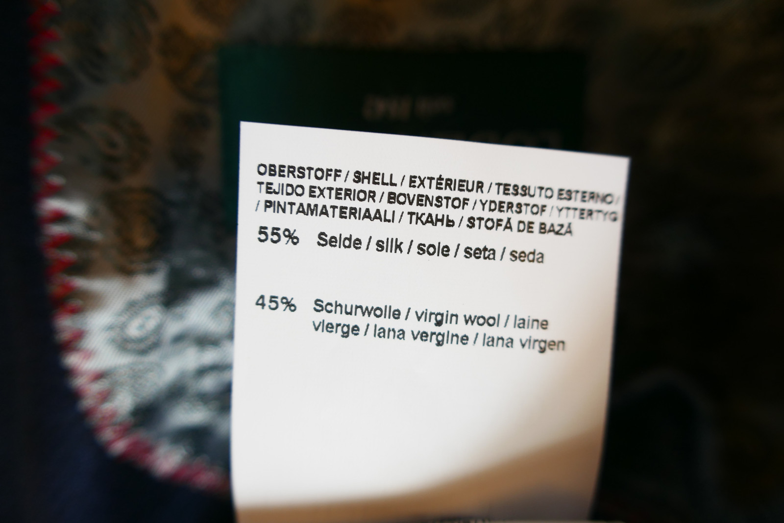 Material: 55% Seide + 45% Schurwolle. Feinstes Material, leichter Stoff und sehr angenehm zu tragen!