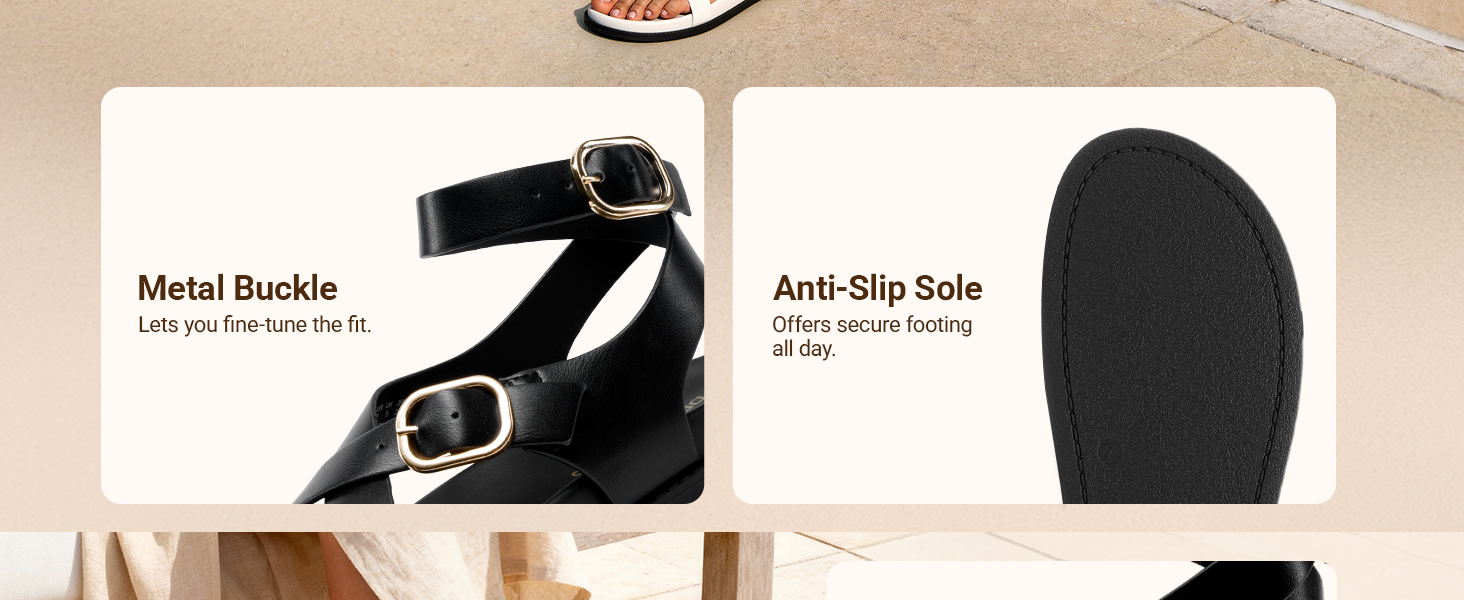 Minimal Chic Style: Cross straps, thong design, and square buckles elevate everyday outfits.