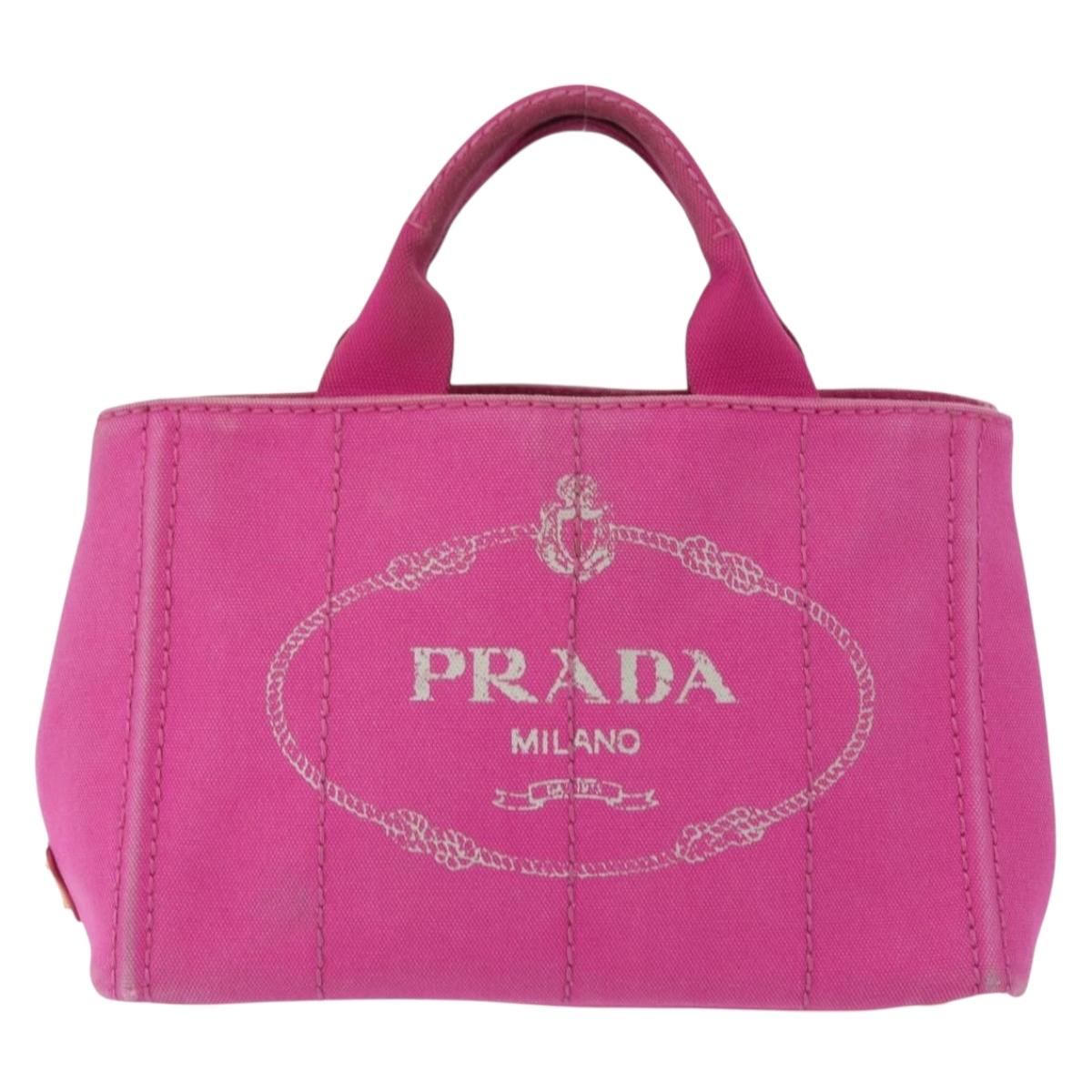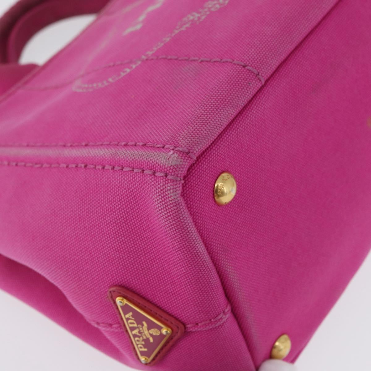 PRADA Canapa PM Hand Bag Canvas Pink Gold Auth 172879