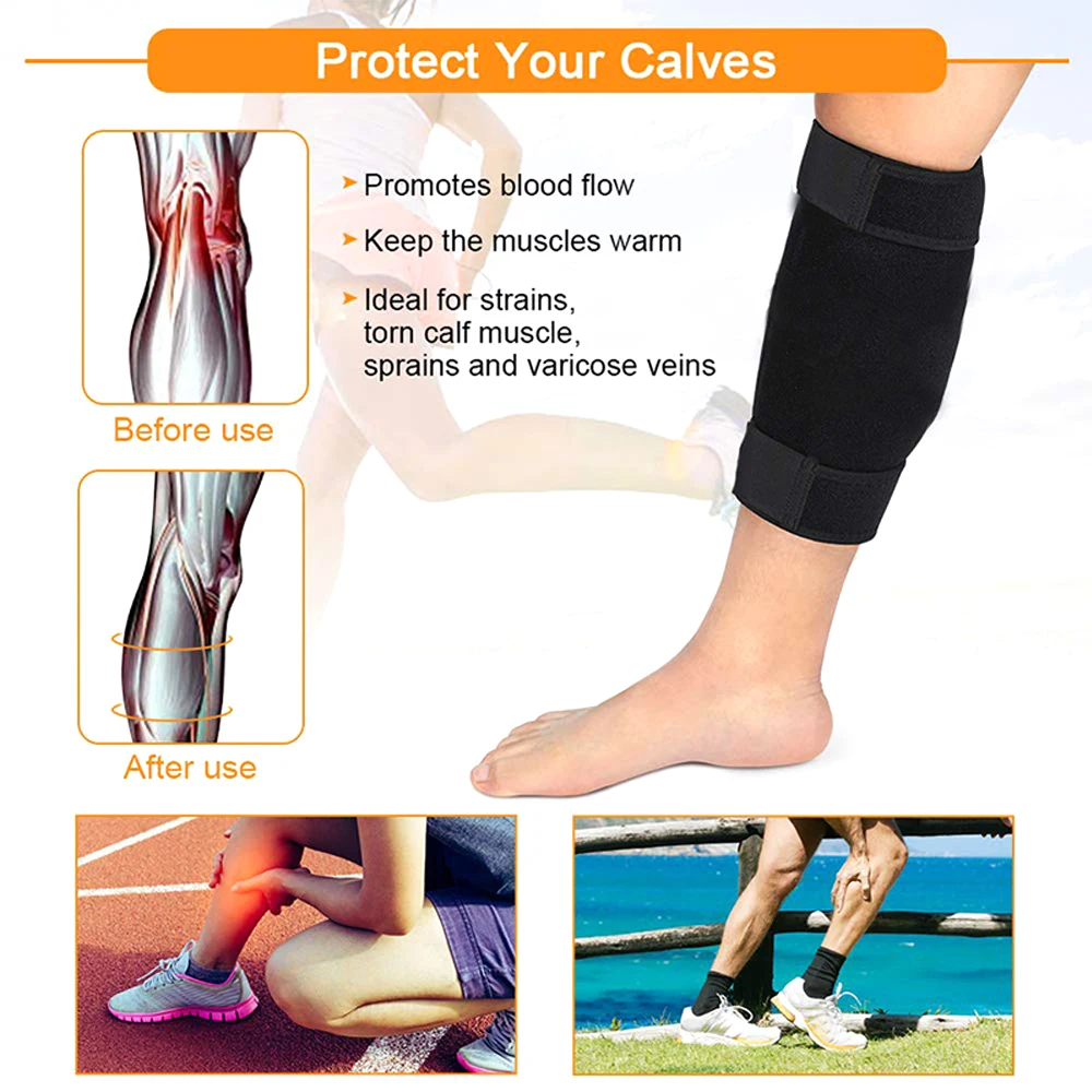 Use this calf brace wrap on the injured area for treatment of common muscle and injuries, and for relief from pain and swelling, great for shin splints, calf bruises and all types of calf injuries and it is a great support to soothe soreness caused by chronic pain due to overuse