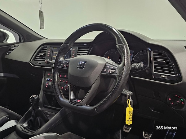We are pleased to offer this Seat Leon Cupra 290 finished in White. A stunning example with excellent specification including Cruise Control, LED Headlights, Parking Sensors, Heated Front Seats, Apple Carplay, Android Auto and much more. Specification CUPRA Bucket Seats (Alcantara) Nevada White Metallic 19" CUPRA Alloys Navigation System Technology Pack Full LED Headlights CUPRA Black-Line Pack Parking Sensors (Front & Rear) Dark Tinted Rear Windows Electrically Folding Mirrors CUPRA Drive Profile Alcantara CUPRA Steering Wheel Convenience Pack Plus Service & Maintenance: Service history present Fresh oil change just completed Full MOT included Tyres in great condition Additional Information: All HPI Clear Comes with 3-Month Warranty as standard (extendable to 36 months) Low-rate finance packages available Part exchange welcome Please be advised that cosmetic defects and normal wear and tear, such as minor scratches or stone chips, may be present on any vehicle. All information and specifications have been provided to the best of our knowledge. We recommend confirming the listed specifications with a sales representative. Please call our lovely sales team to book a viewing or test drive on . Alternatively, visit our website for more photos, finance applications and access to our live chat system..CUPRA Bucket Seats - Alcantara with Simil Leather Bolsters - Black with White Accents, Nevada White, 12 Volt Power Supply in Centre Console, 19in Alloy Wheels - CUPRA 290 Multi-Spoke, 3.5in Drivers Display, ABS - Anti-Lock Braking System and TCS Traction Control System with De-activation, Active Front Head Restraints, Additional Heating-Ventilation Outlet in Rear Centre Console, Alarm - Perimeter and Interior Monitoring with Back-up Horn and Tow-Away Protection, Aluminium Door Sill Trim with Cupra Logo, Ambient Spot Lighting and Footwell Illumination, Anti-Theft Roof Antenna, Auto-Dimming Rear View Mirror, Auto-Headlights, Automatic Warning Lights, Black CUPRA Tailgate Lettering, Black Exterior Mouldings and Frames, Black Interior Dashboard Detailing, Black Interior Decorative Mouldings, Bluetooth Phone Connection, Body-Coloured Door Handles, Brake Callipers - Red with Cupra Logo, Bumpers - Exclusive Cupra Front and Rear, CUPRA Black-Line Pack, Cargo Rings in the Boot, Child Locks on Rear Doors, Convenience Pack Plus, Cruise Control, Cupholders - Front Centre Console x2, DCC - Dynamic Chassis Control, Dark Tinted Rear Windows, Driver and Front Passenger Airbags, Driver and Passenger Sunvisor with Covered and Illuminated Mirrors, Drivers Knee Airbag, Dual Zone Climate Control, Dust and Pollen Filter, ESC - Electronic Stability Control with EBA - Emergency Brake Assist, ESC Switch-Off Key, Electric Windows - Front with One-Touch and Anti-Squeeze, Electric Windows - Rear with One Touch and Anti-Squeeze, Electrically Folding Door Mirrors, Electromechanical Progressive and Speed-Sensitive Power Steering, Electronic Engine Immobiliser, Exhaust Pipe - Dual, Front Armrest - Height and Reach Adjustable with Storage Compartment, Front Assist, Front Courtesy Light with Front and Rear Reading Lights, Front Grille Frame - Gloss Black, Front Passenger Airbag De-Activation, Front Side Airbags, Fuel Filler Flap linked to Central Locking, Full LED Headlights, Full Link, Gearshift Indicator, Gloss Black Door Mirrors with Integrated LED Indicators, Gloss Black Pillars, Head Restraints - Height Adjustable Front, Head Restraints - Height Adjustable Rear x3, Headlights - Automatic Range Adjustment, Height Adjustable Passenger Seat, Height and Reach Adjustable Steering Wheel, Height-Adjustable Drivers Seat, Hill Hold Control, ISOFIX Points in Outer Rear Seats with Top Tether Anchorage Points, Illuminated Boot, Instrument Lighting with Brightness Control, Interior Ambient Lightin