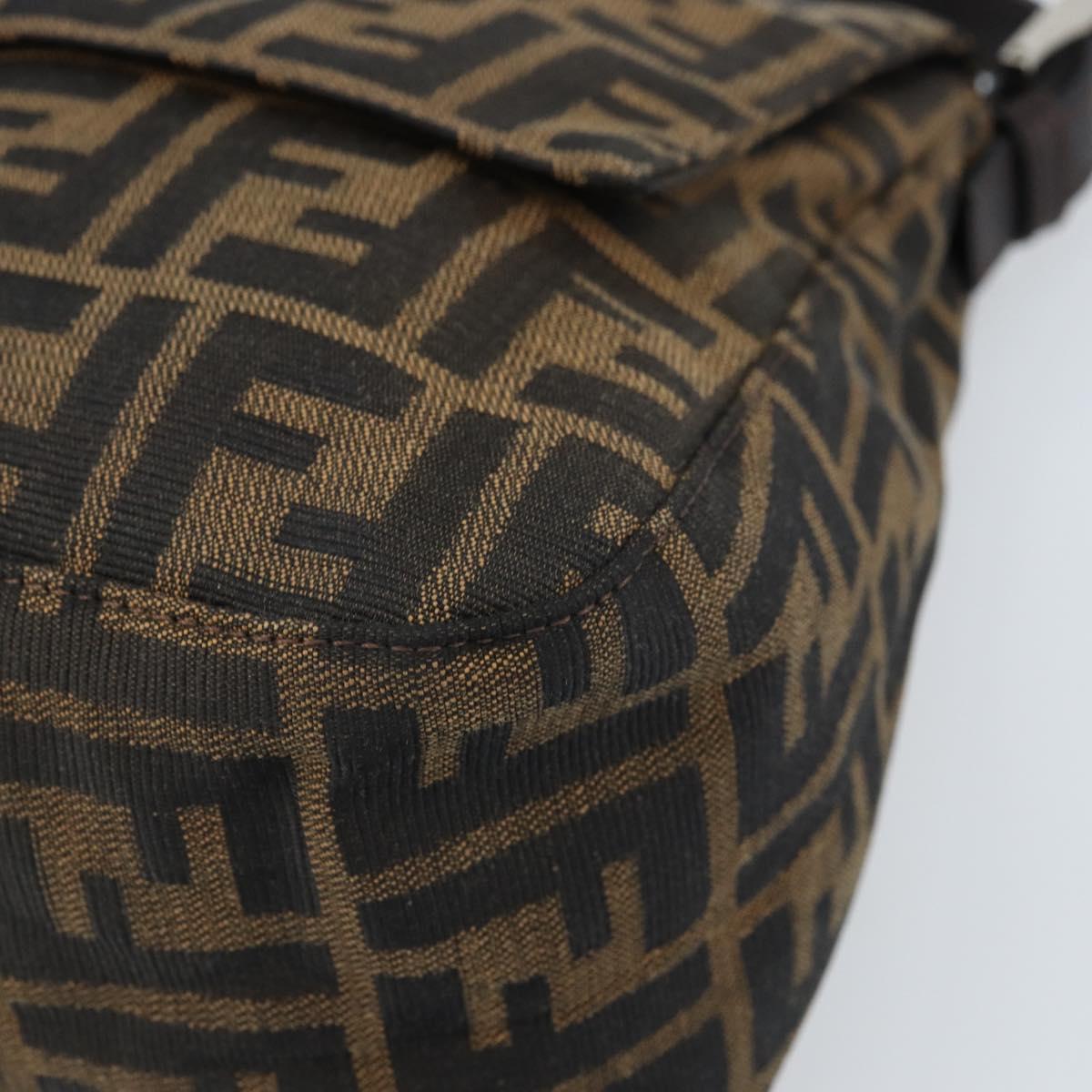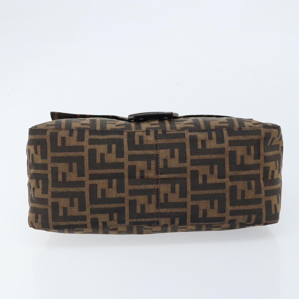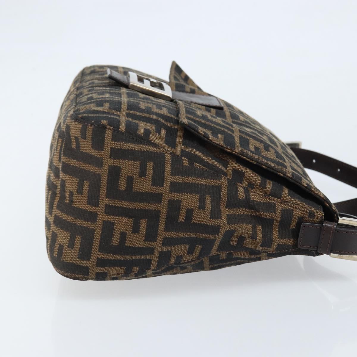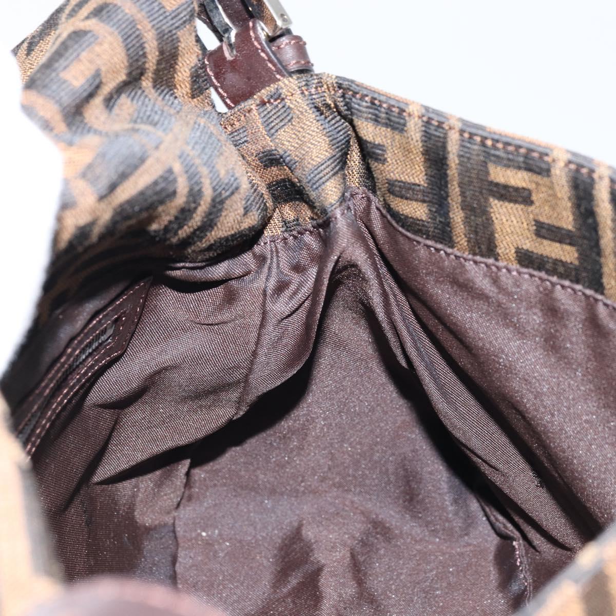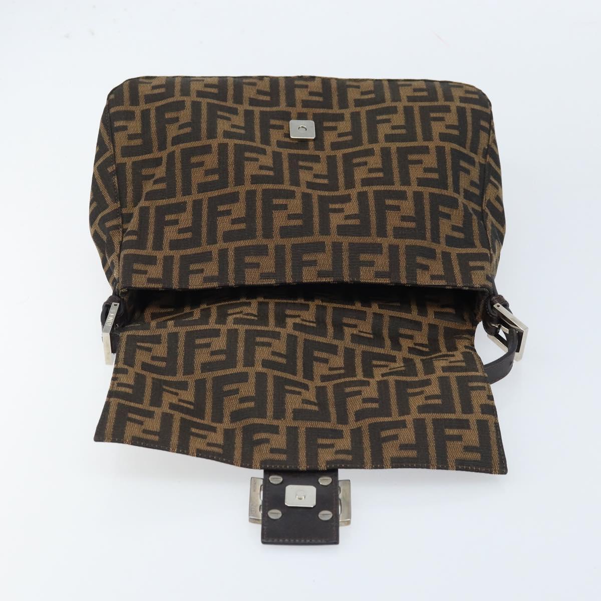 FENDI Zucca Canvas Mamma Baguette Shoulder Bag Brown Black Silver Auth ki6566SAV