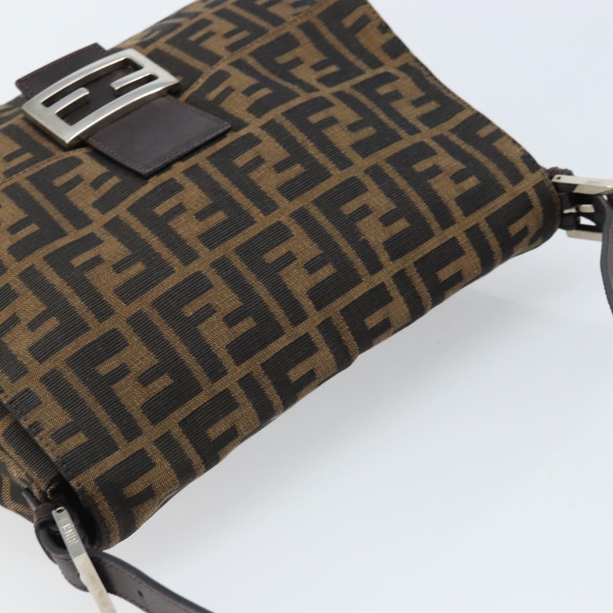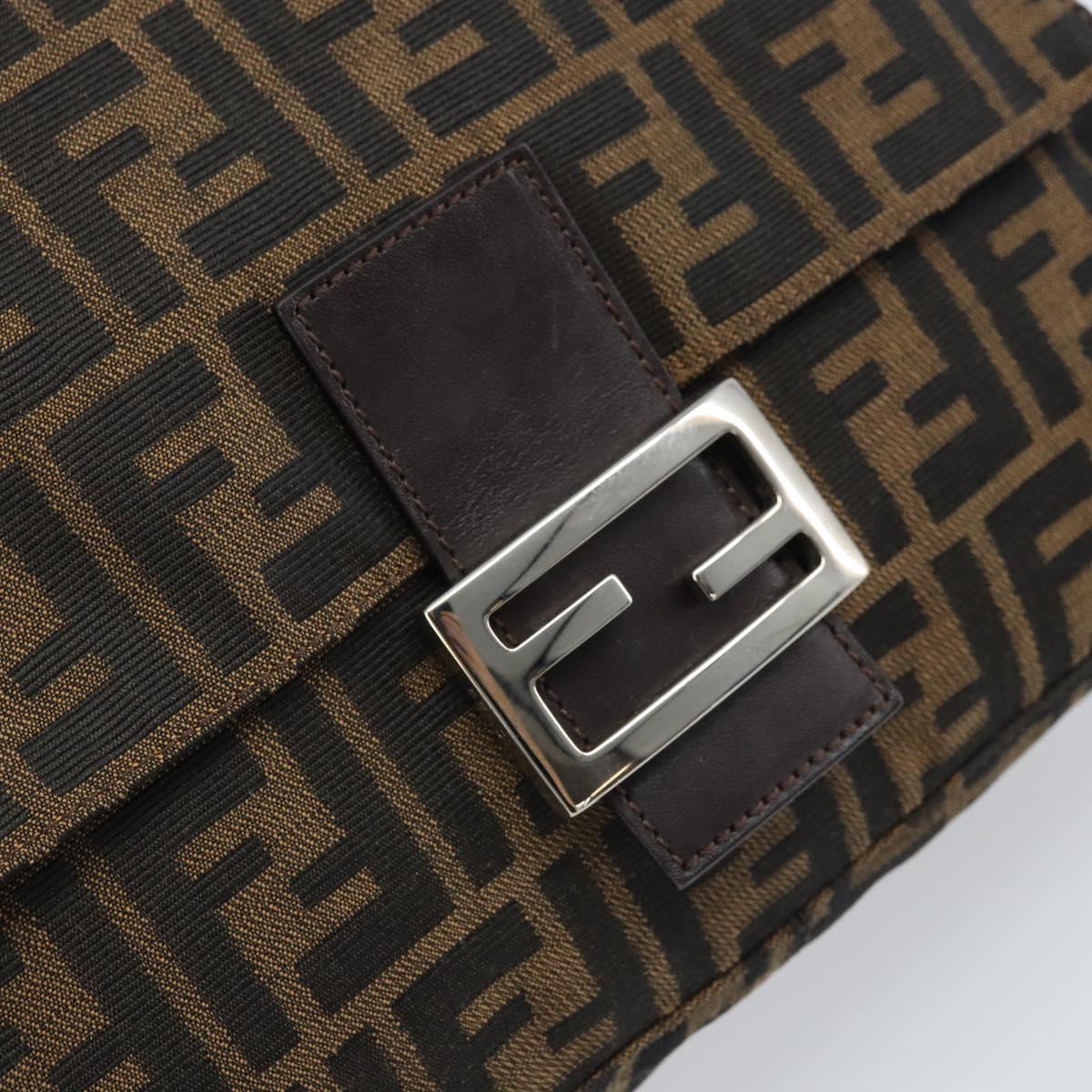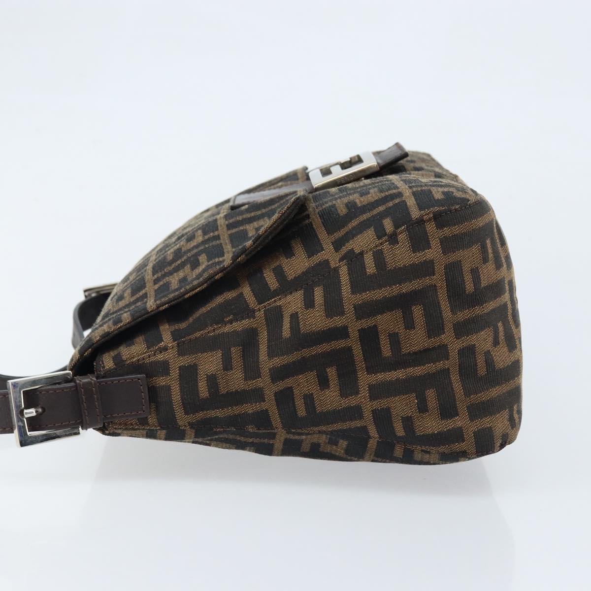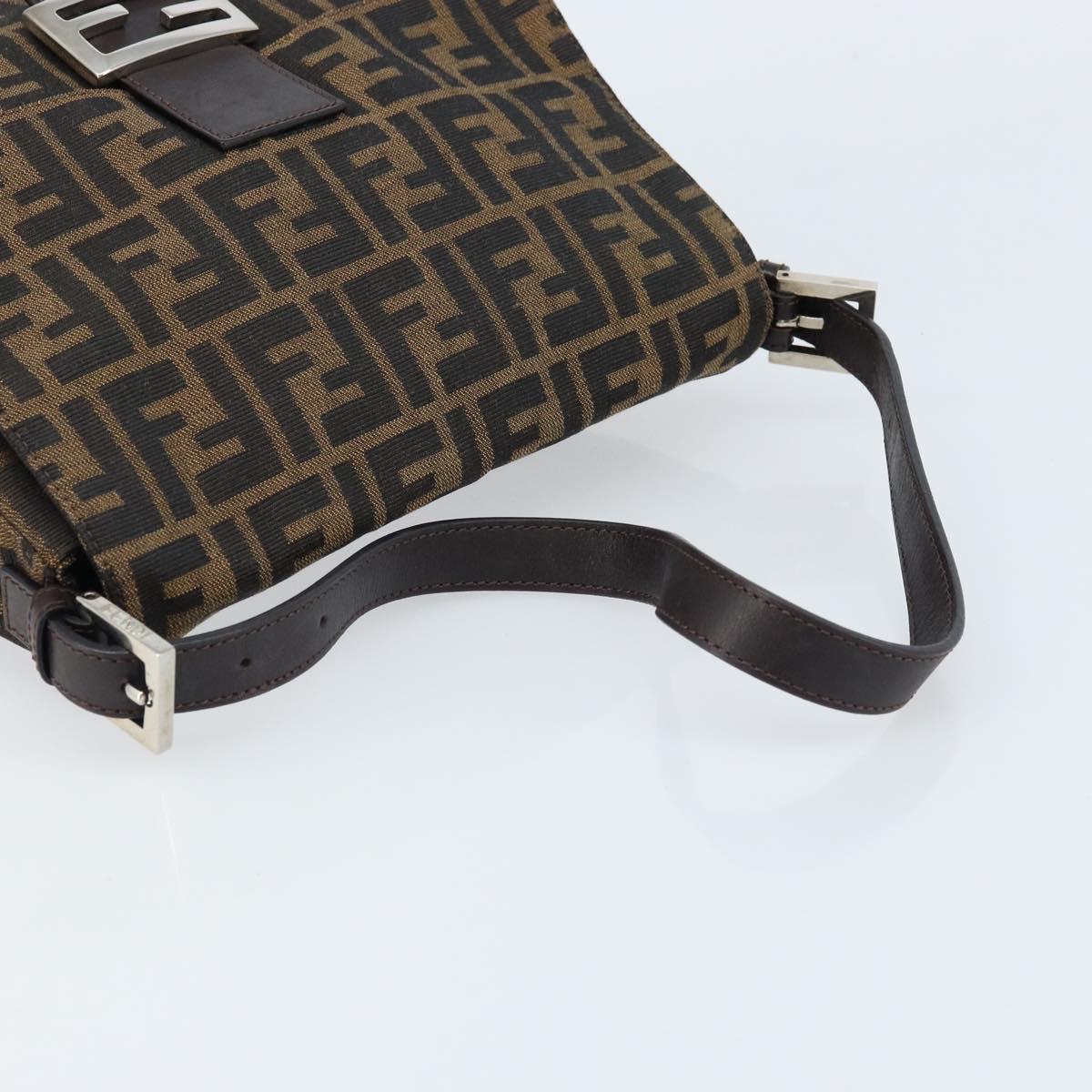 FENDI Zucca Canvas Mamma Baguette Shoulder Bag Brown Black Silver Auth ki6566SAV