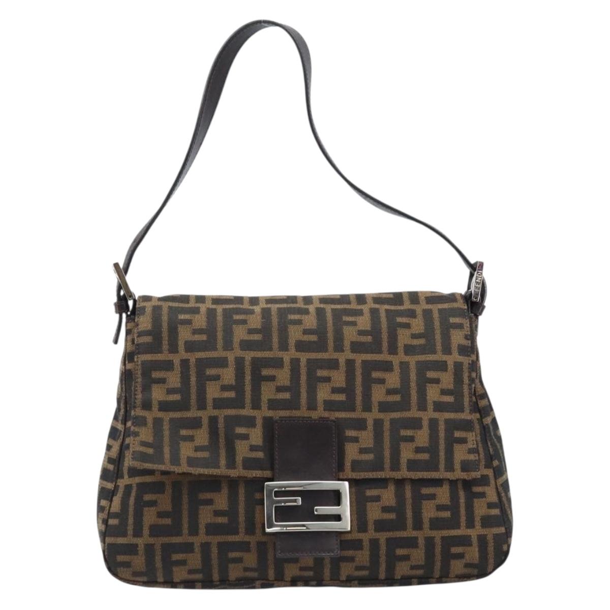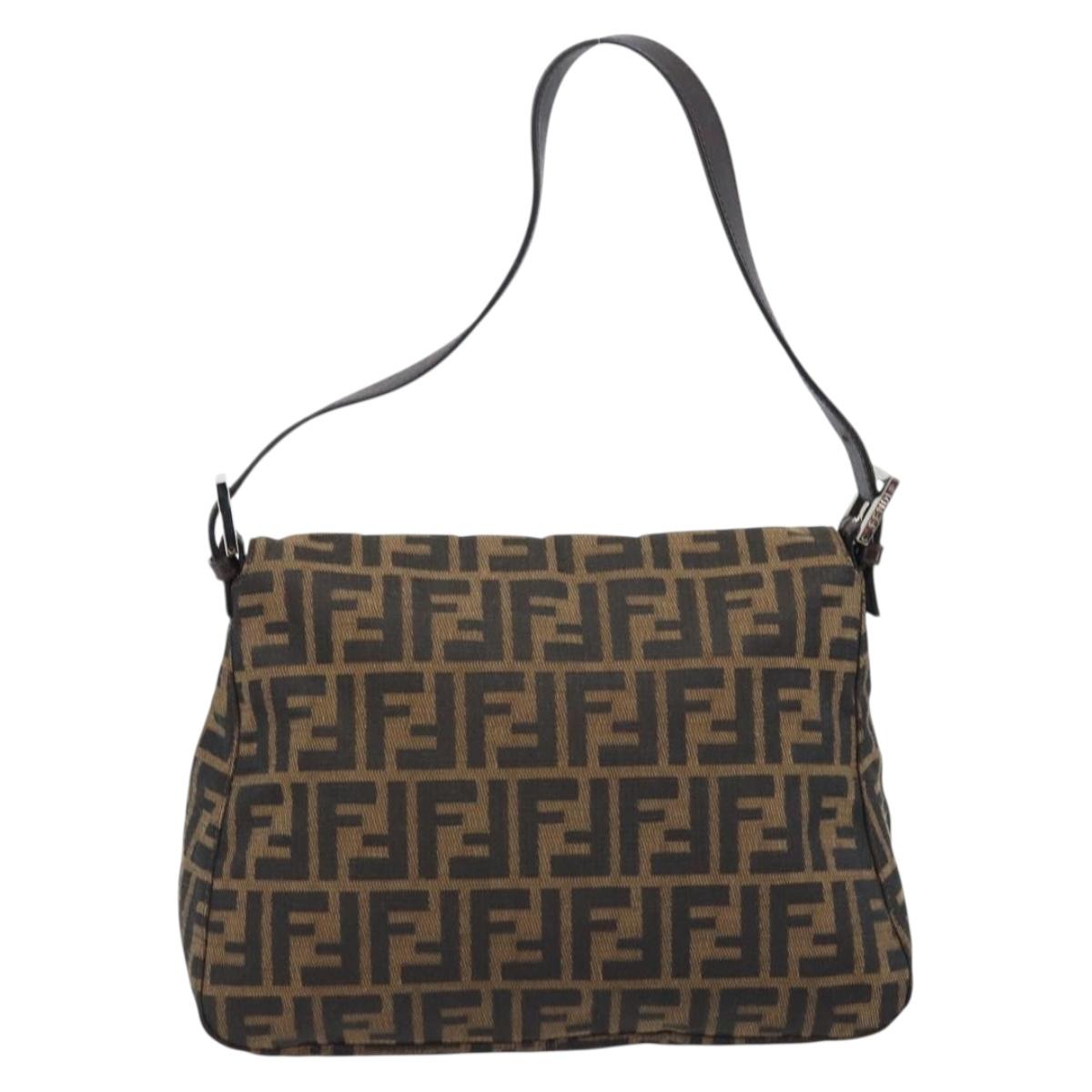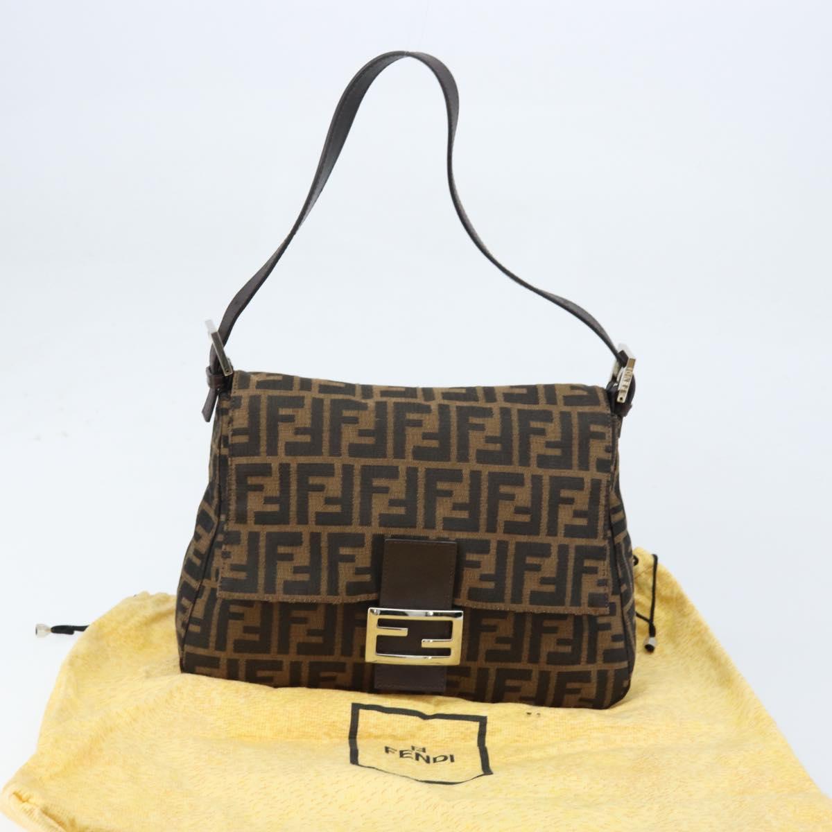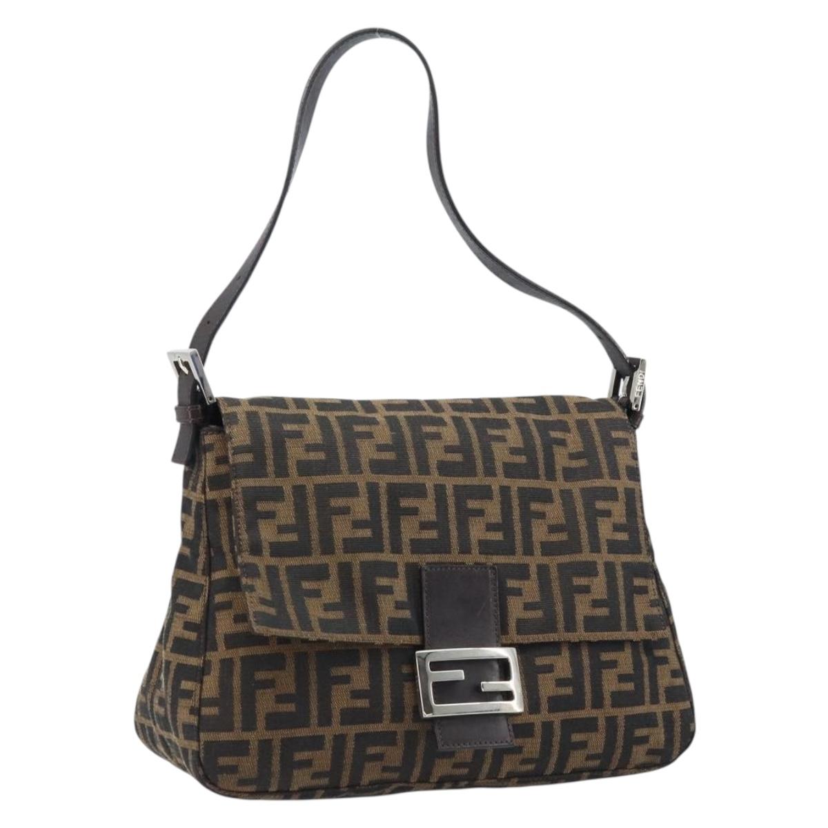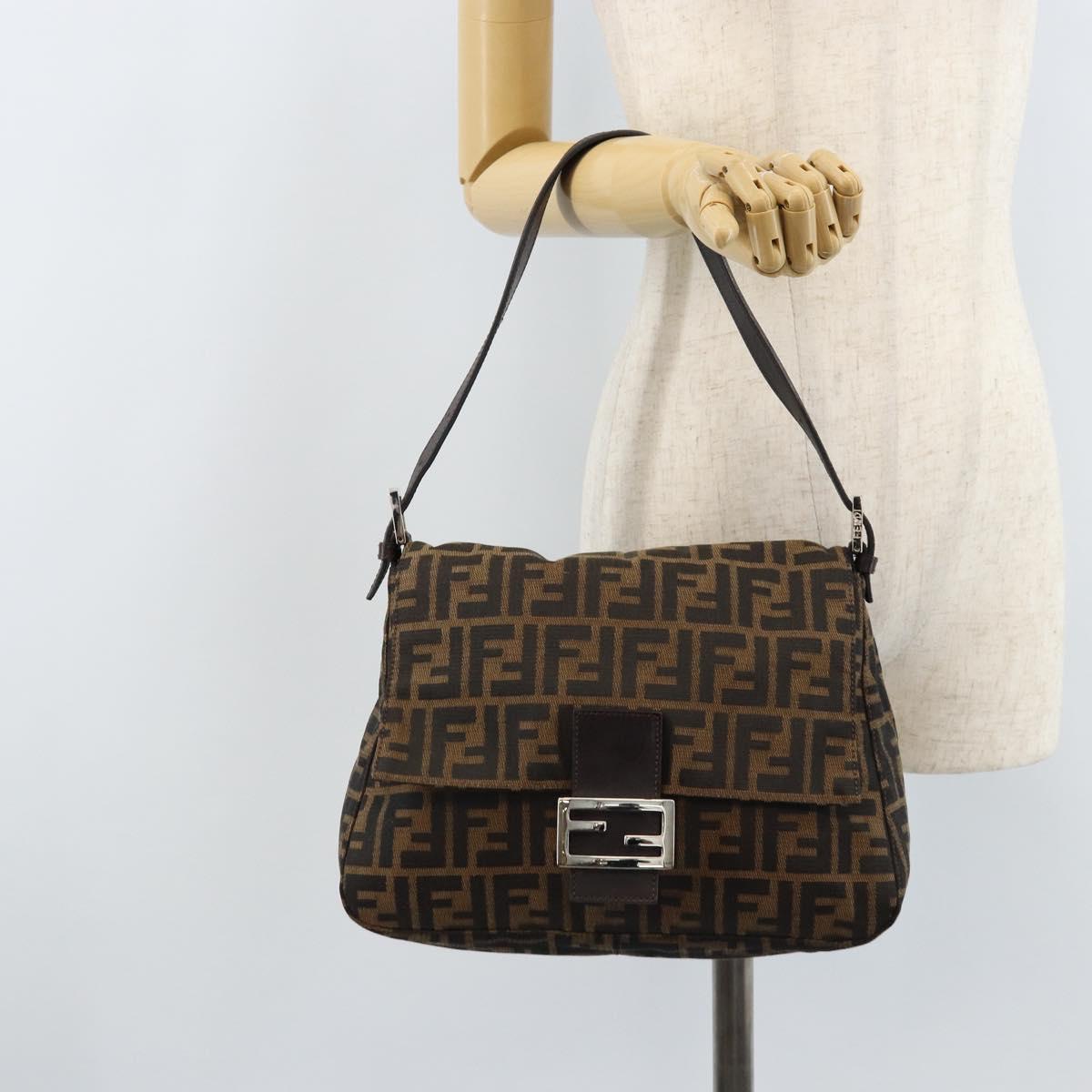 FENDI Zucca Canvas Mamma Baguette Shoulder Bag Brown Black Silver Auth ki6566SAV