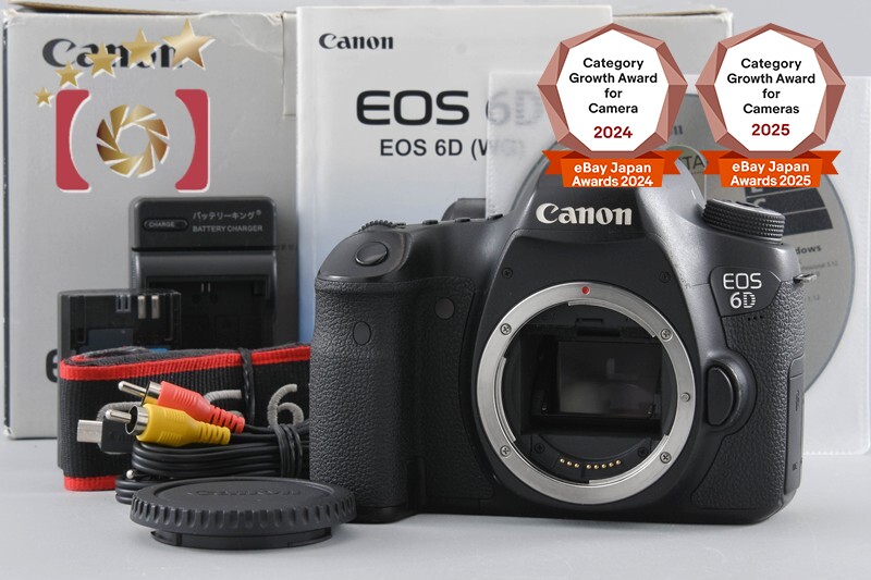 | Includes | Body cap, strap, battery, charger (third-party), CD-ROM, AV cable, instruction manual, original box (stained and deteriorated) |