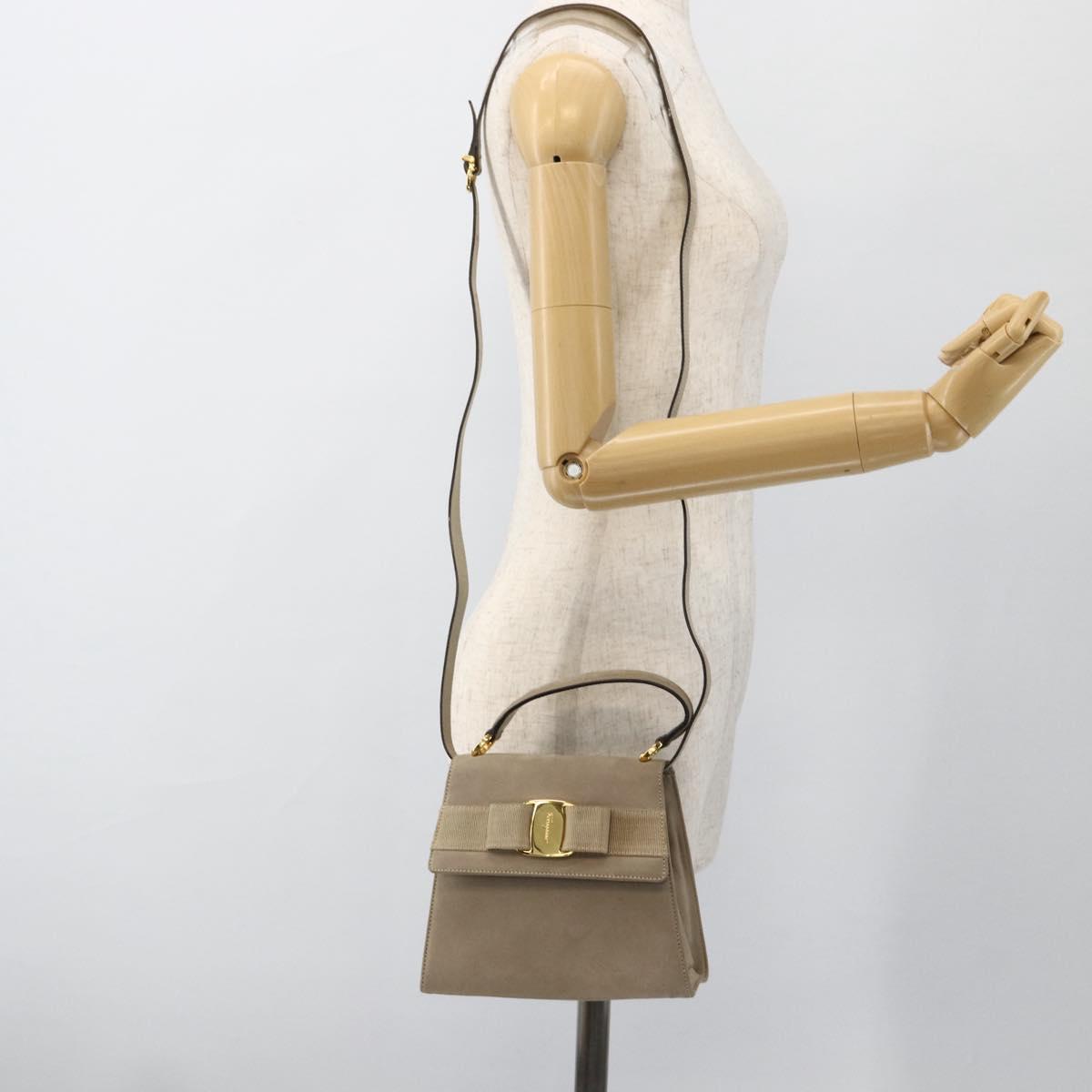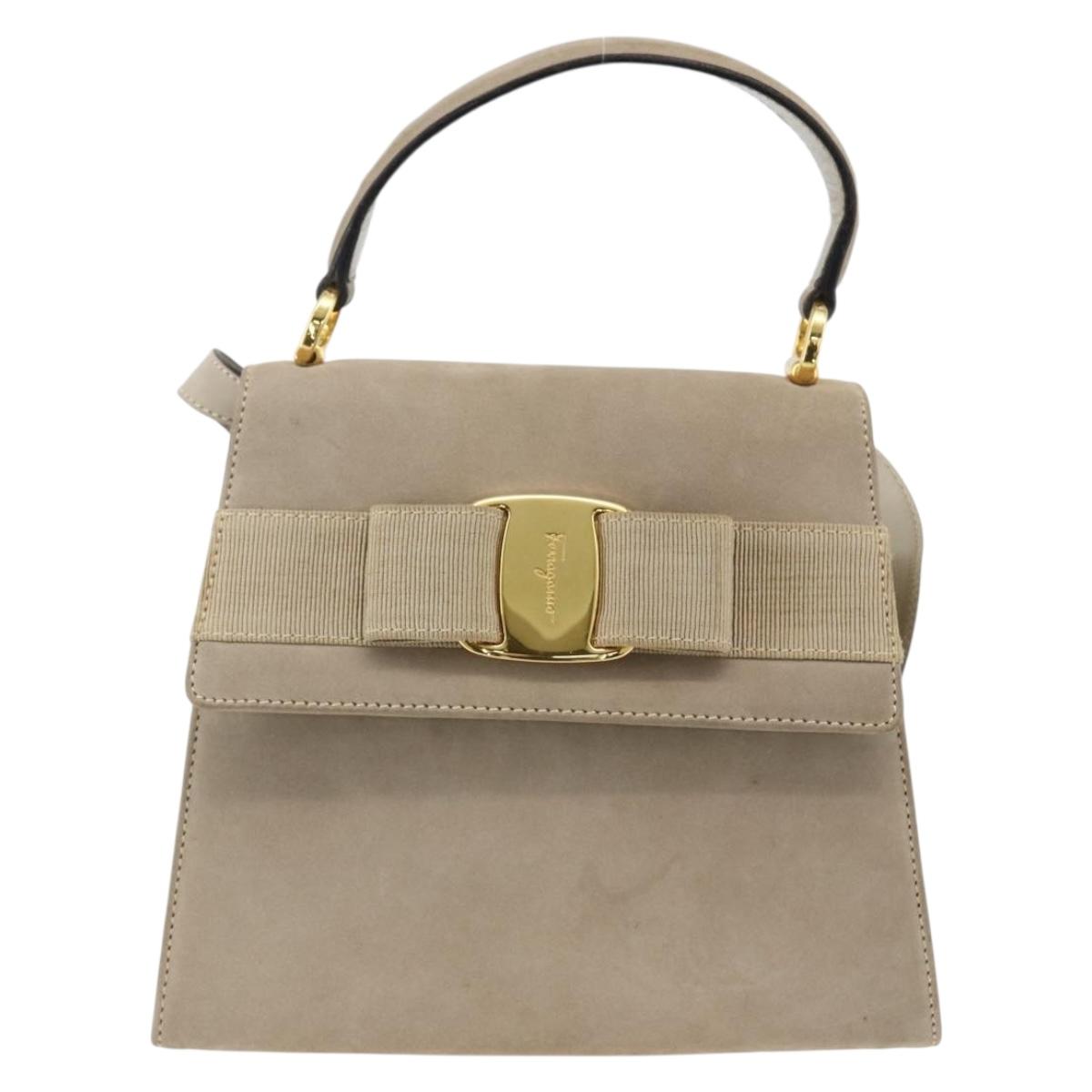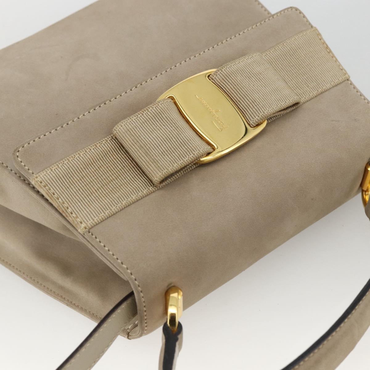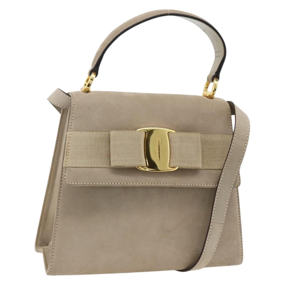 Salvatore Ferragamo Vala Hand Bag Suede 2way Beige Gold Auth LNZ972