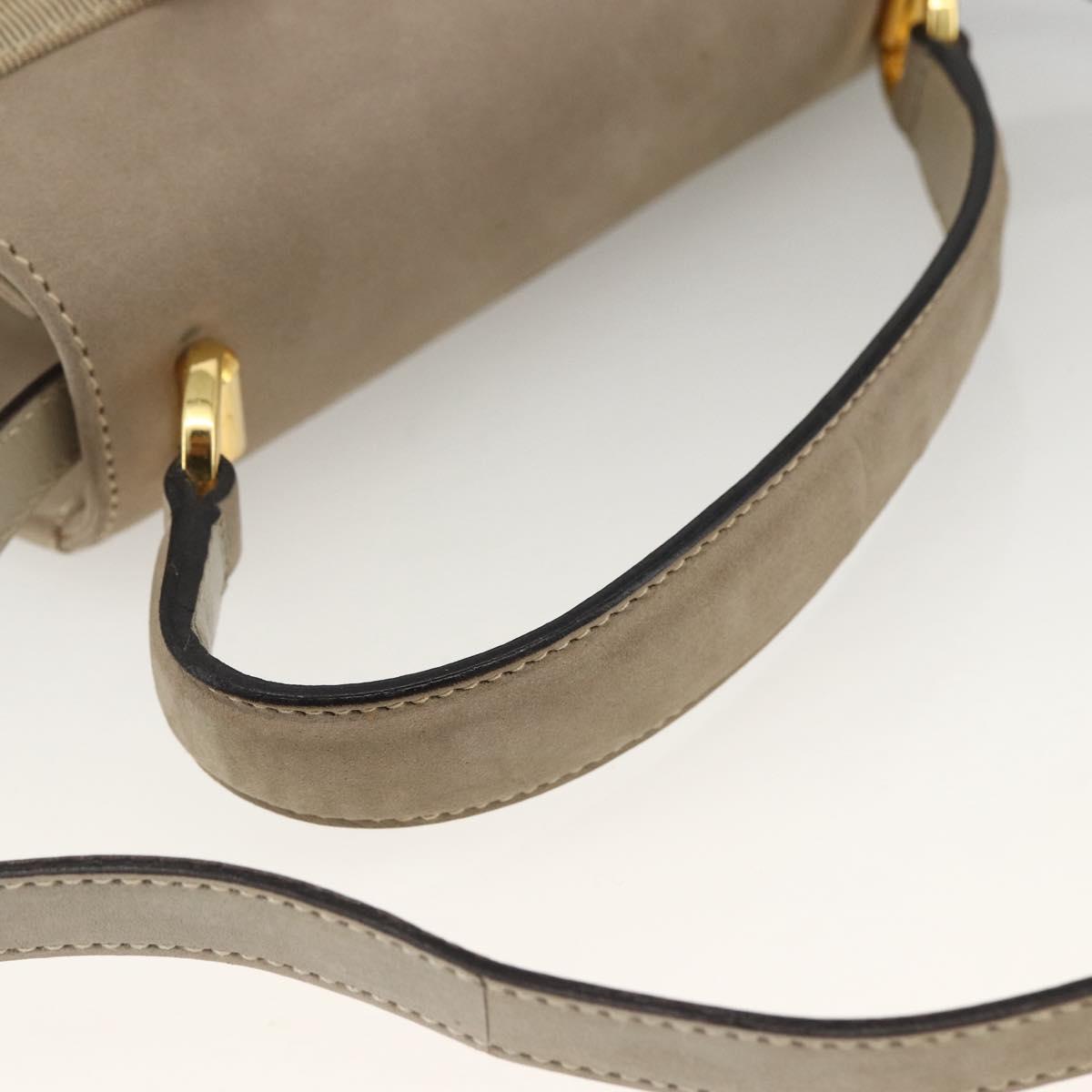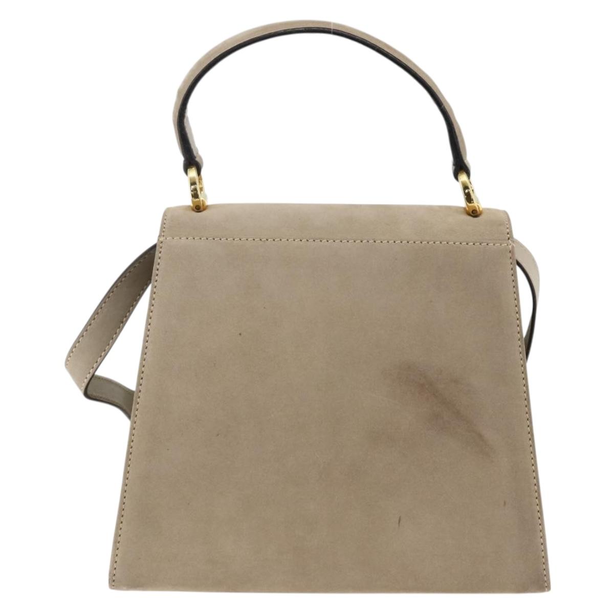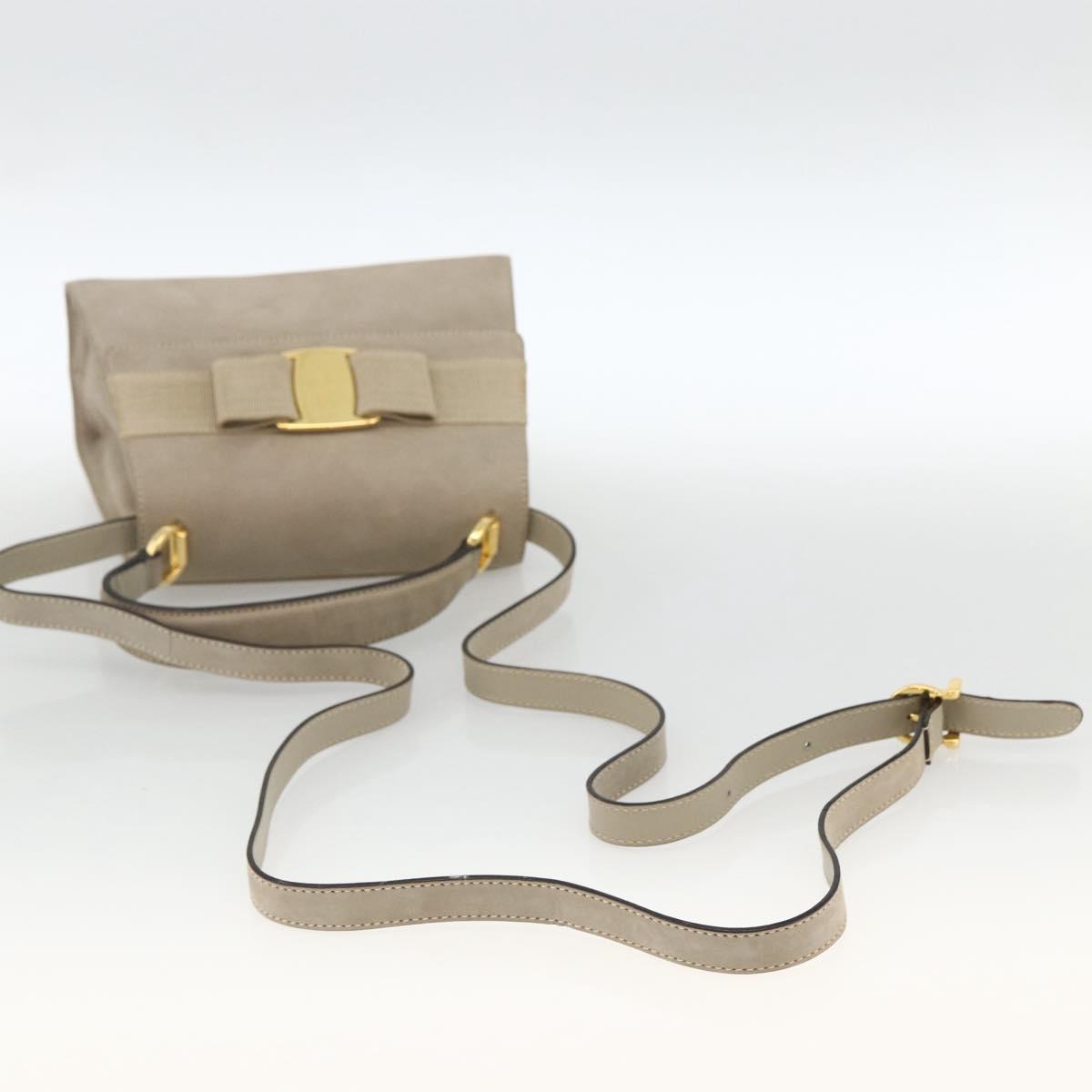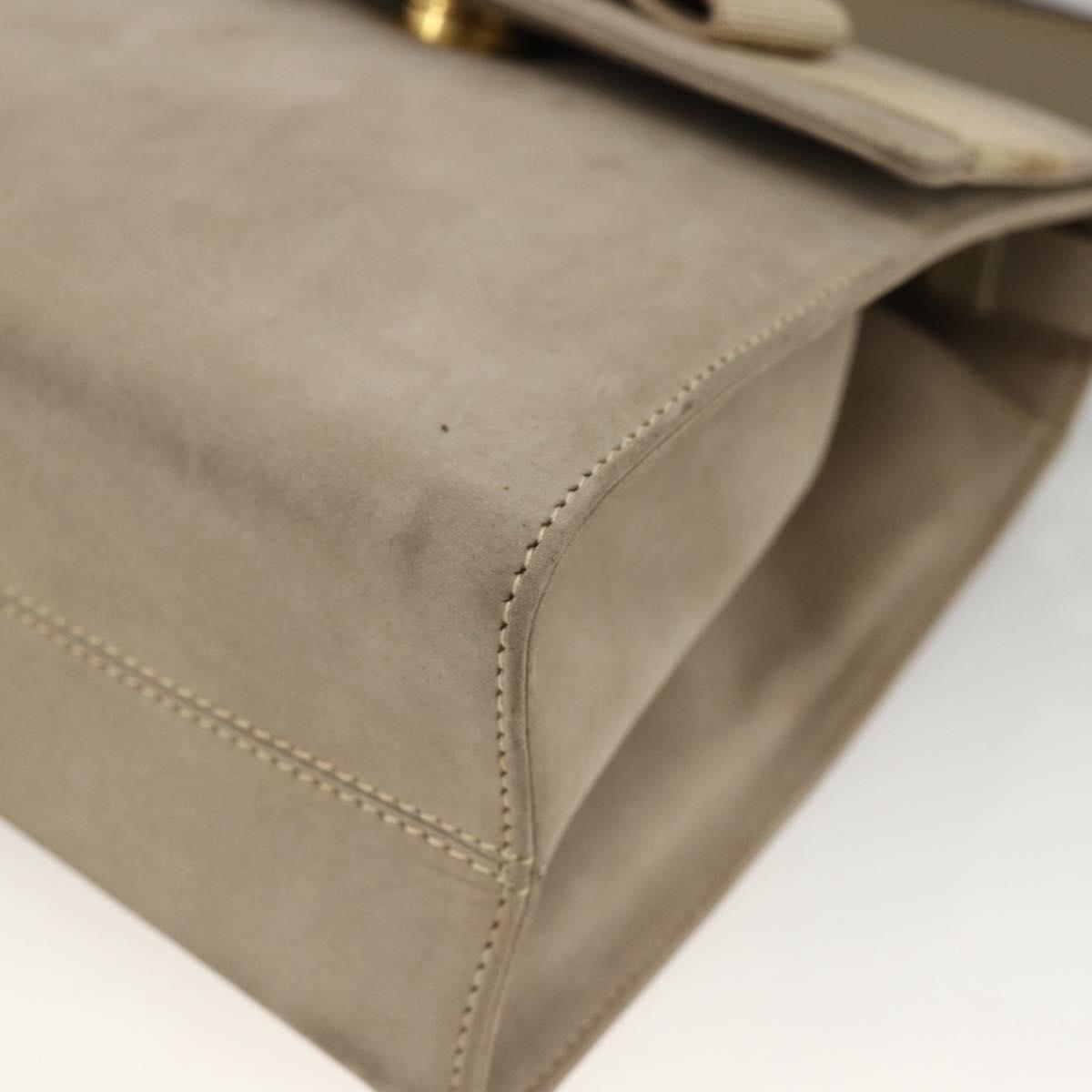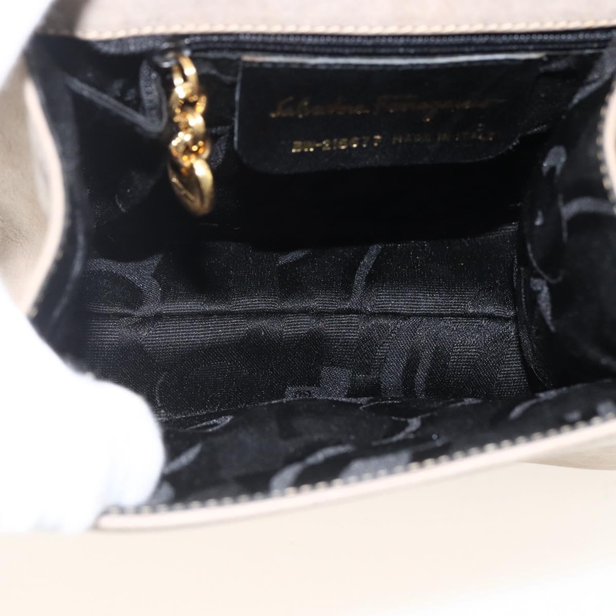 Salvatore Ferragamo Vala Hand Bag Suede 2way Beige Gold Auth LNZ972