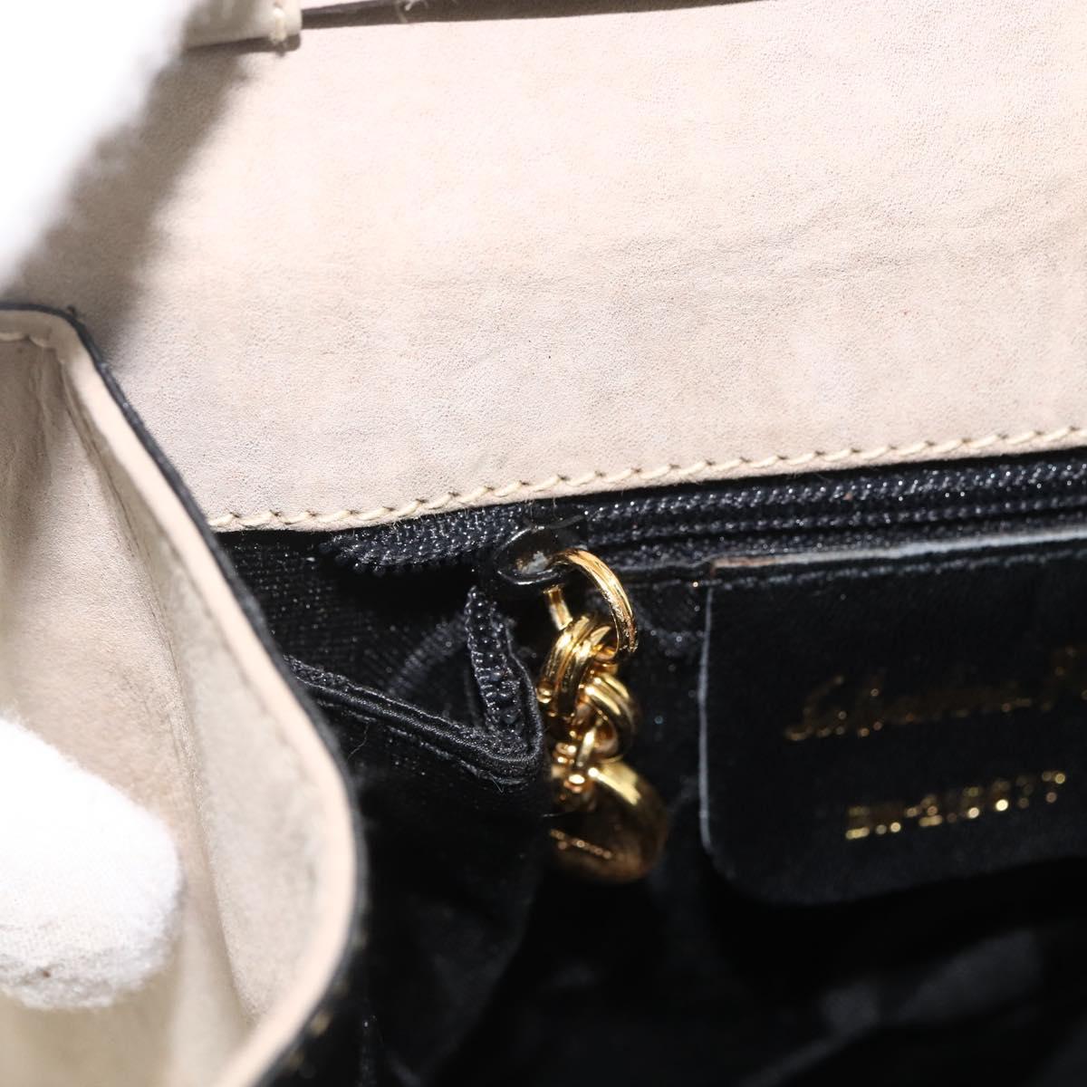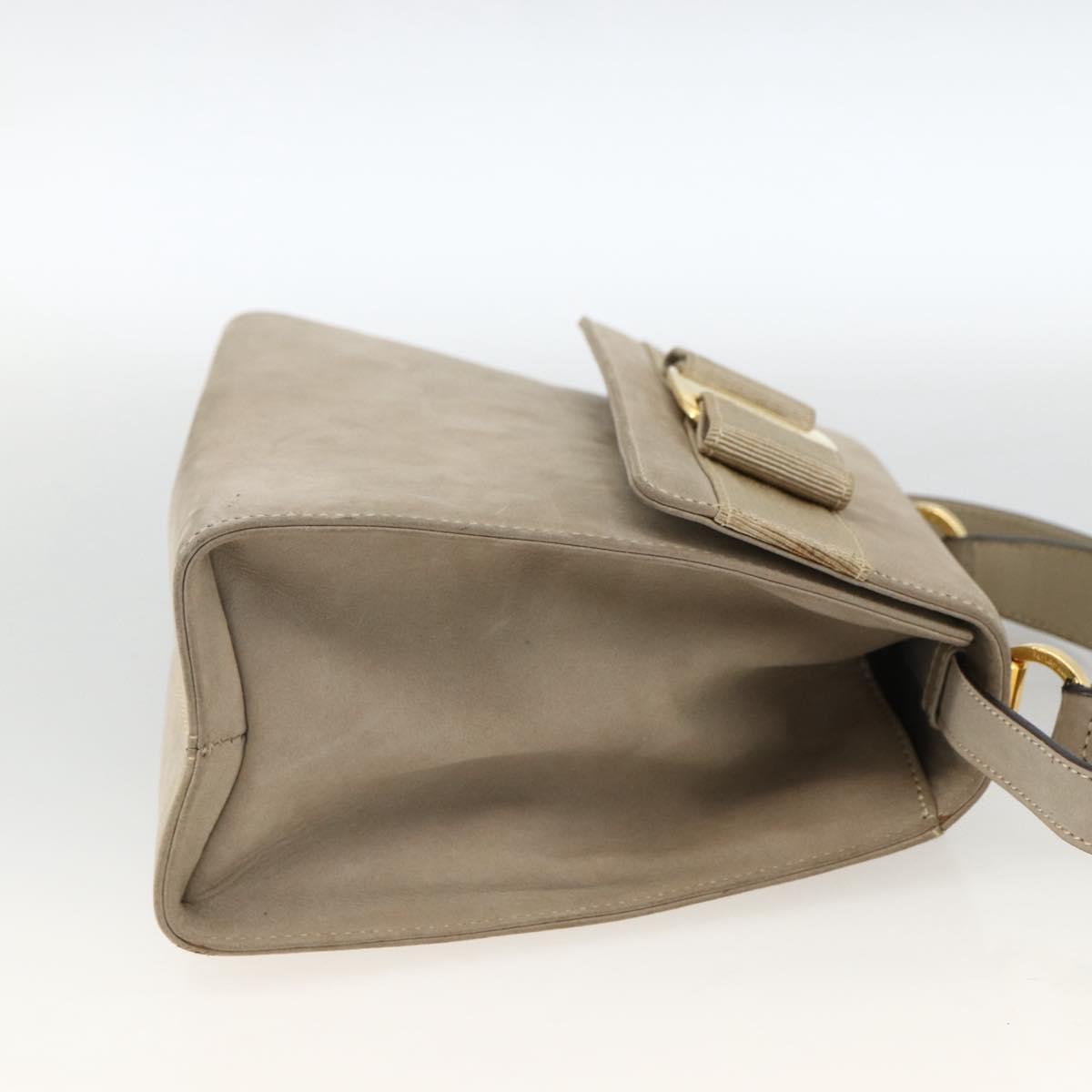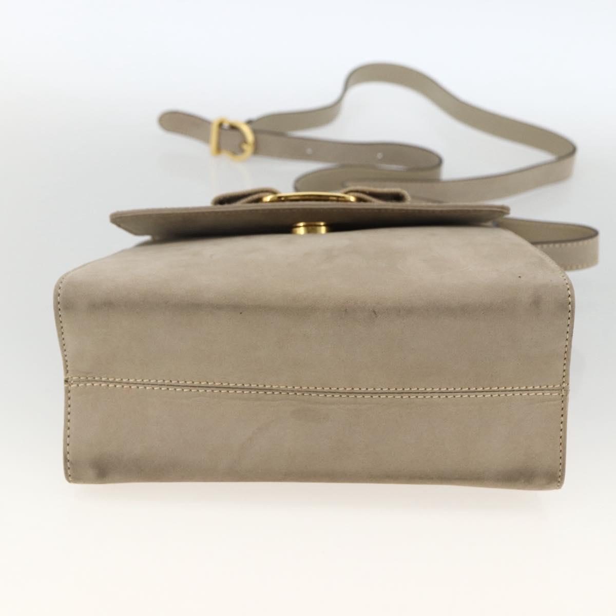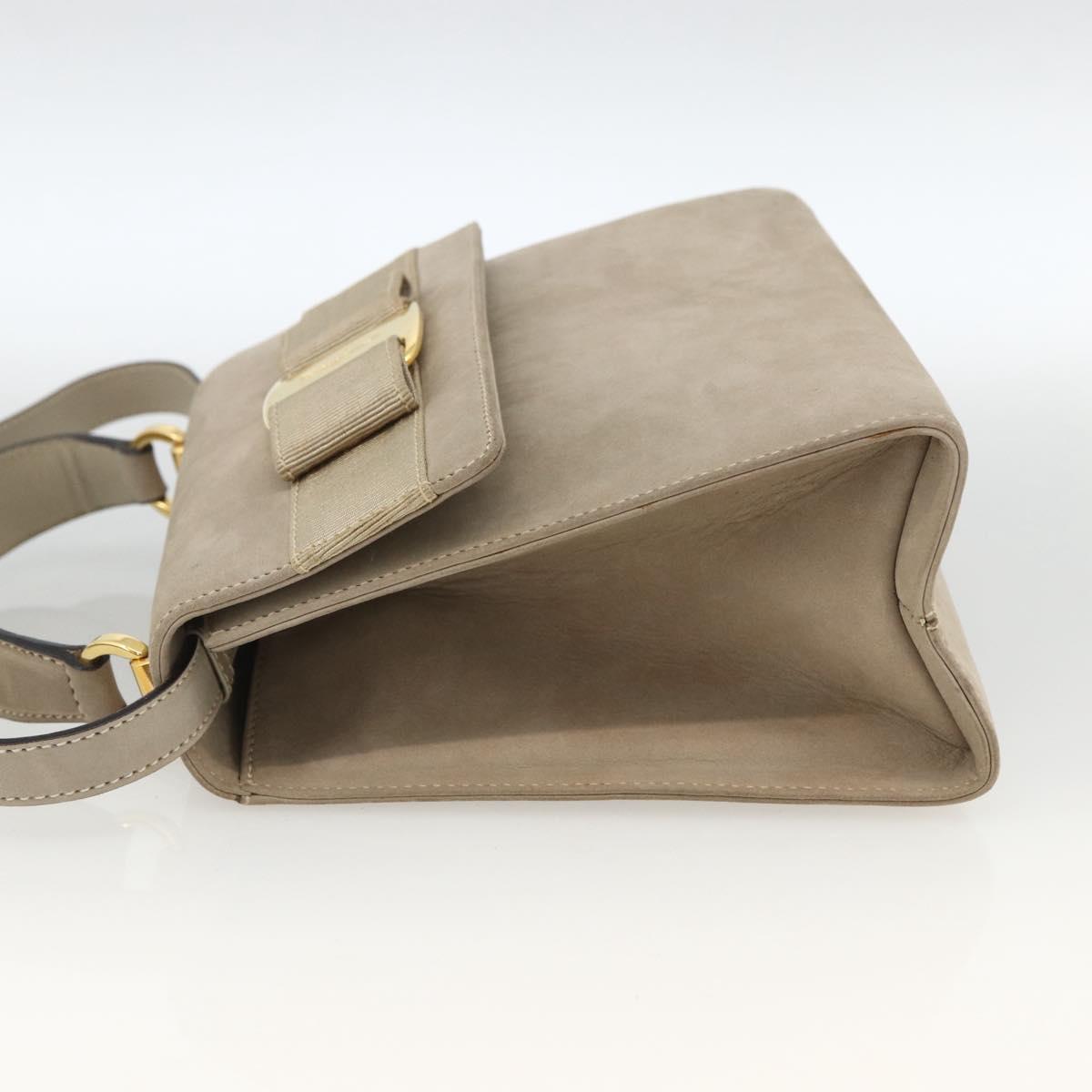Salvatore Ferragamo Vala Hand Bag Suede 2way Beige Gold Auth LNZ972