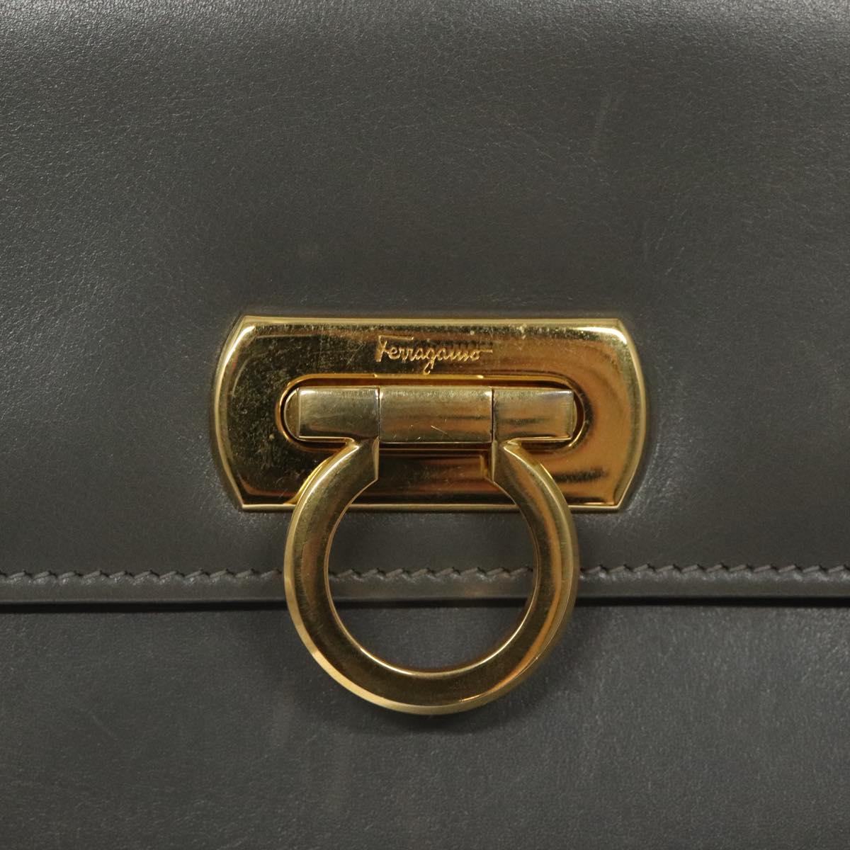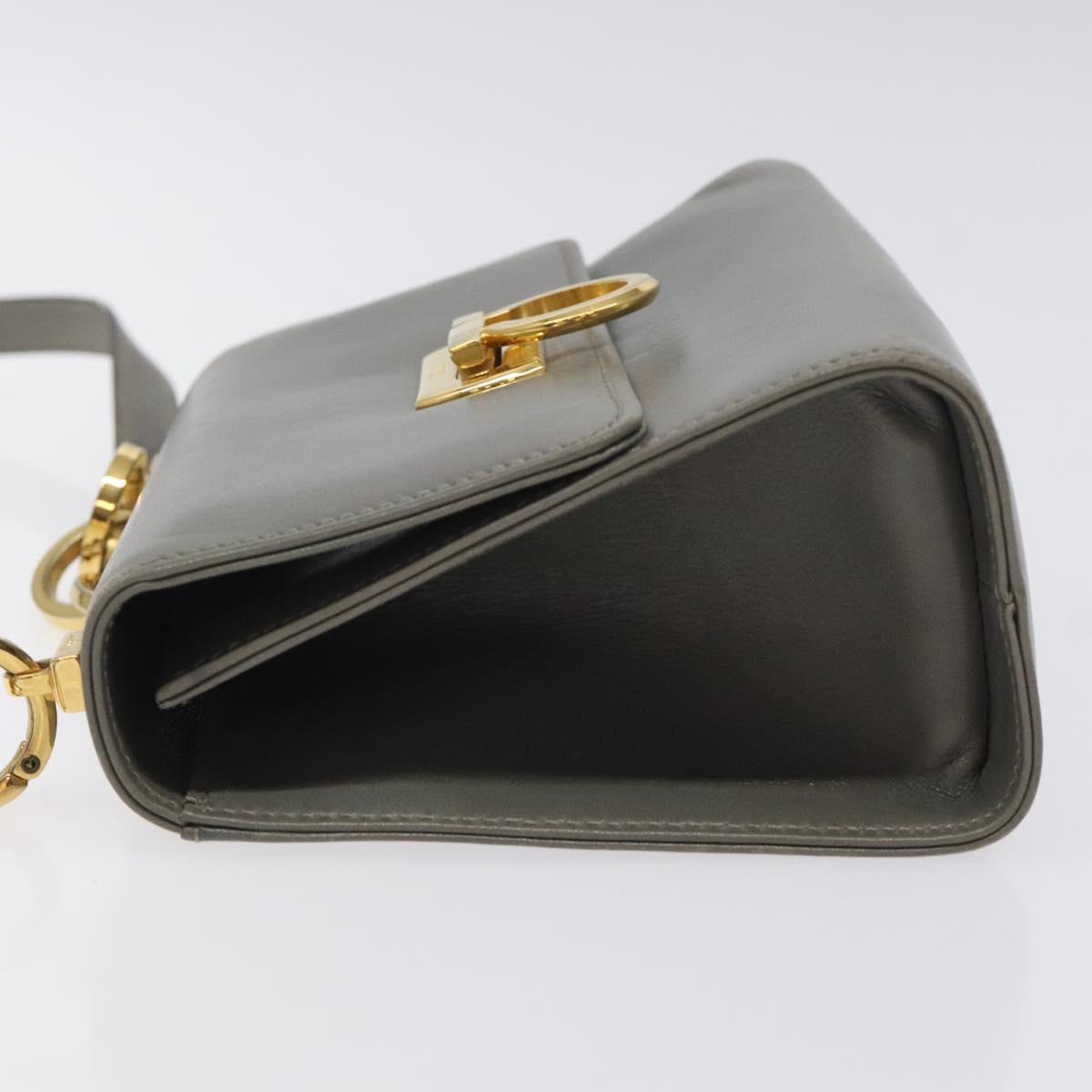 Salvatore Ferragamo Shoulder Bag Leather Gray Gold Auth BD2145