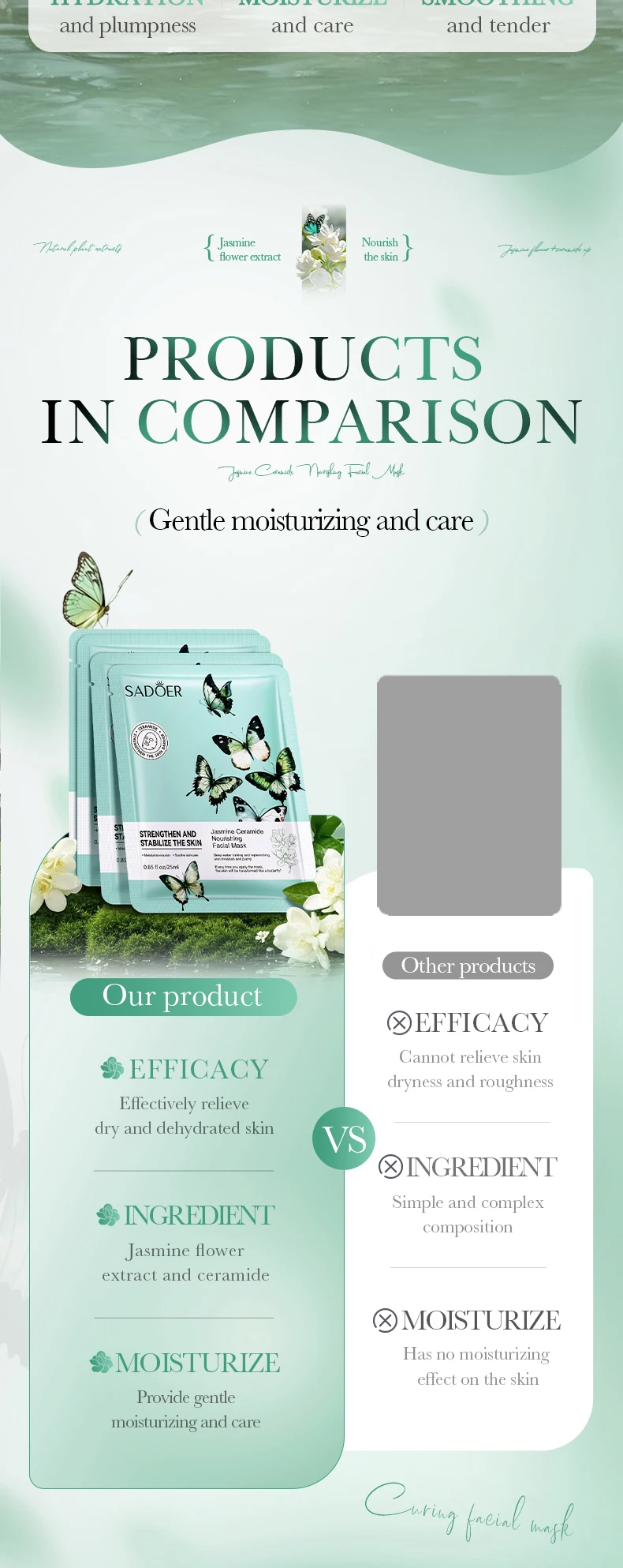SADOER Jasmine Face Mask Moisturizing Hydrating Oil Control Anti-Aging Facial Masks Sheet Mask for Face Skin Care Prod