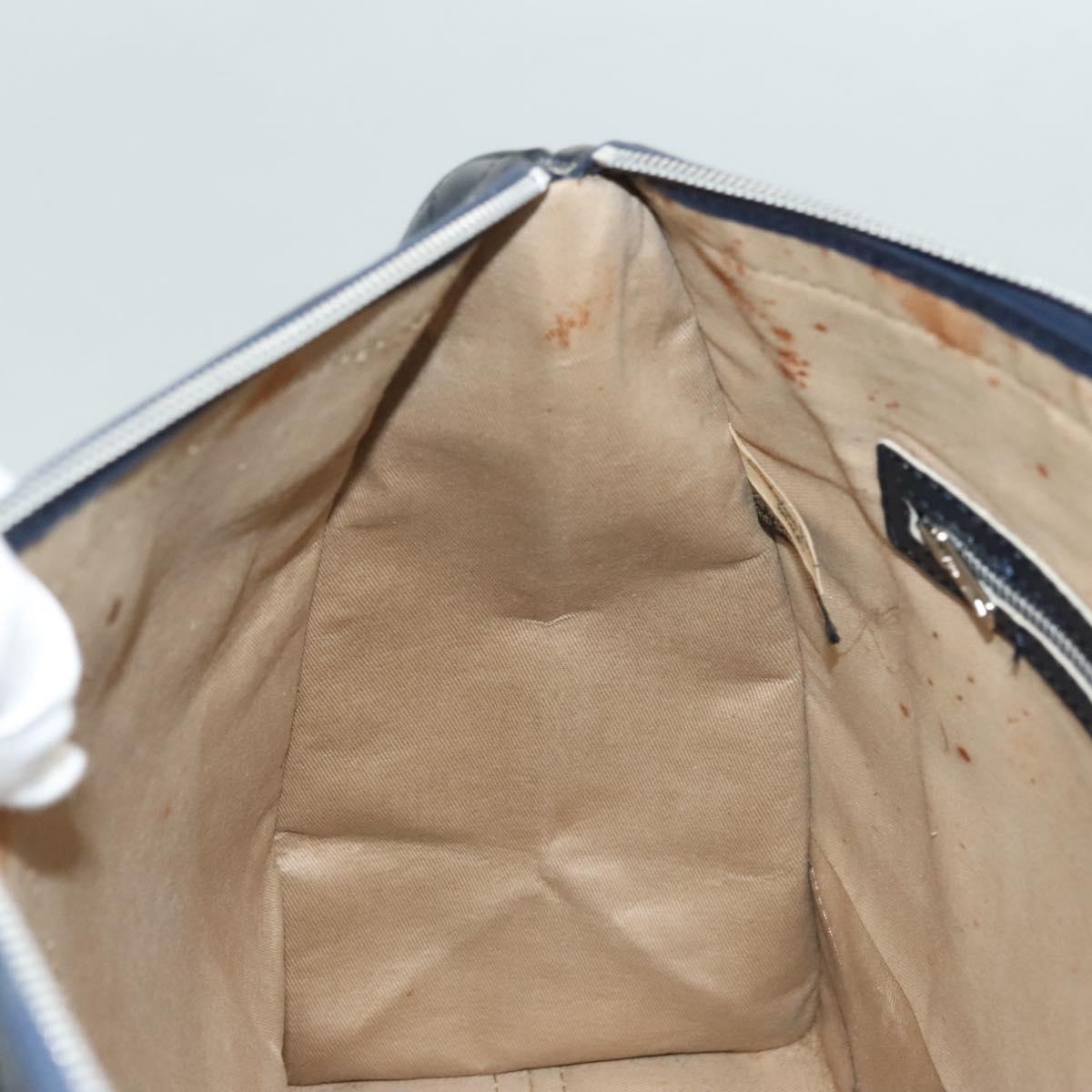Christian Dior Trotter Canvas Hand Bag Navy Gold Auth 126103