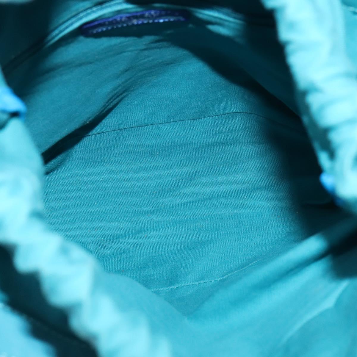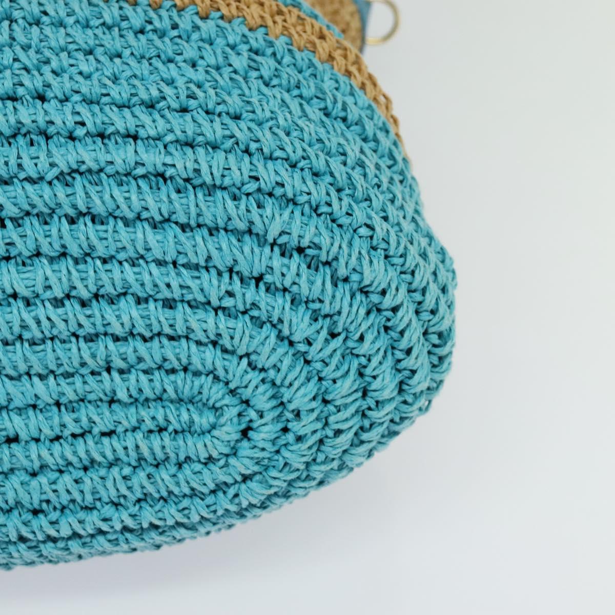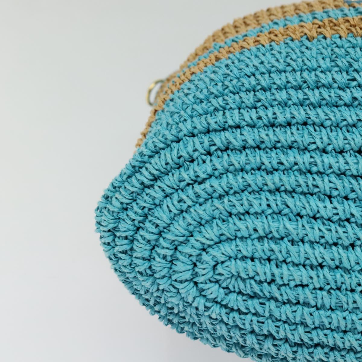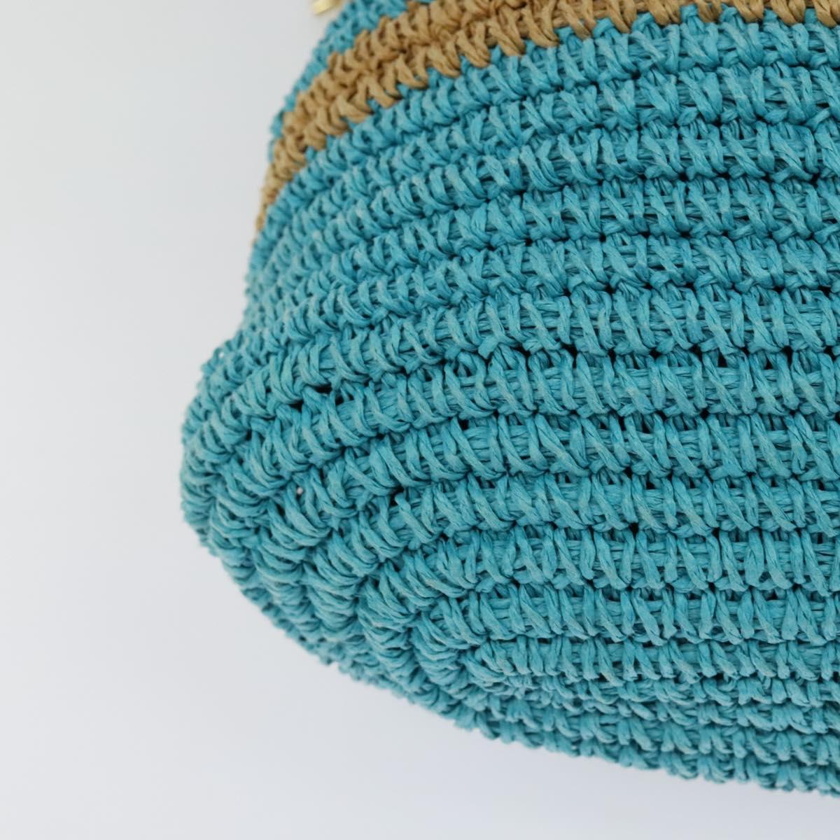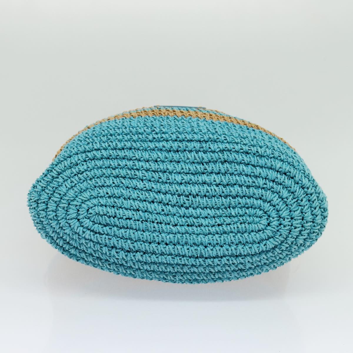 BURBERRY Blue Label Hand Bag Straw 2way Blue Gold Auth 120707