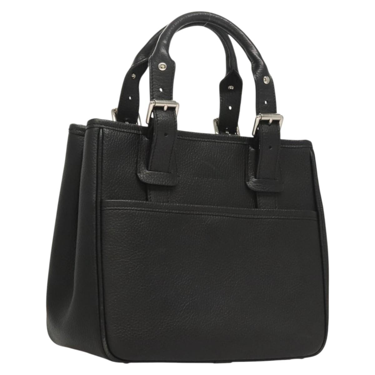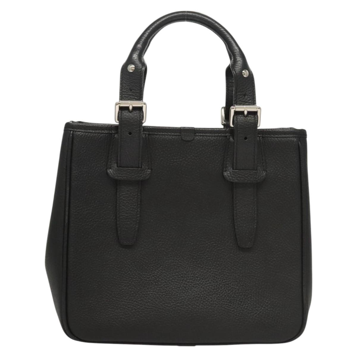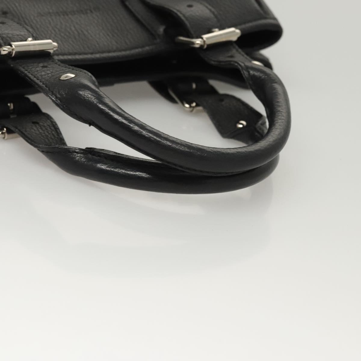 BURBERRY Hand Bag Leather Black Silver Auth BA1908